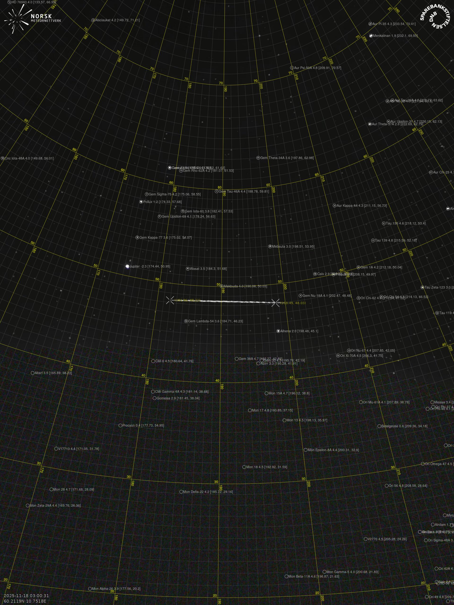 Meteor over Vestby 2025-11-18 03:00:31 UTC