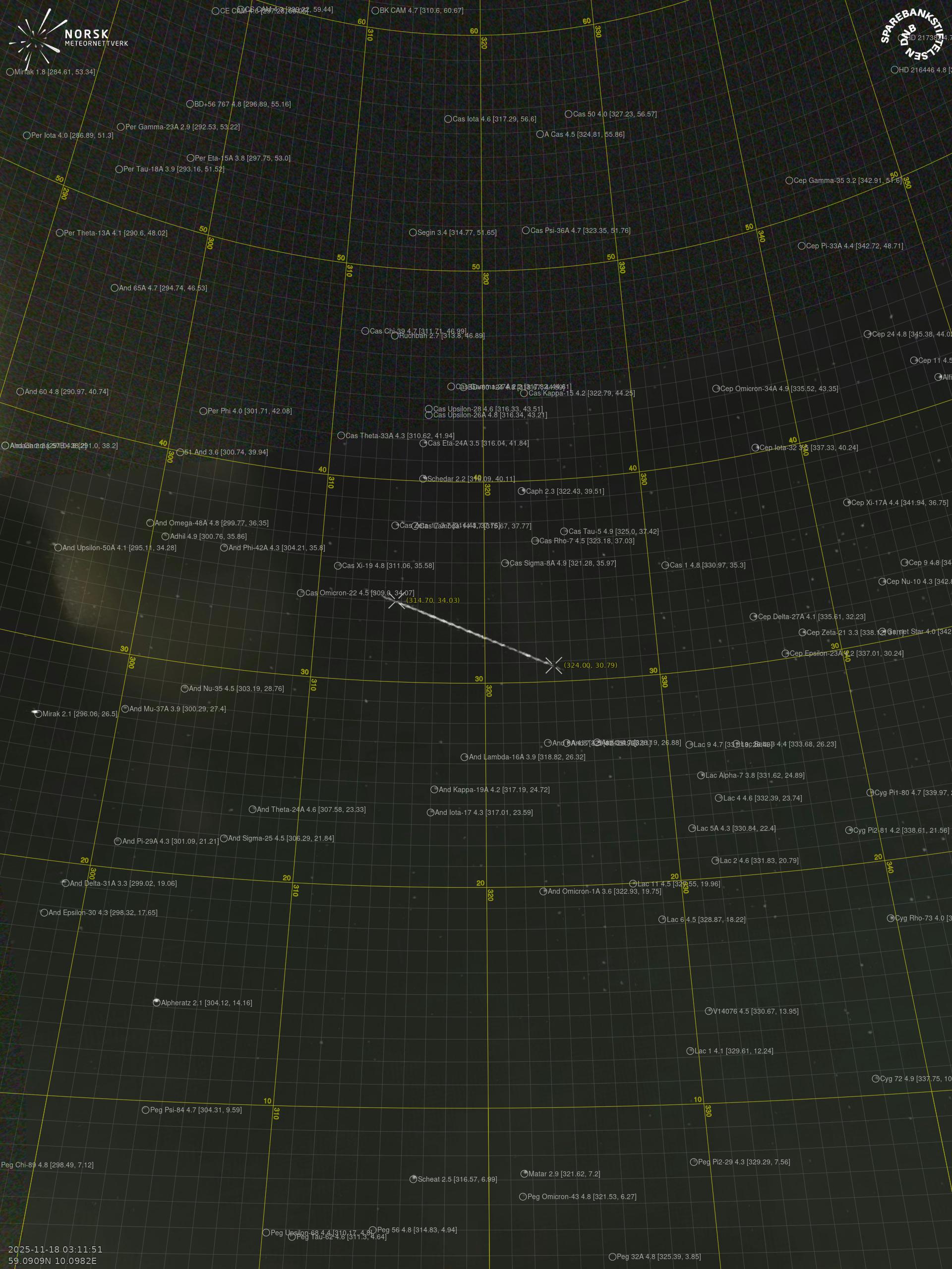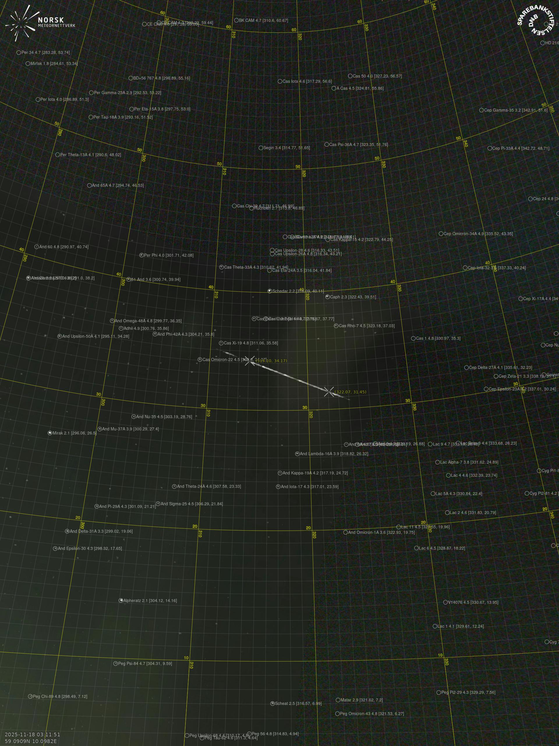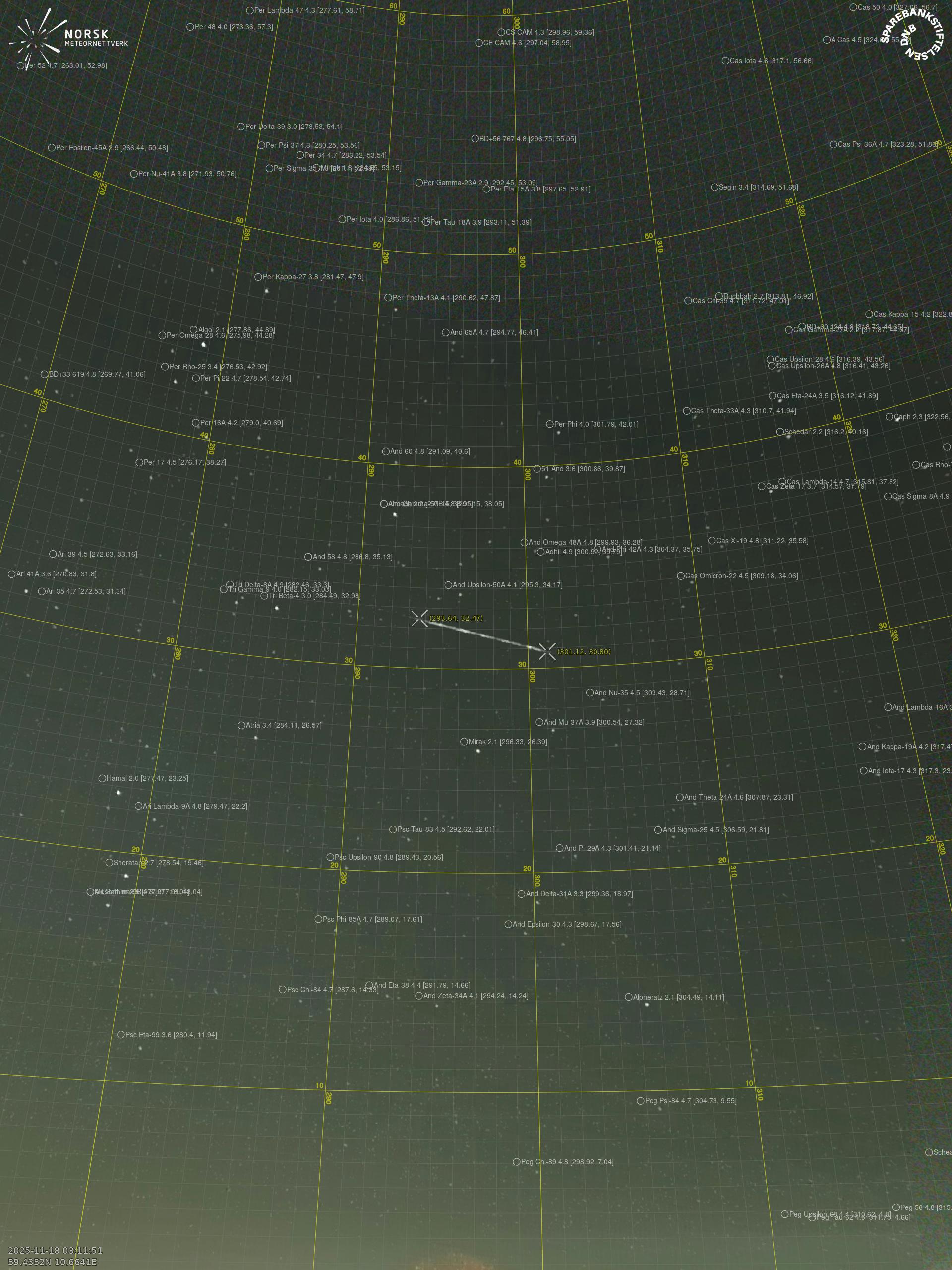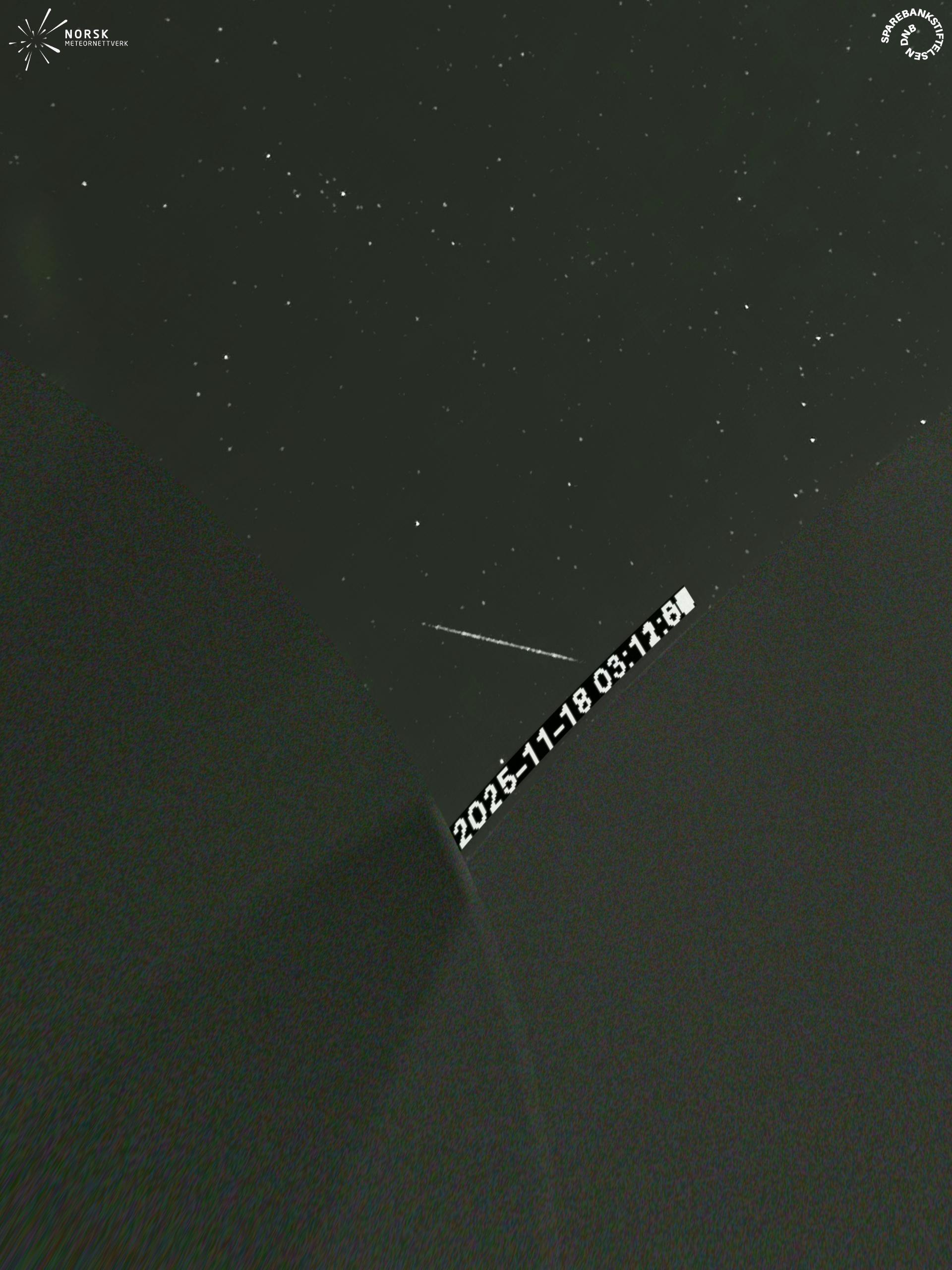 Meteor Rødbergin yllä 2025-11-18 03:11:50 UTC