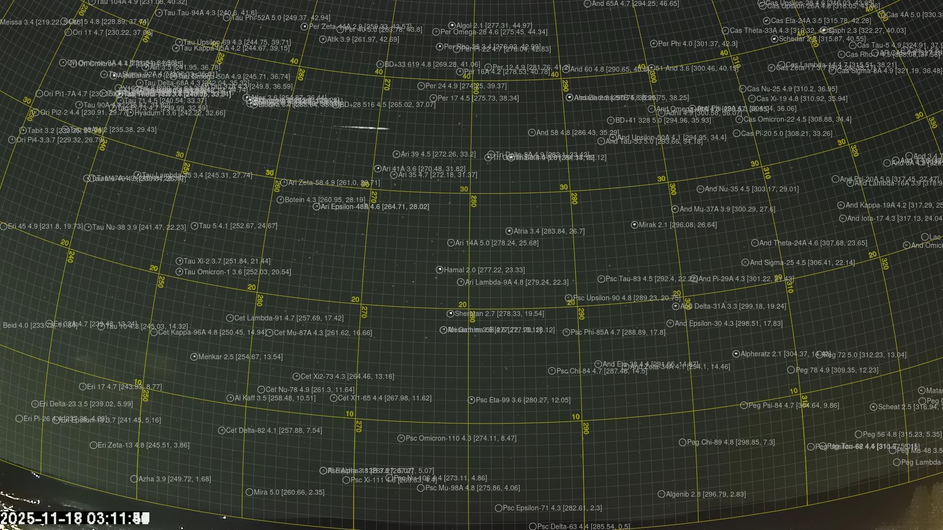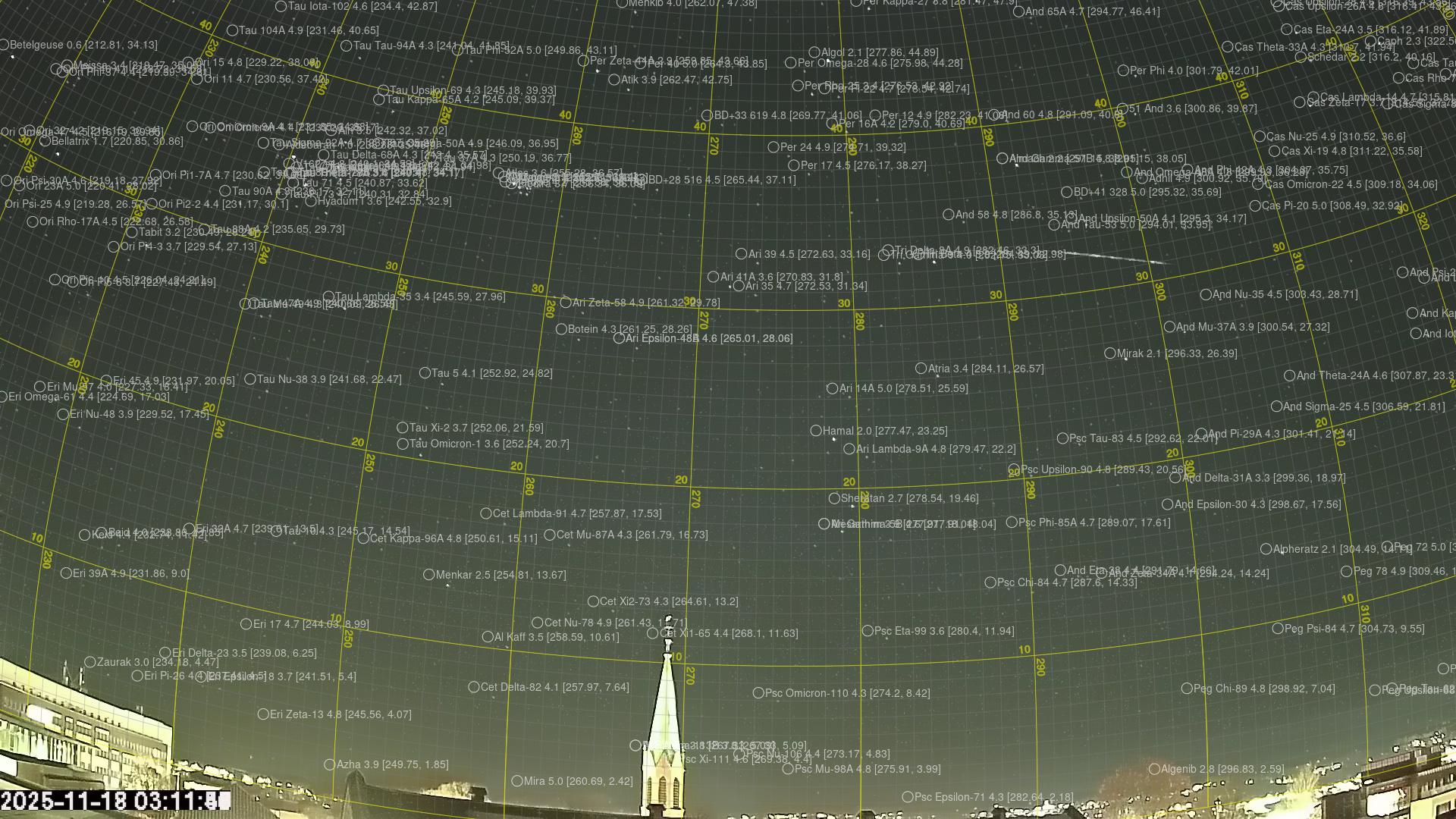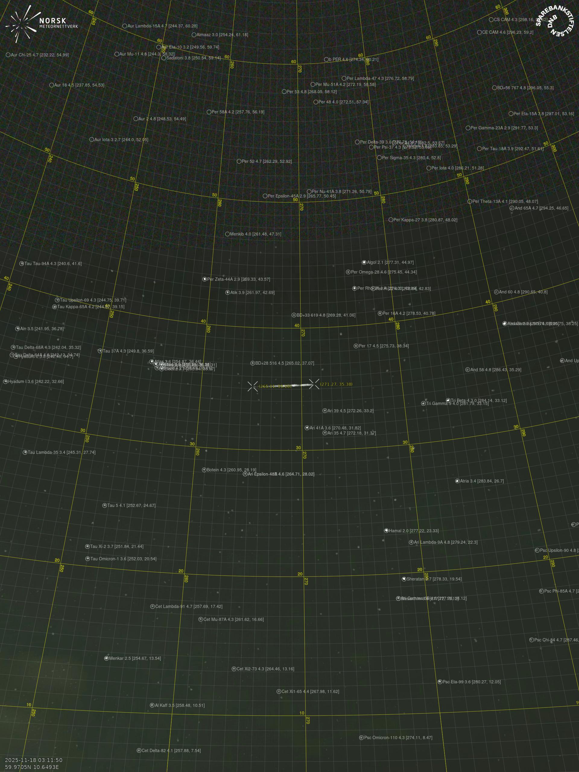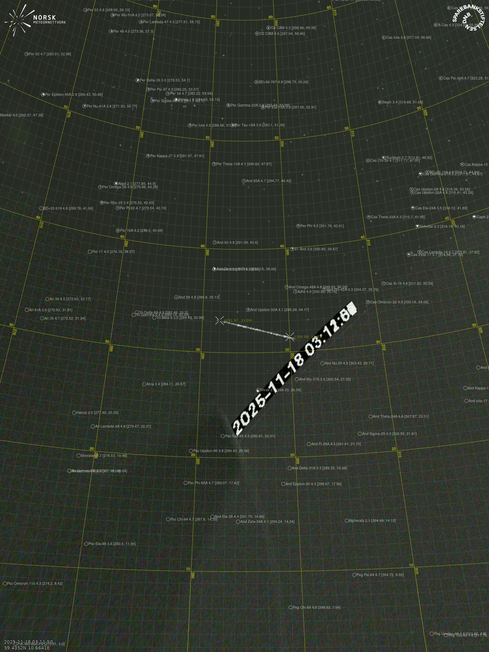 Meteor Rødbergin yllä 2025-11-18 03:11:50 UTC