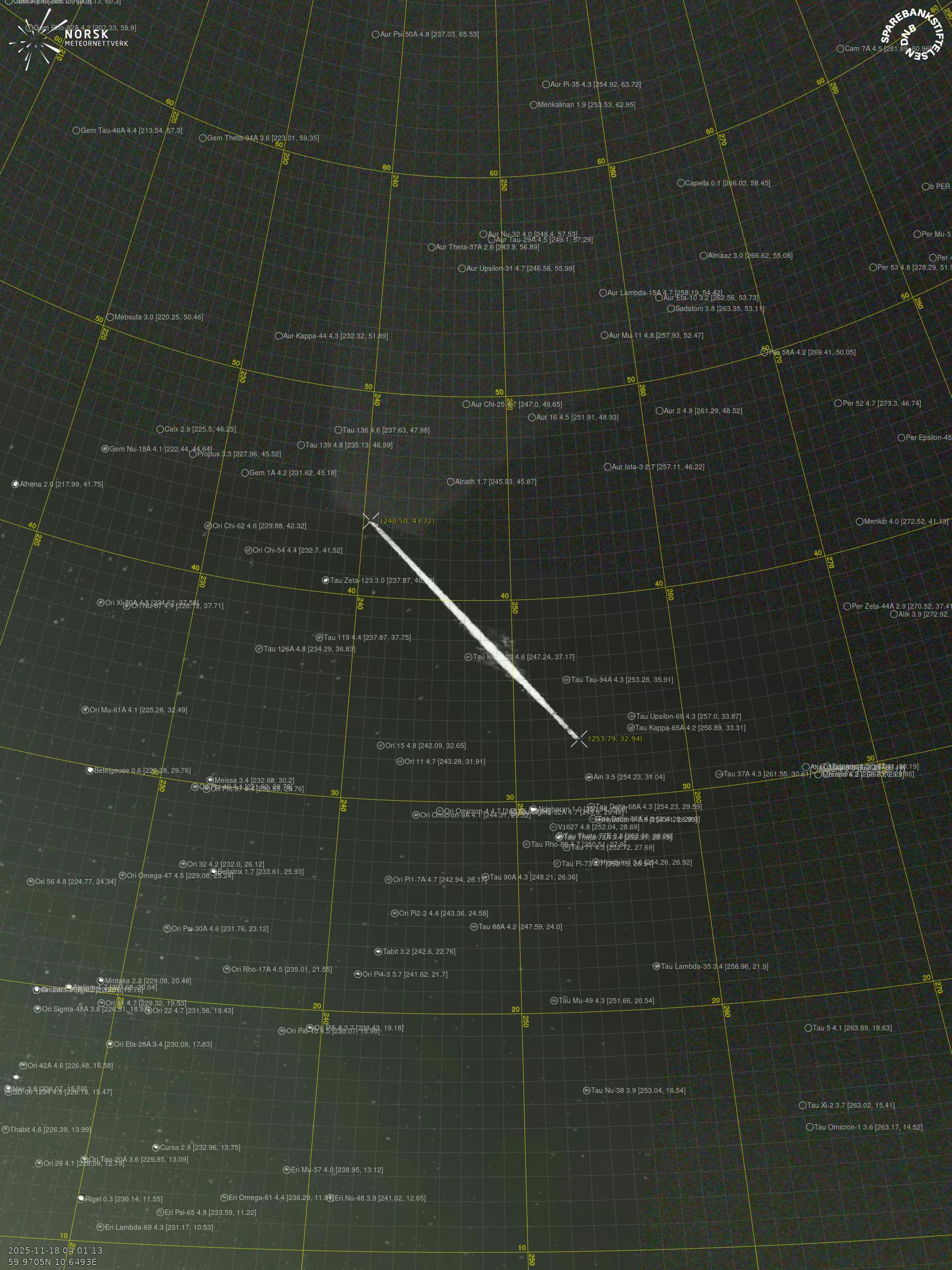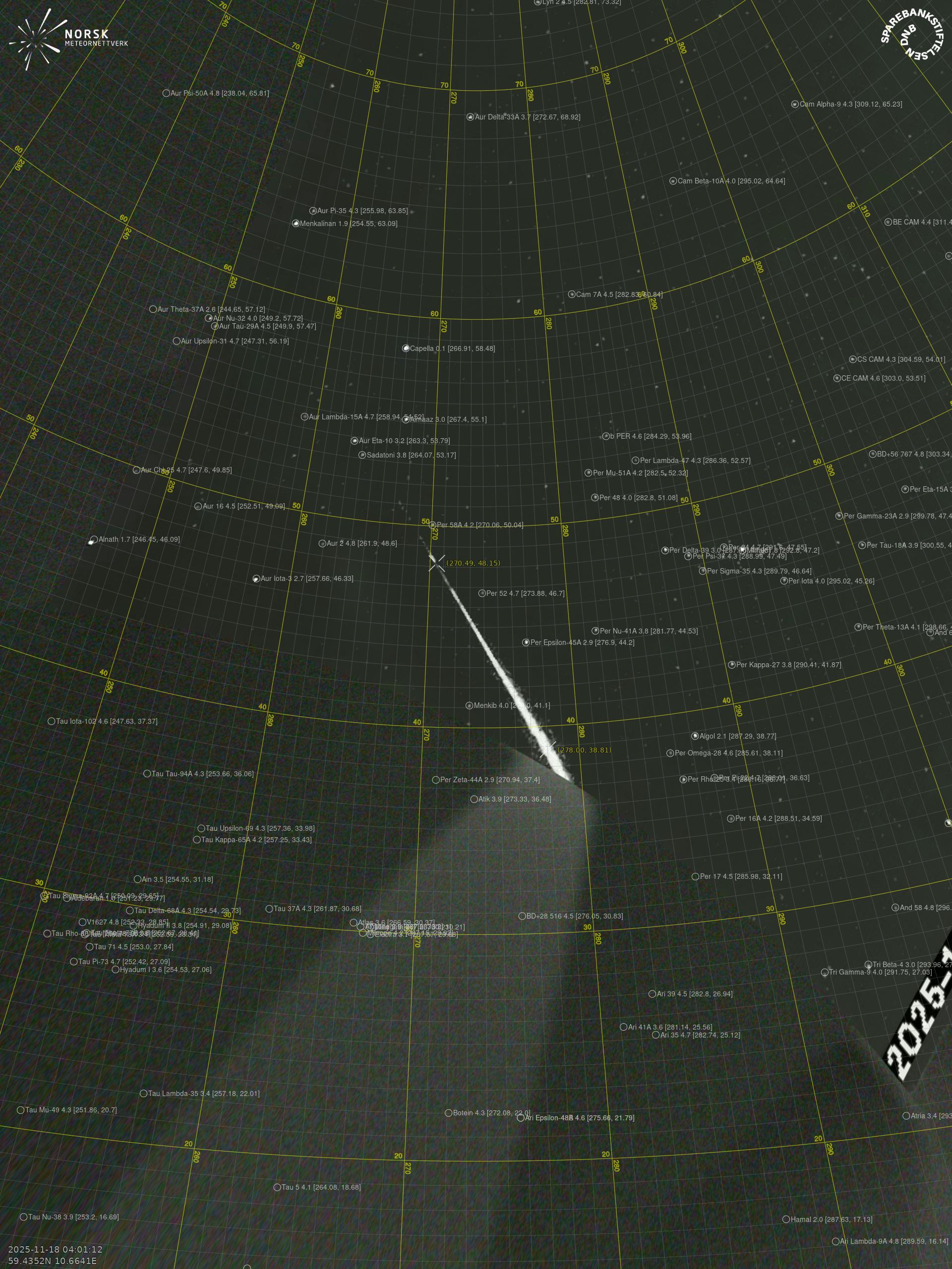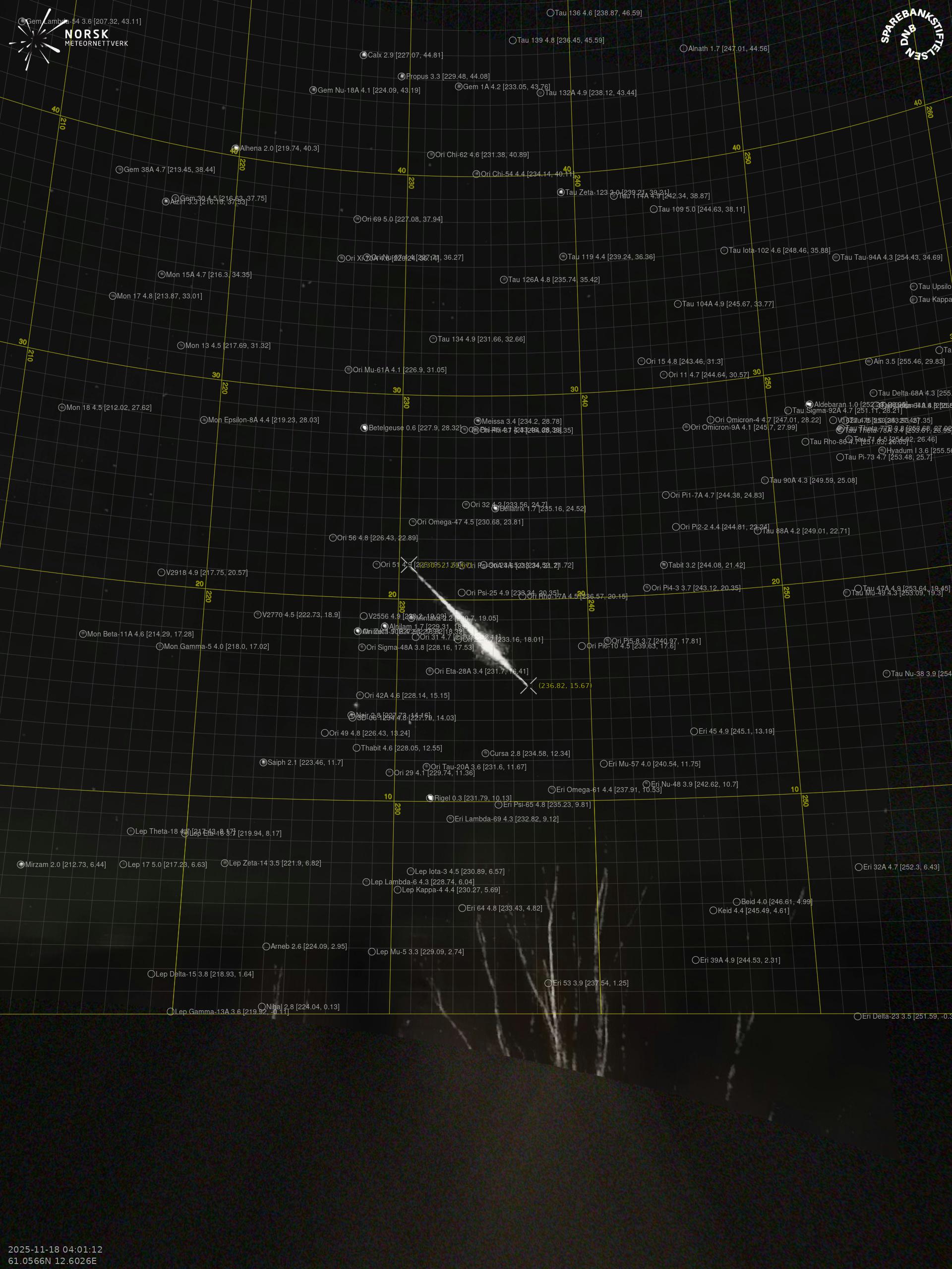 Meteor over Seljord 2025-11-18 04:01:12 UTC