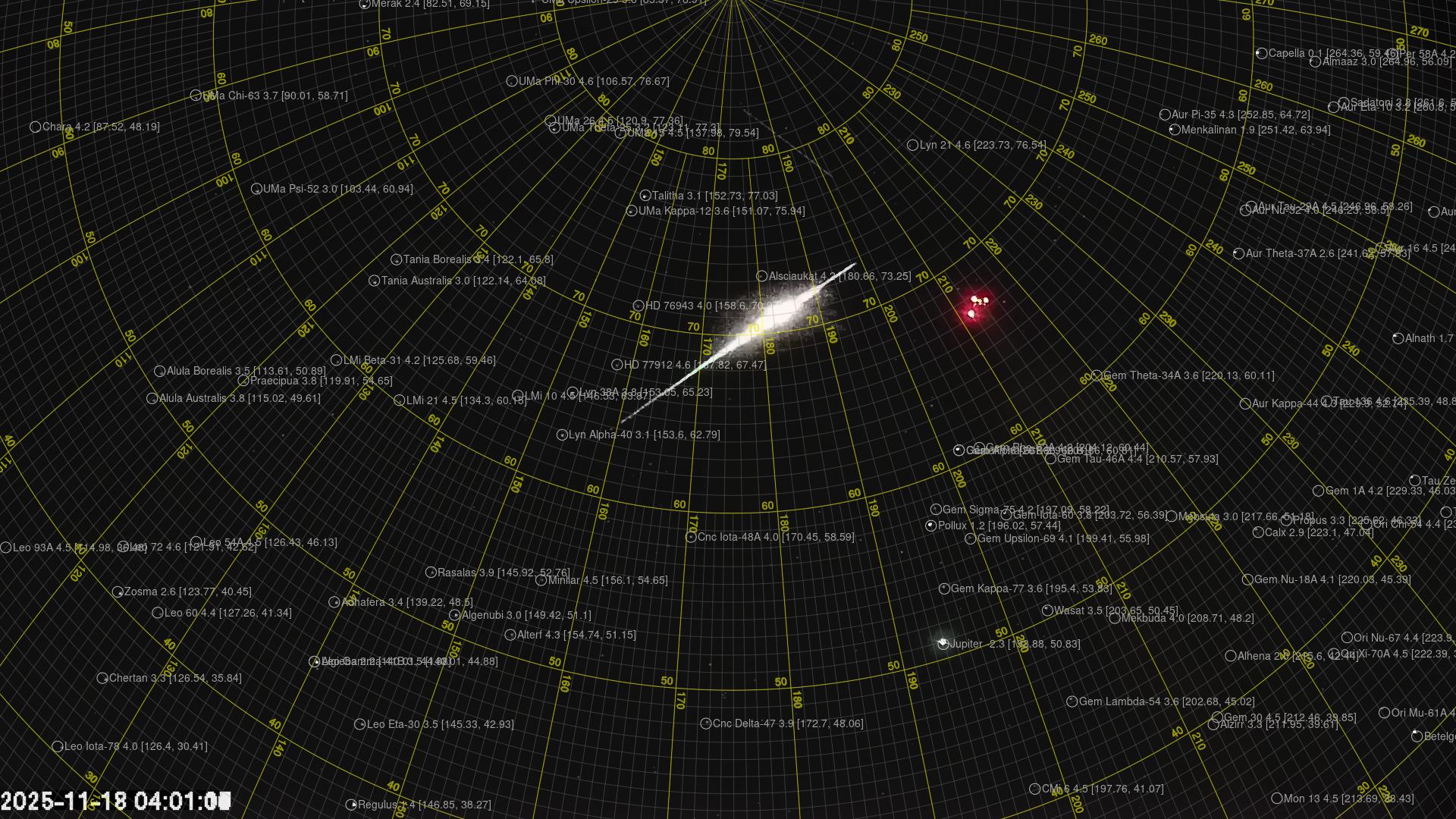 Radiantens rektascensjon: 10:15 (153,8°)