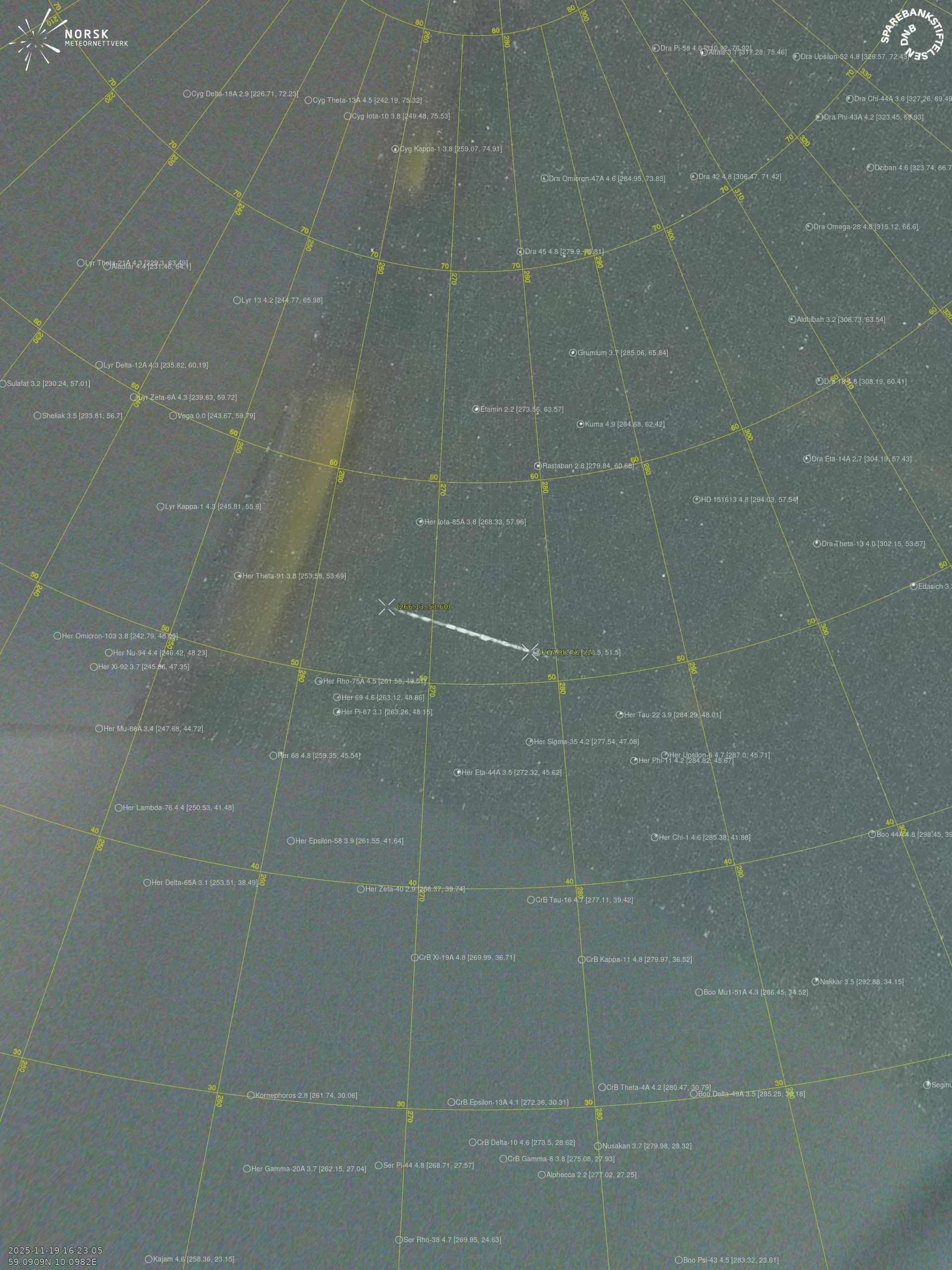 Meteor Prestestrandan yllä 2025-11-19 16:23:05 UTC