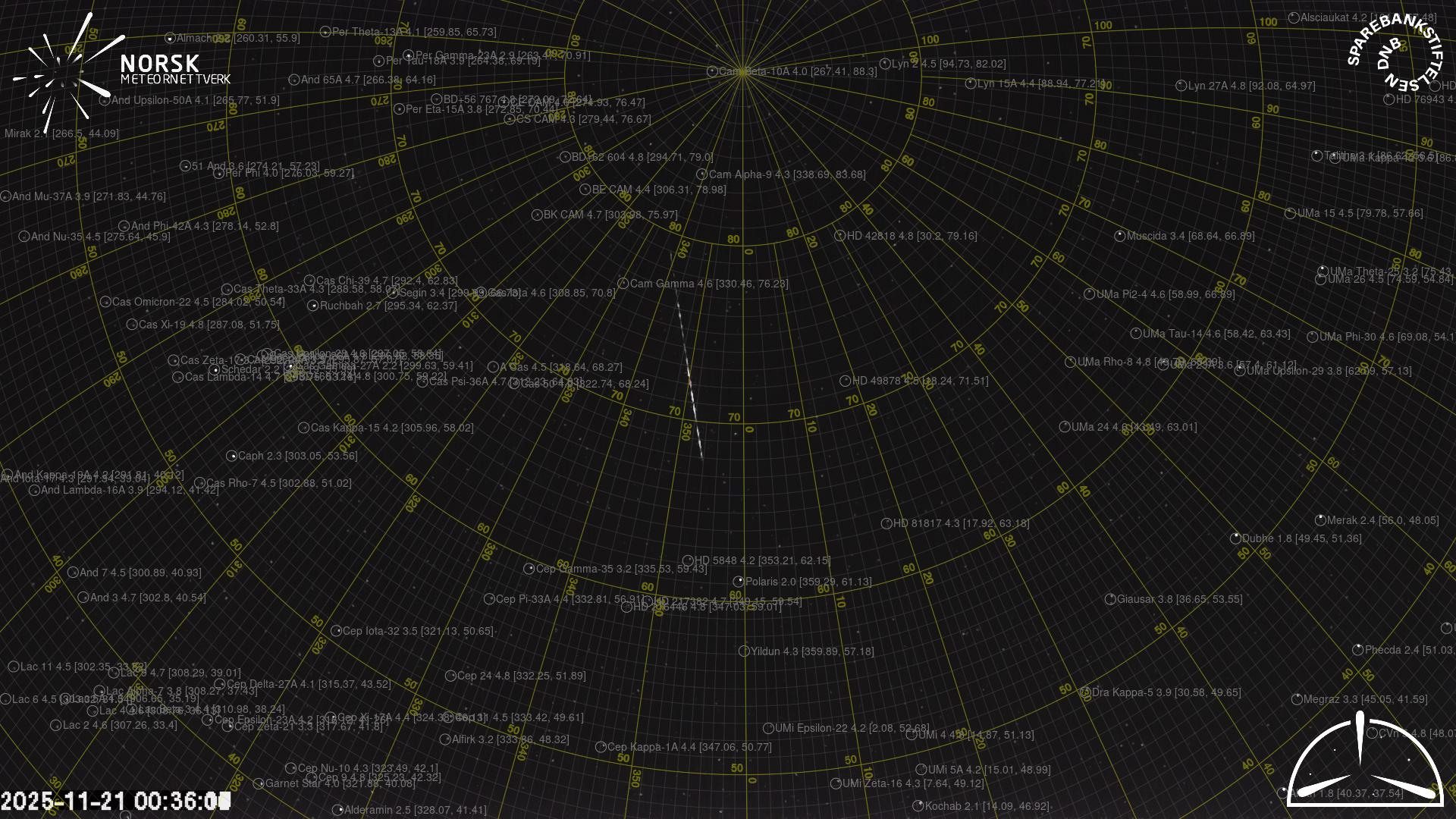 Meteor, poloha: Raufoss 2025-11-21 00:36:14 UTC