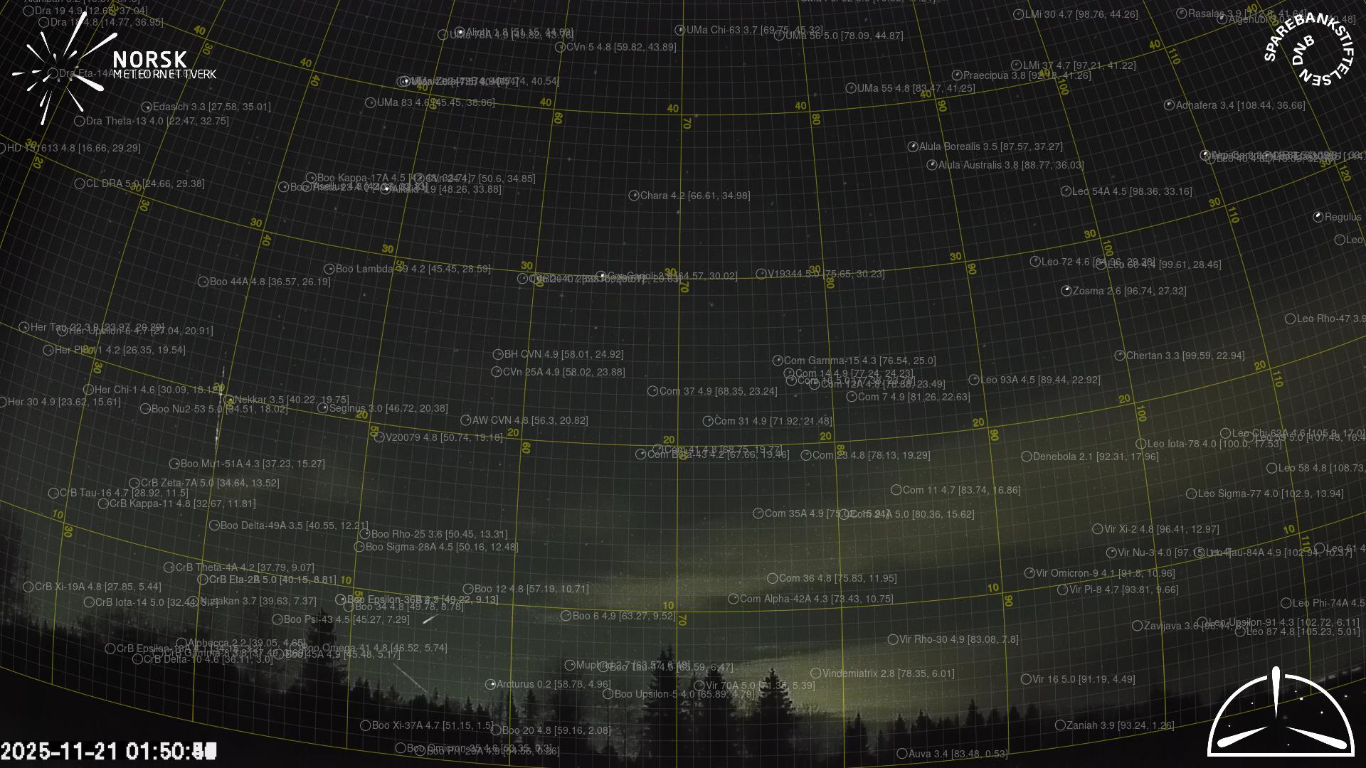 Meteor, poloha: Sveg 2025-11-21 01:50:43 UTC
