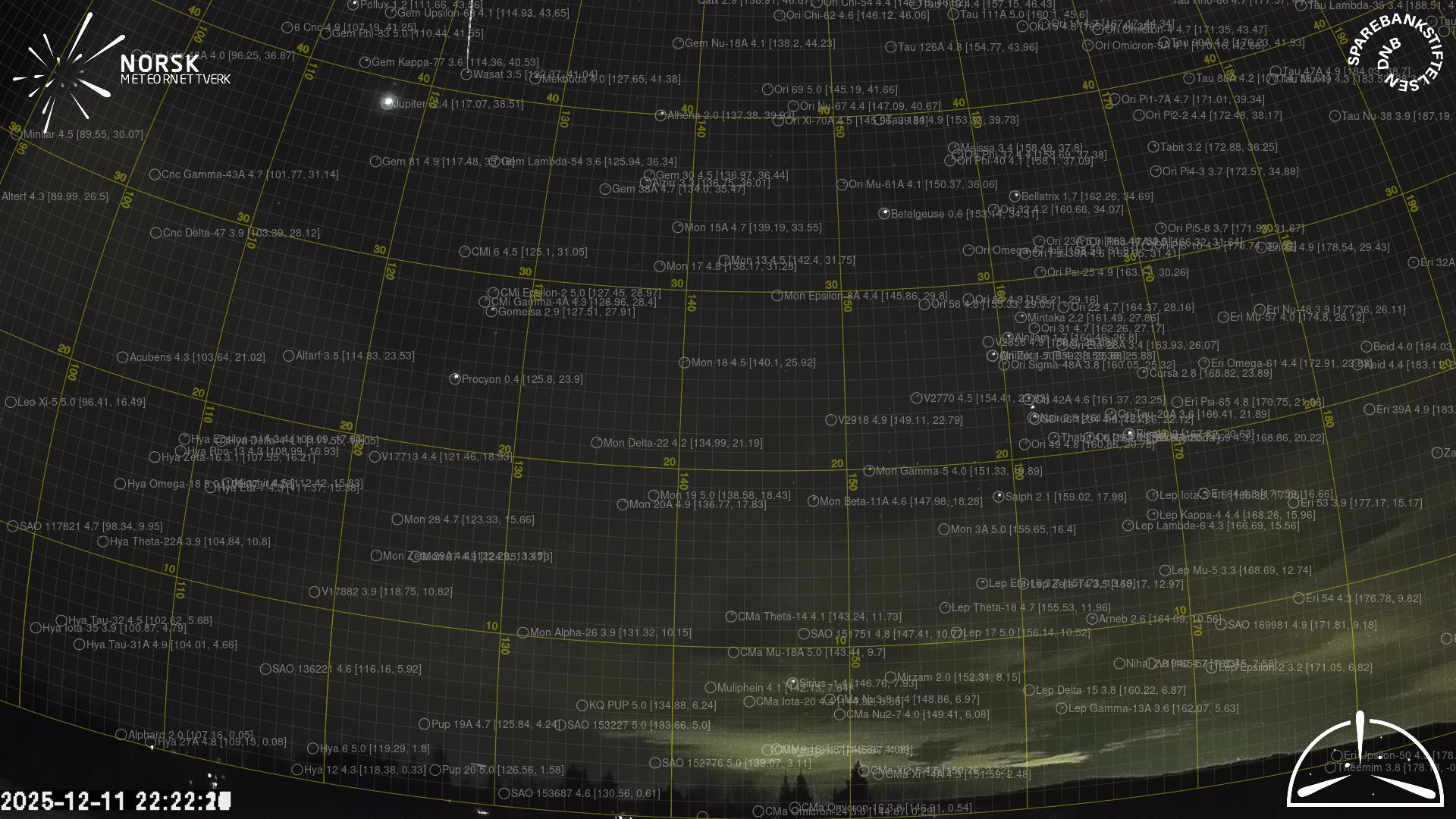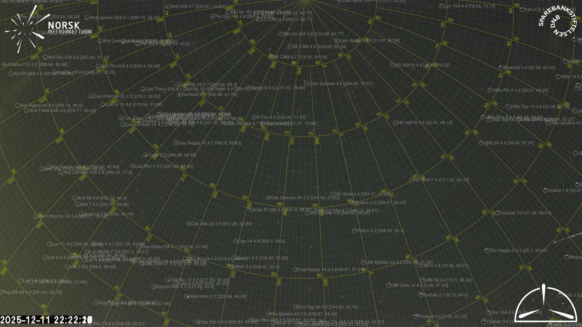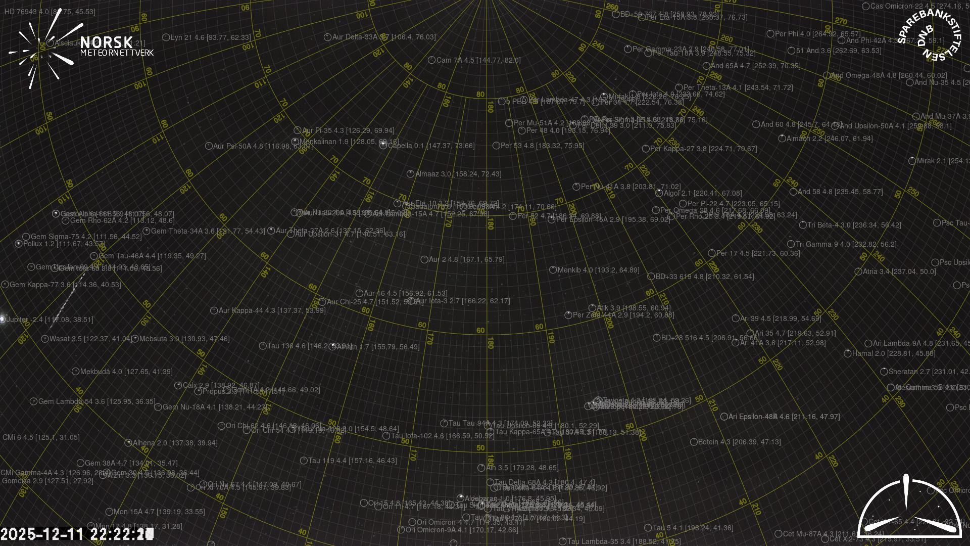 Kartet viser peilingene for meteoren. De lysere linjene viser retningene fra observasjonsstedene for meteorens tilsynekomst, og de mørkere linjene viser hvor den sist kunne sees. Den blå pila viser meteorens synlige ferd.