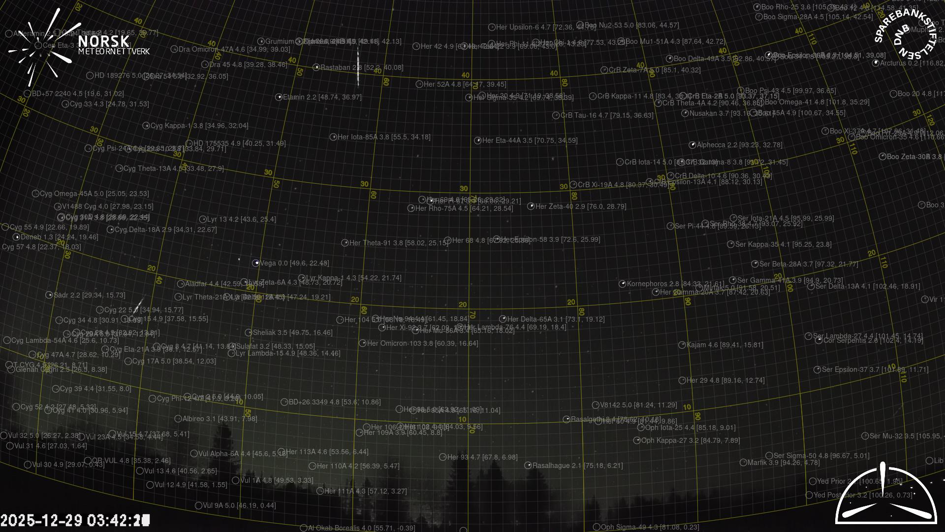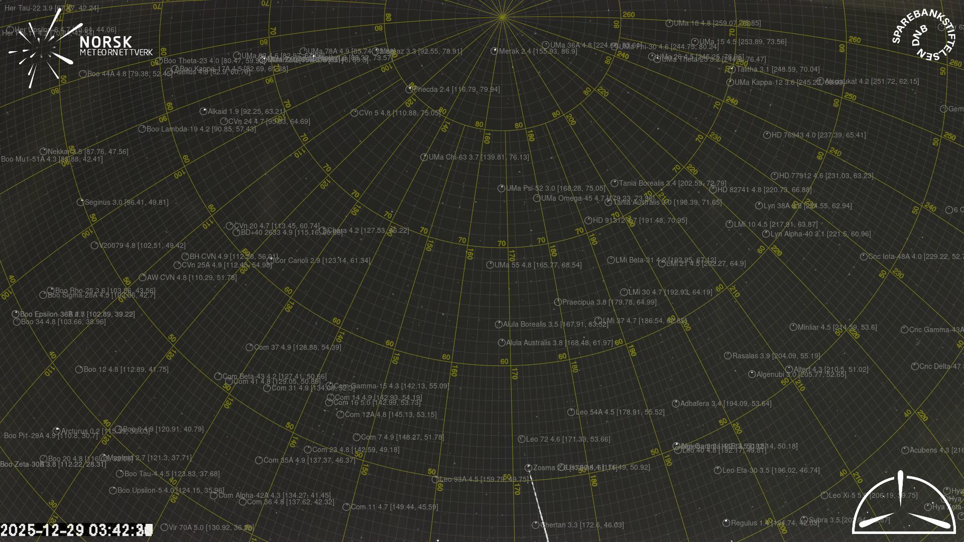 Kartet viser peilingene for meteoren. De lysere linjene viser retningene fra observasjonsstedene for meteorens tilsynekomst, og de mørkere linjene viser hvor den sist kunne sees. Den blå pila viser meteorens synlige ferd.