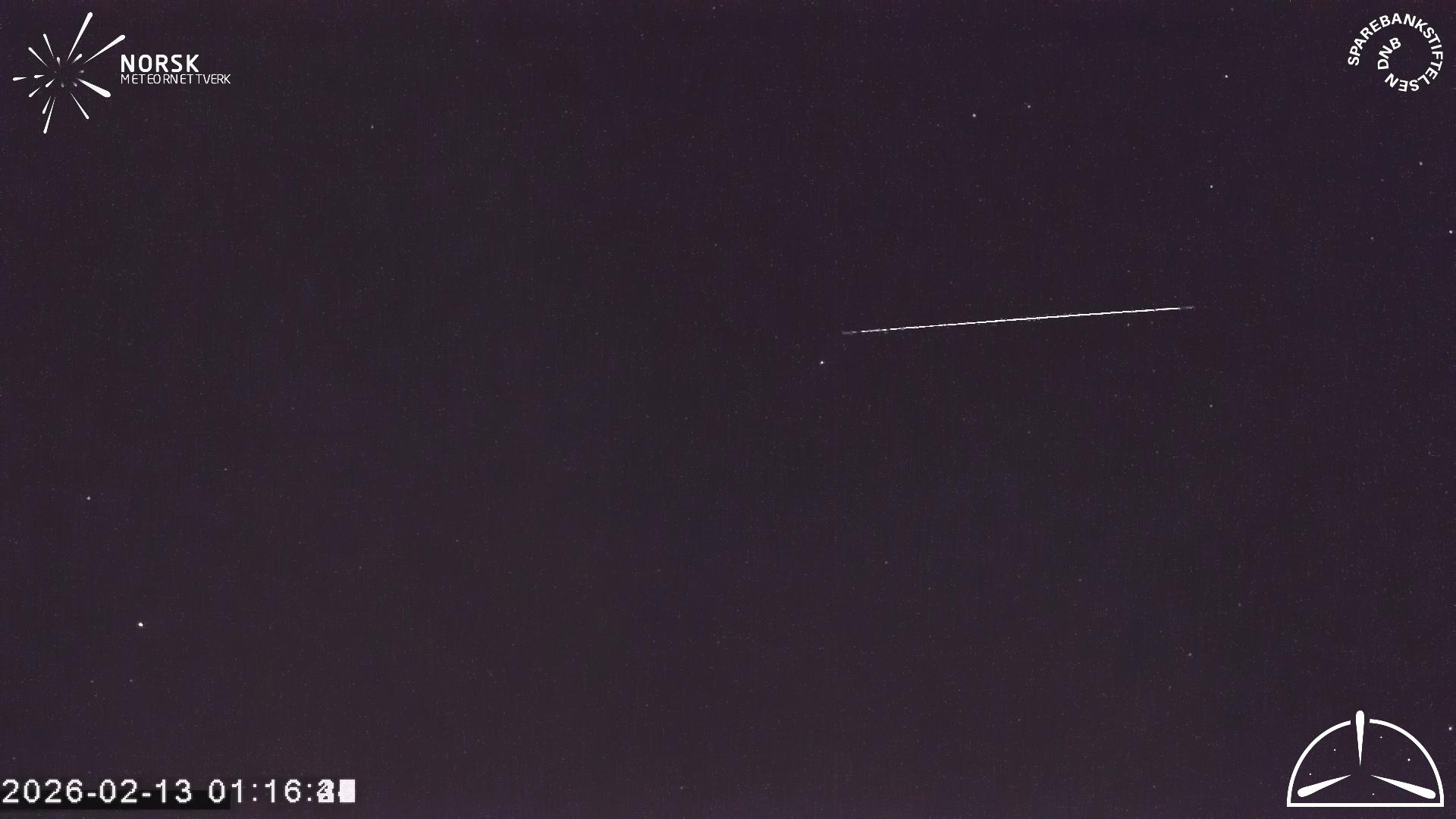 Meteor over Storsteinnes 2026-02-13 01:16:36 UTC