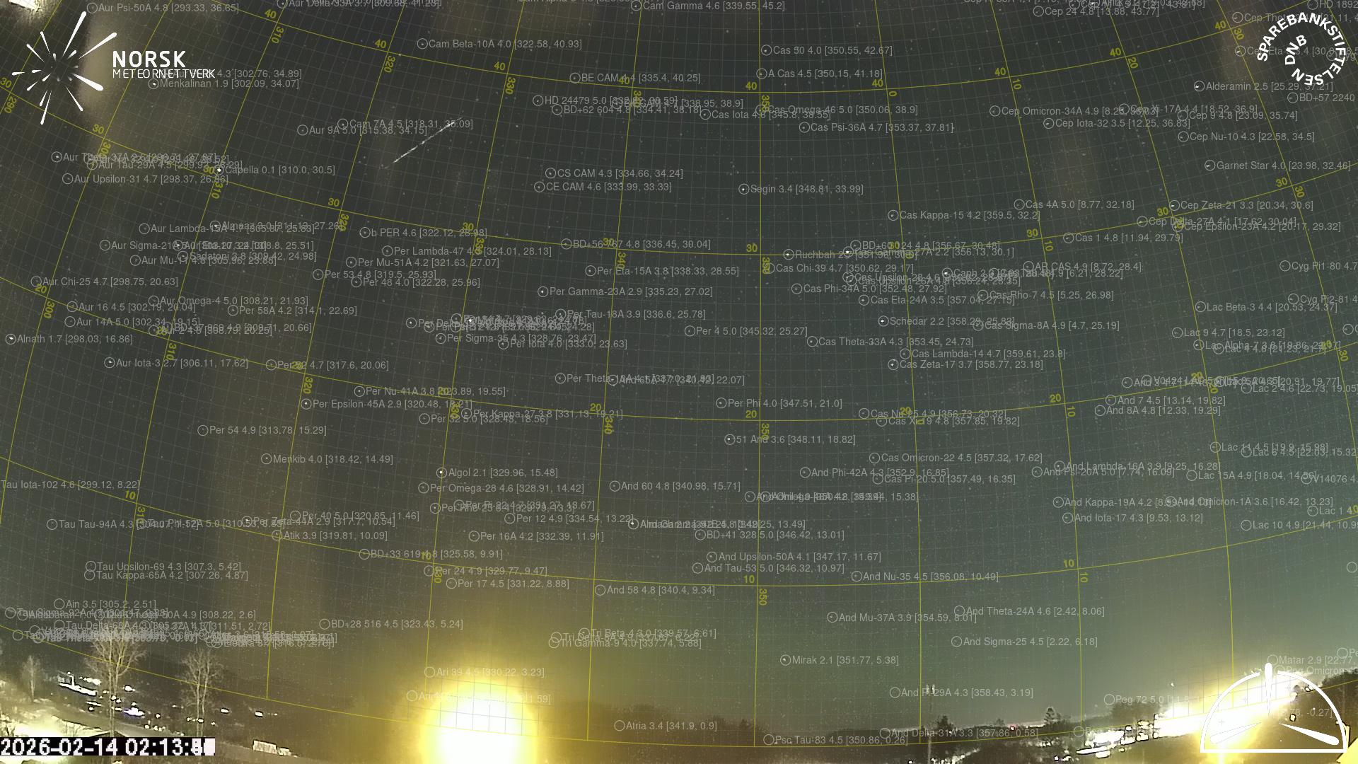 Meteor over Rjukan 2026-02-14 02:13:53 UTC