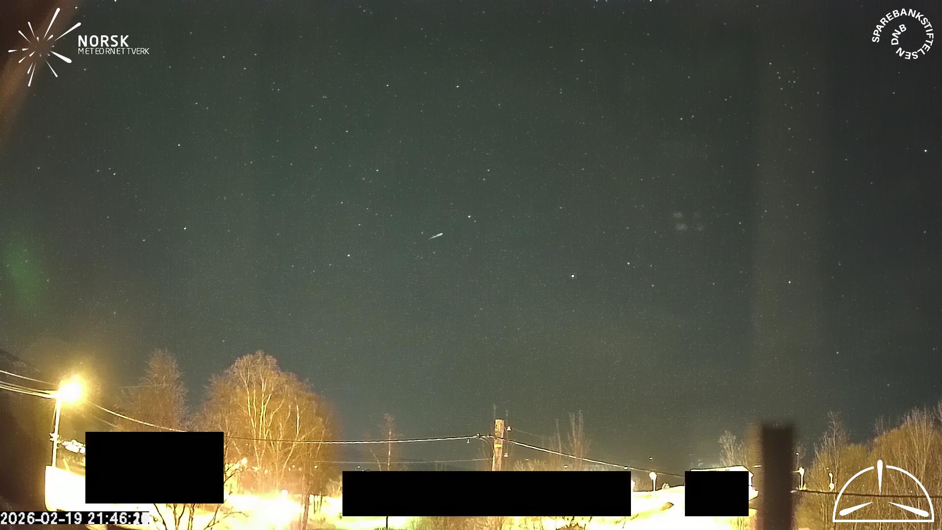 Meteor over Burfjord 2026-02-19 21:46:24 UTC