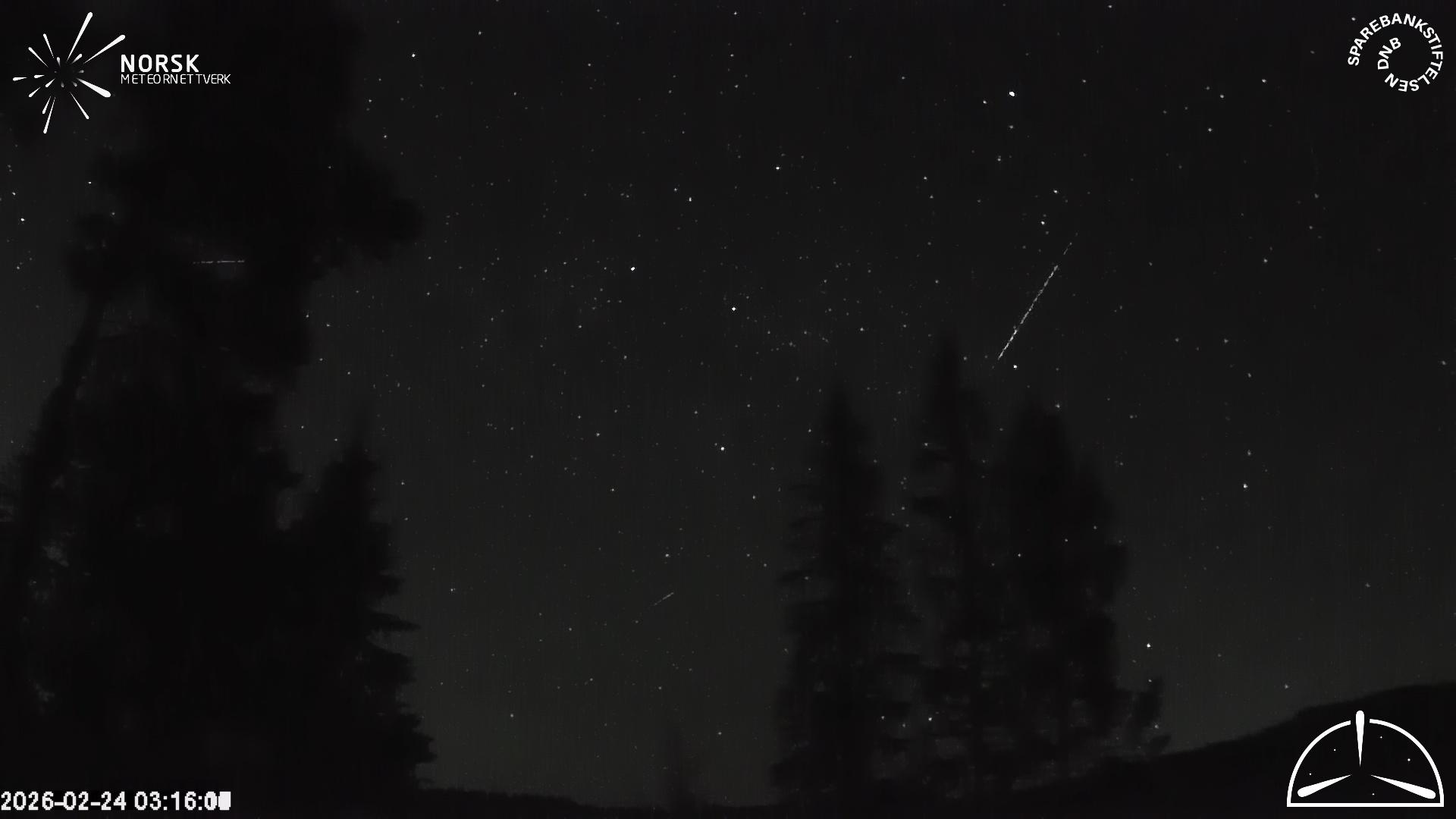 Kartet viser peilingene for meteoren. De lysere linjene viser retningene fra observasjonsstedene for meteorens tilsynekomst, og de mørkere linjene viser hvor den sist kunne sees. Den blå pila viser meteorens synlige ferd.