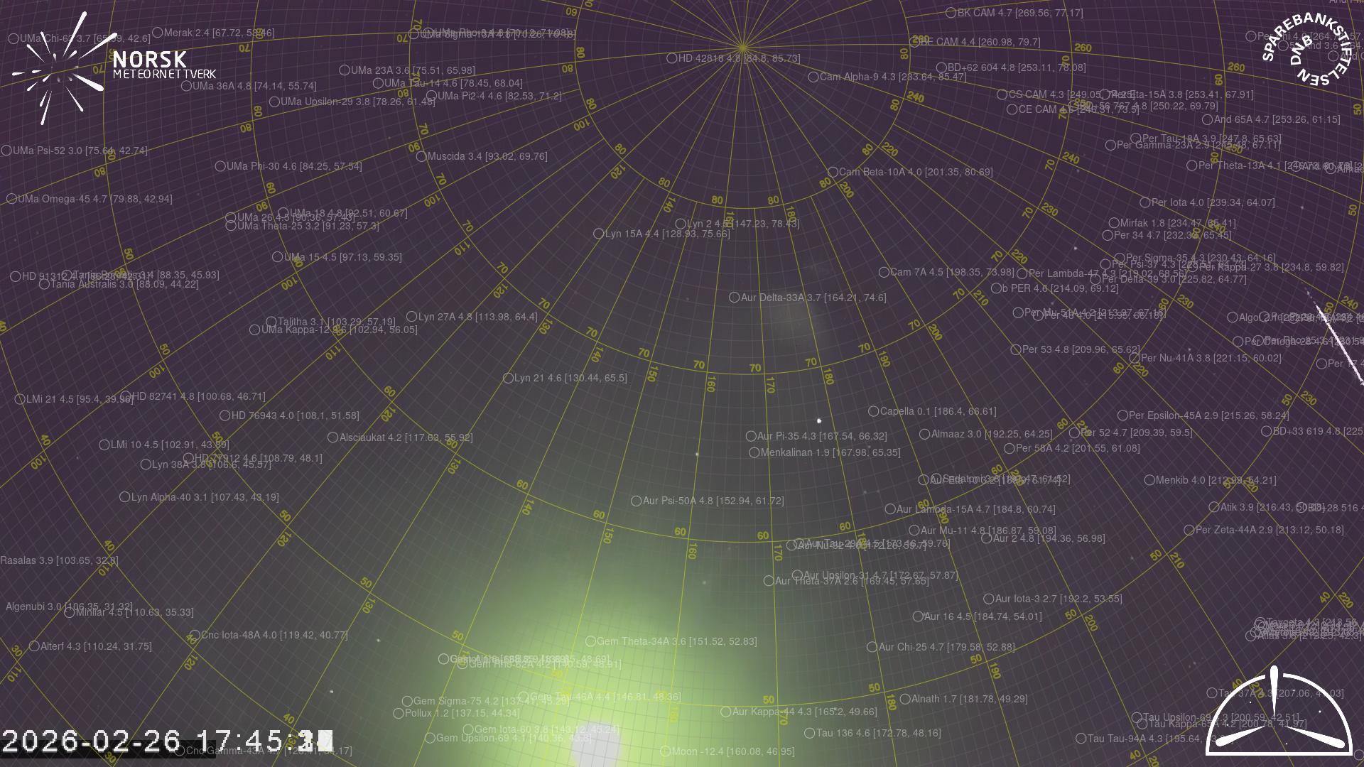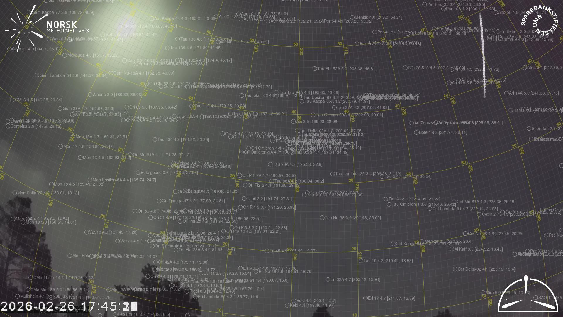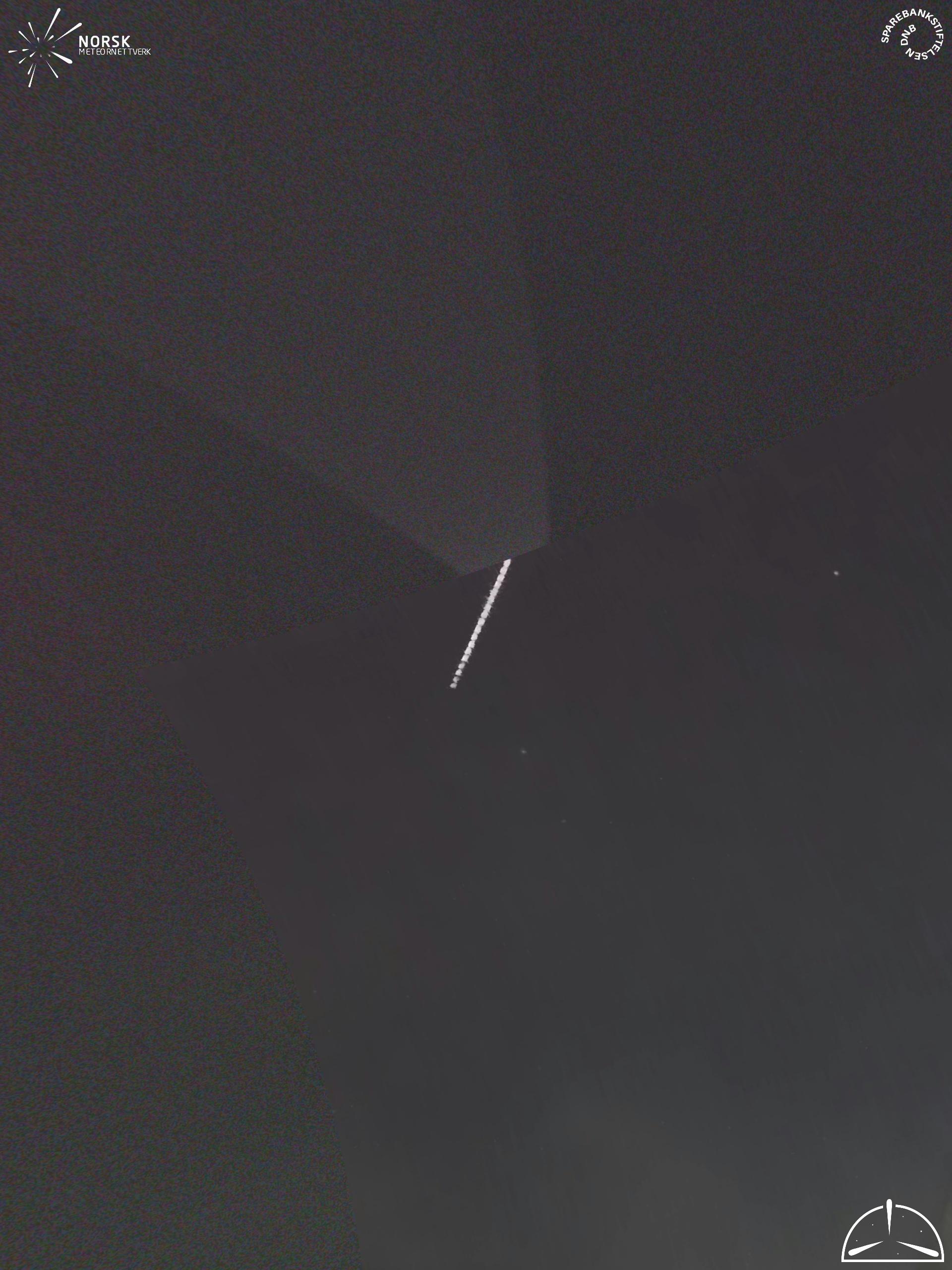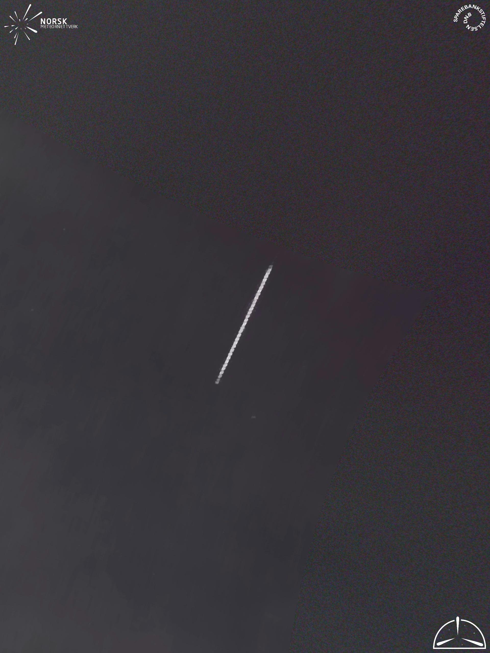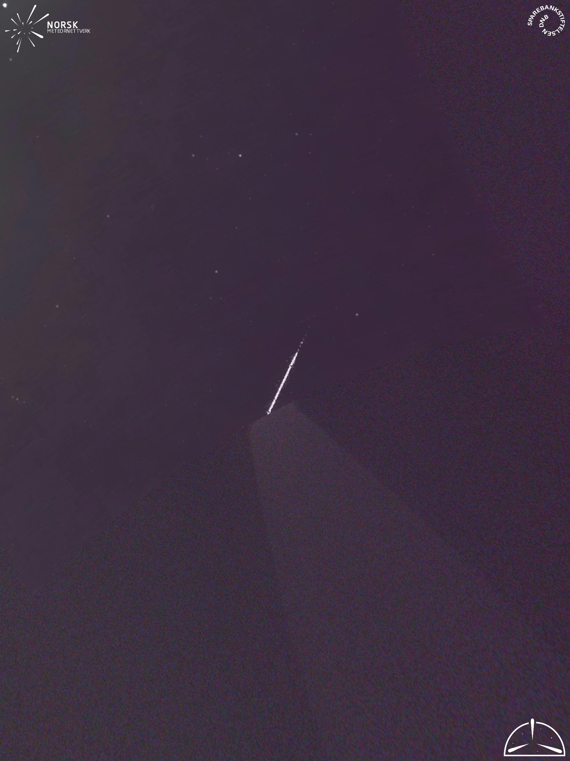 Kartet viser peilingene for meteoren. De lysere linjene viser retningene fra observasjonsstedene for meteorens tilsynekomst, og de mørkere linjene viser hvor den sist kunne sees. Den blå pila viser meteorens synlige ferd.