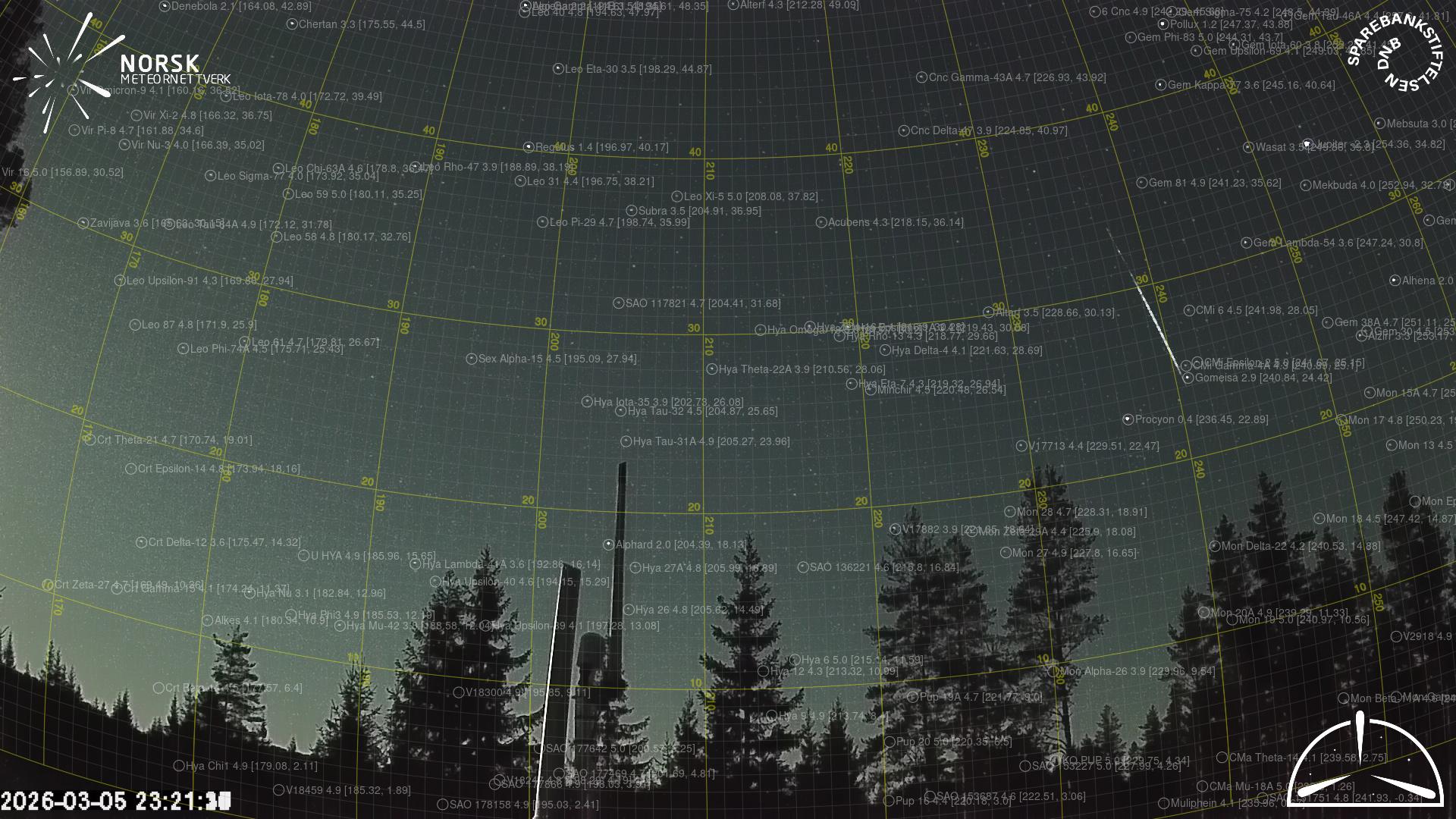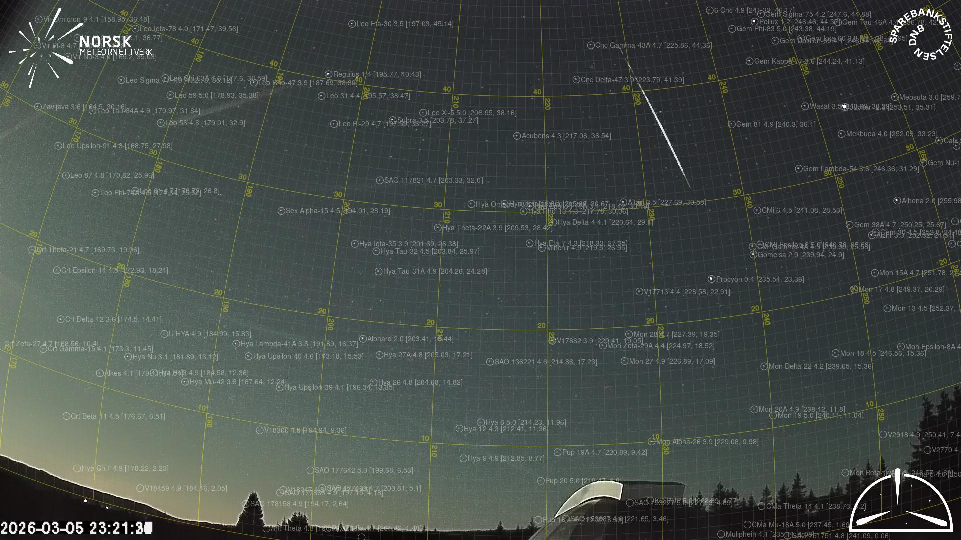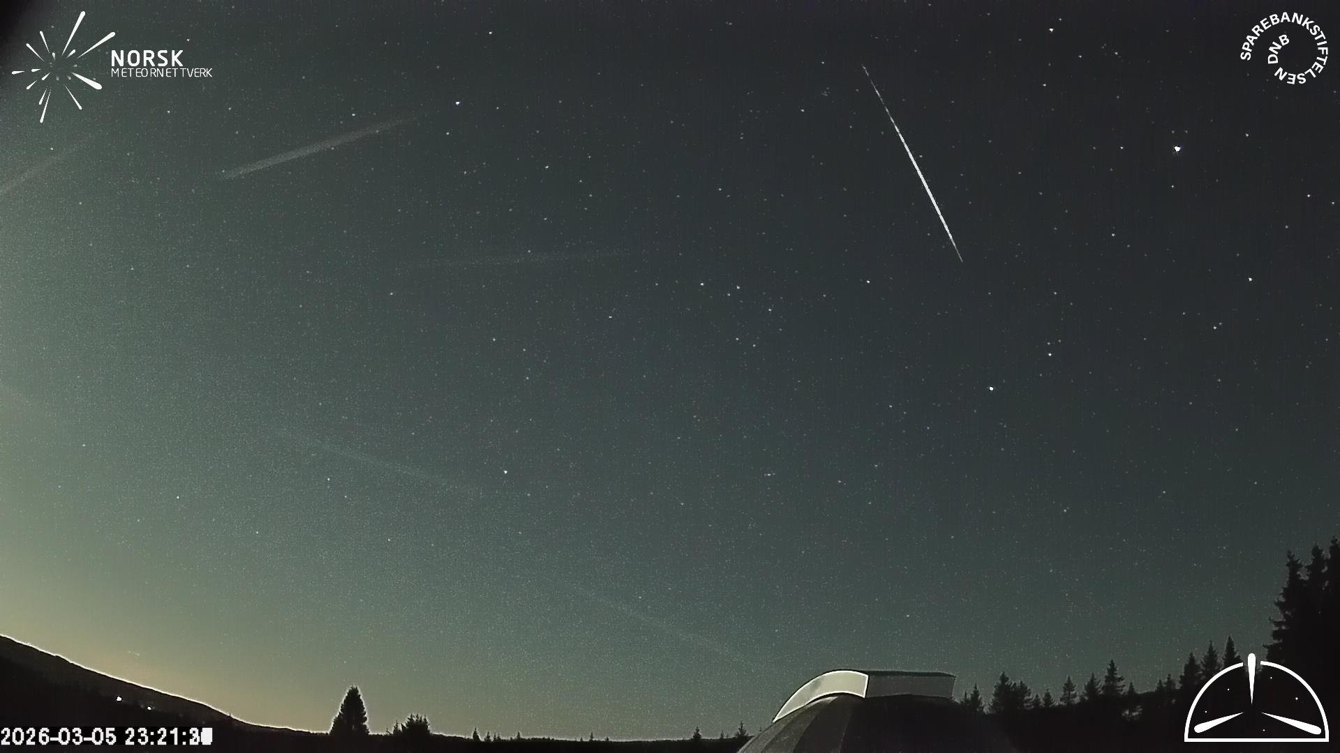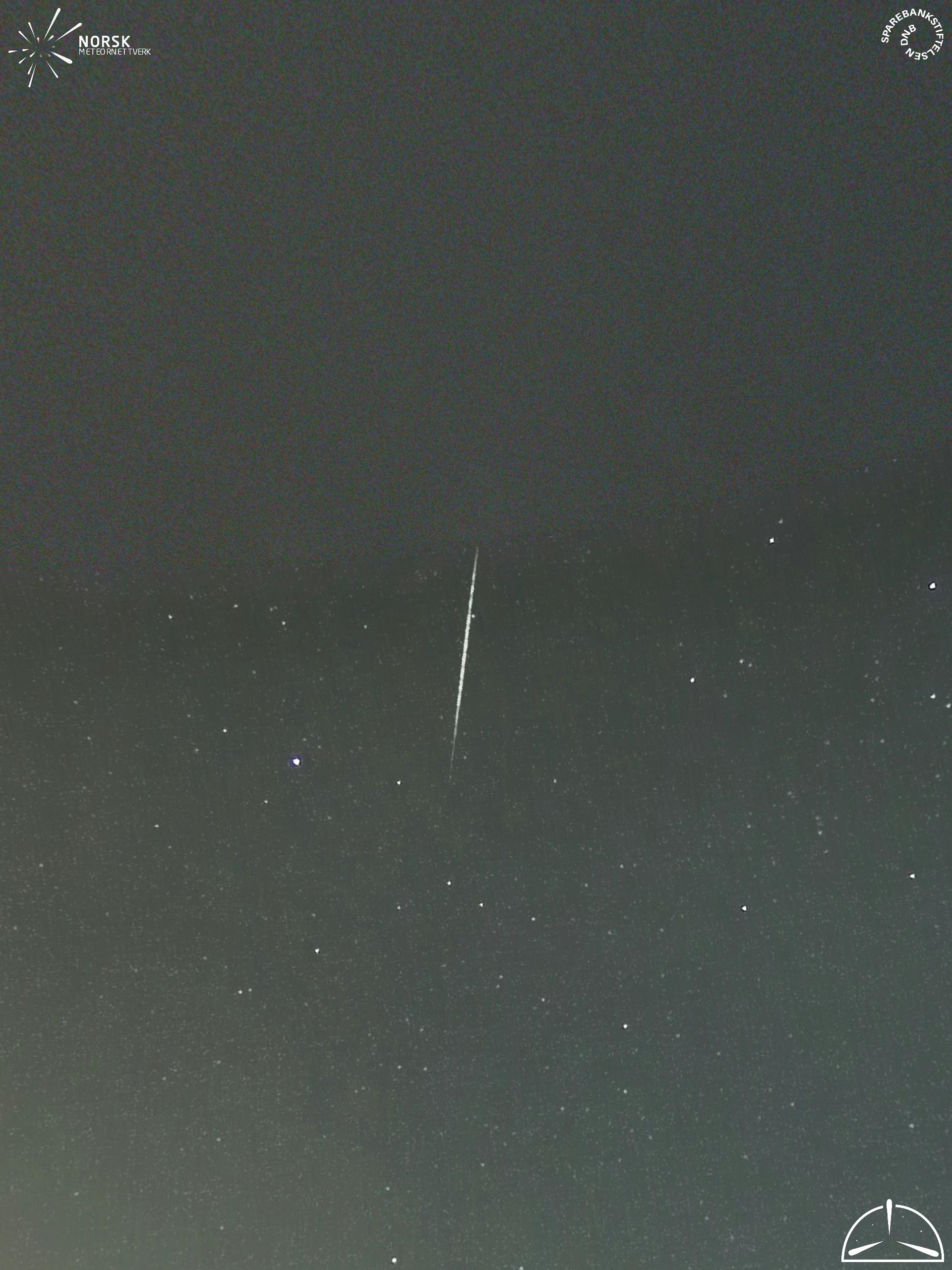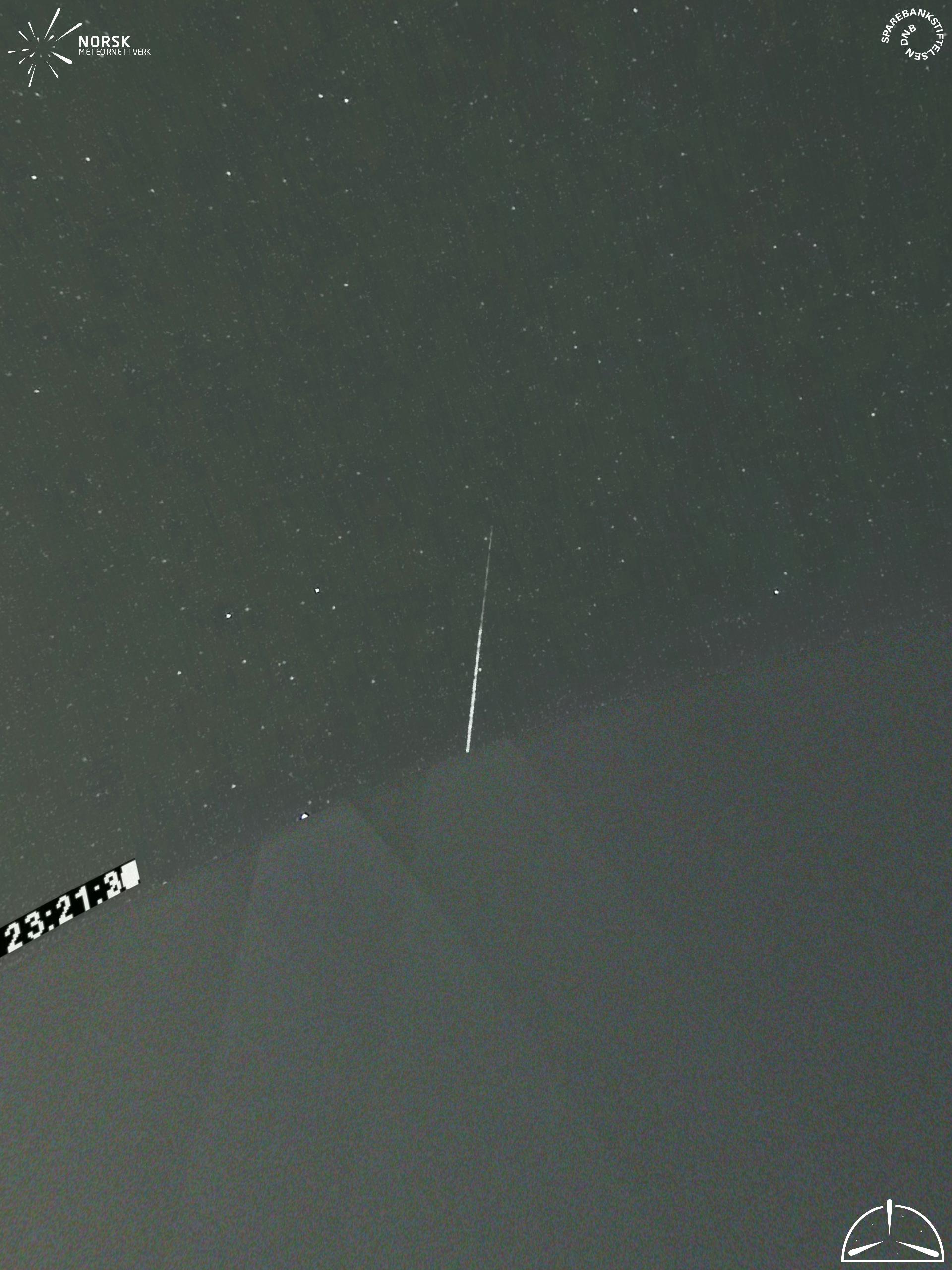Kartet viser peilingene for meteoren. De lysere linjene viser retningene fra observasjonsstedene for meteorens tilsynekomst, og de mørkere linjene viser hvor den sist kunne sees. Den blå pila viser meteorens synlige ferd.