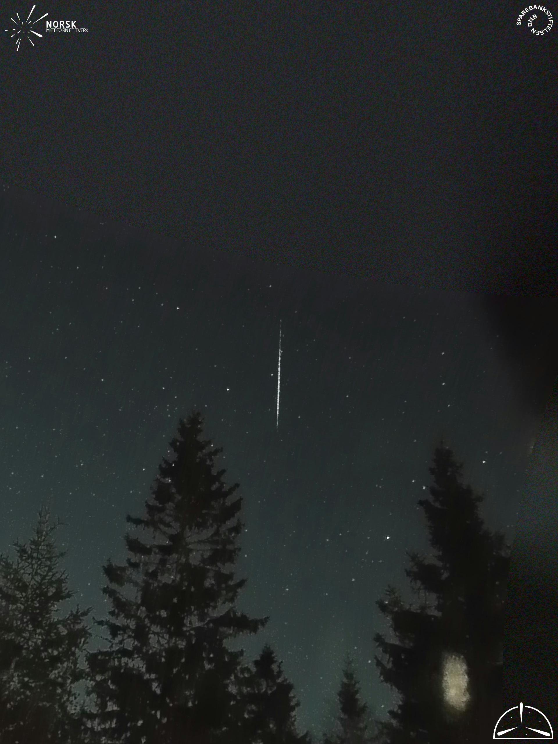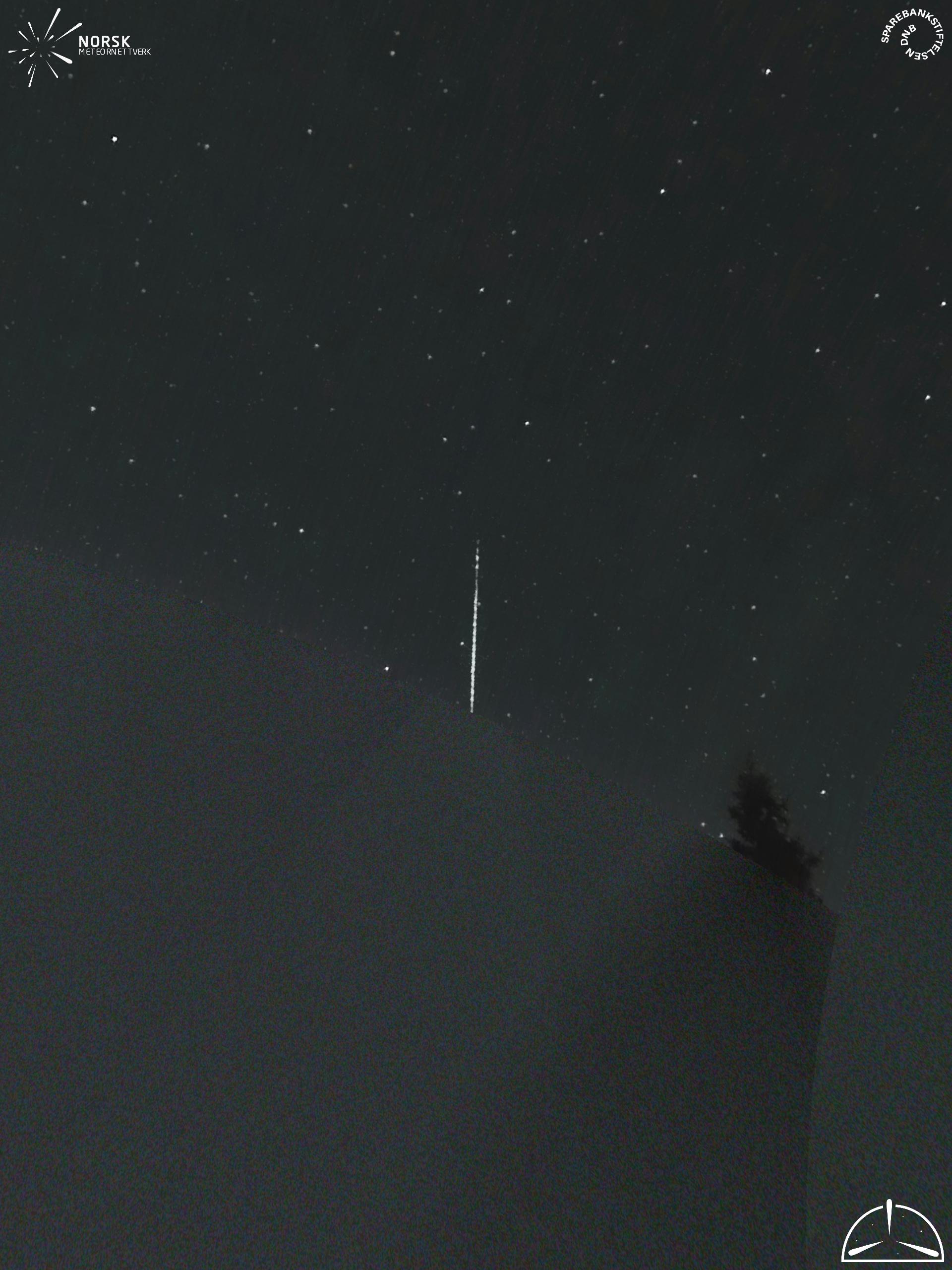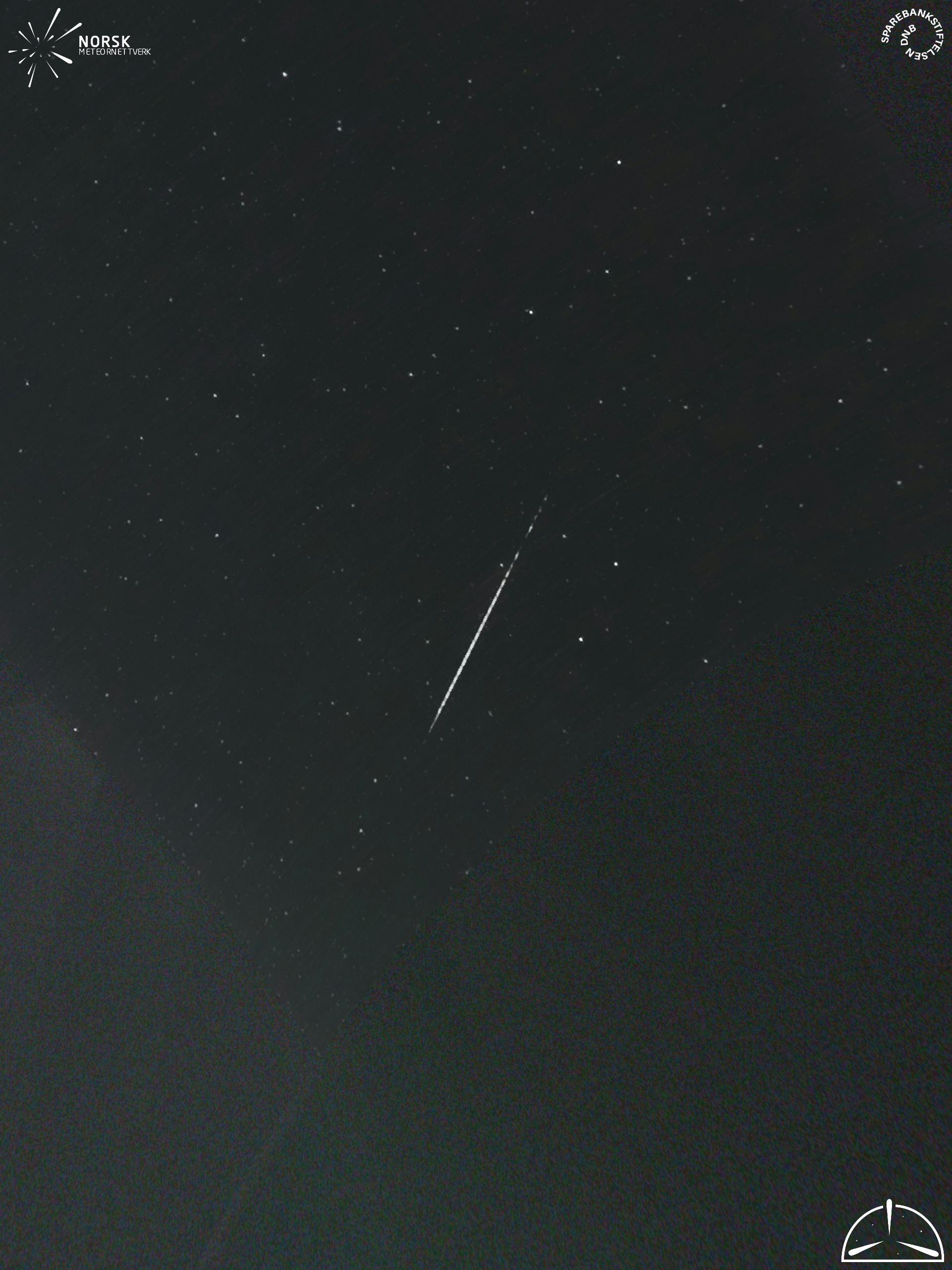 Kartet viser peilingene for meteoren. De lysere linjene viser retningene fra observasjonsstedene for meteorens tilsynekomst, og de mørkere linjene viser hvor den sist kunne sees. Den blå pila viser meteorens synlige ferd.
