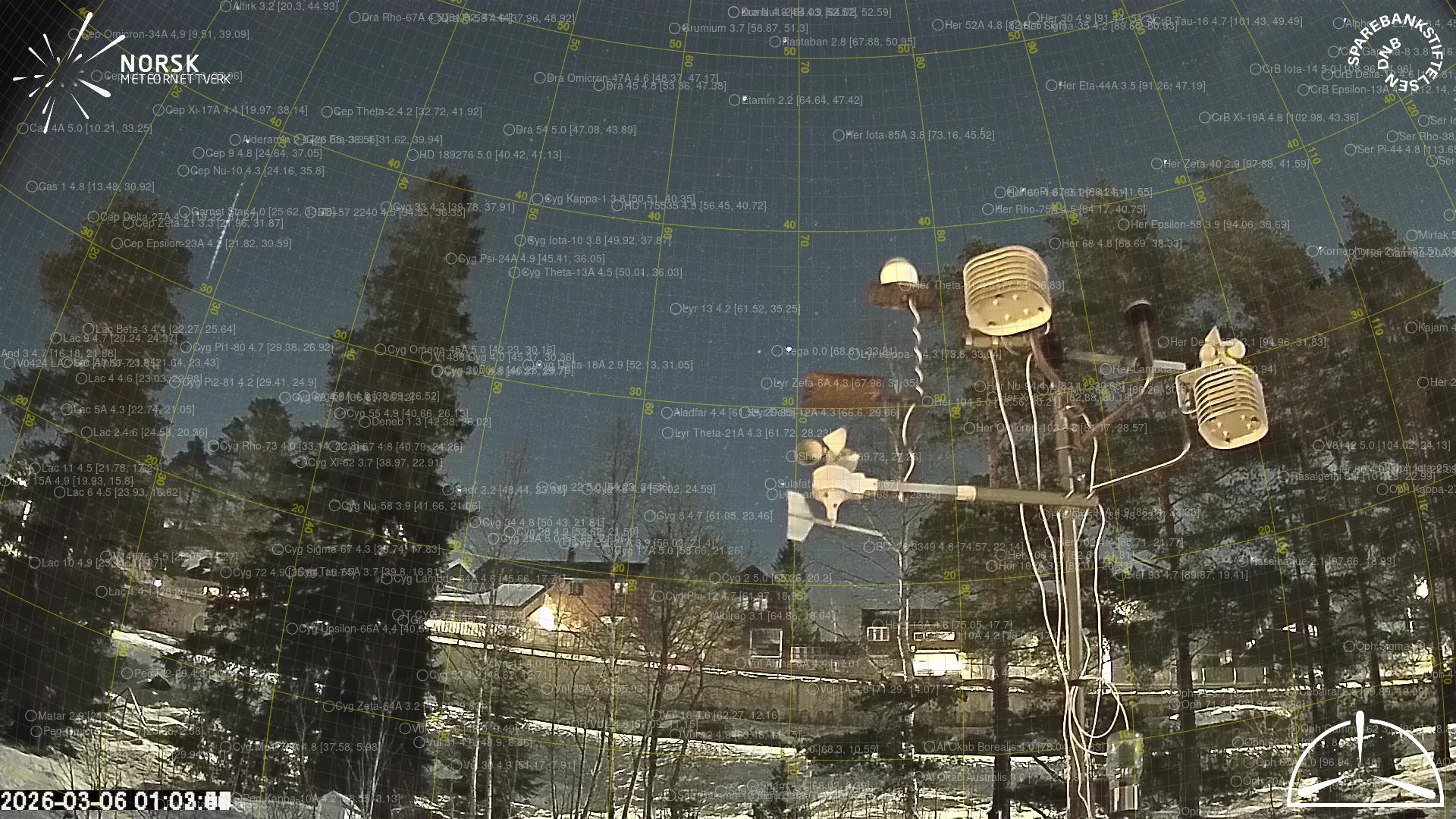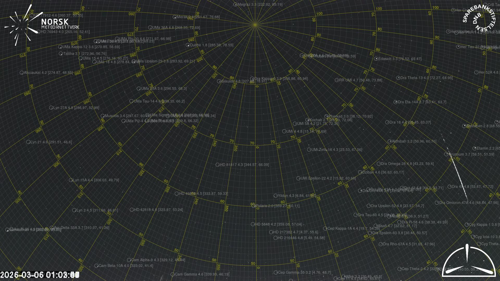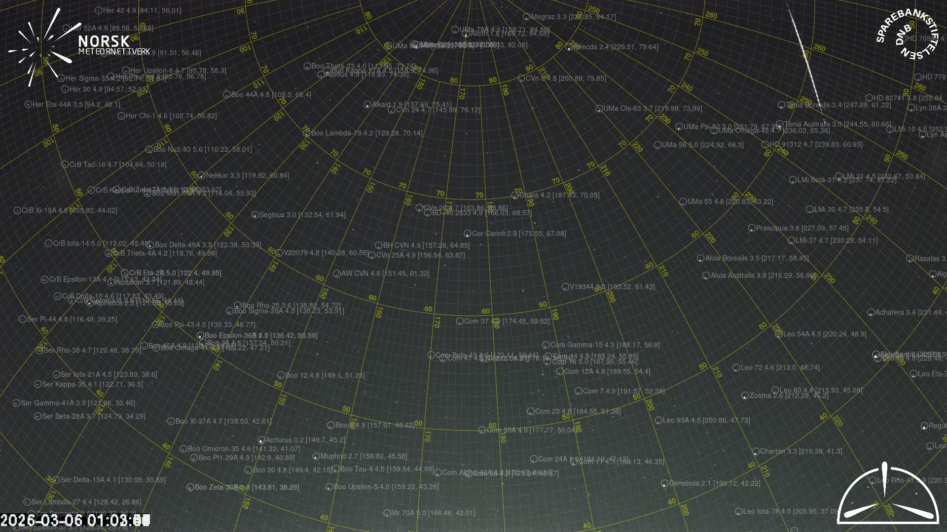 Kartet viser peilingene for meteoren. De lysere linjene viser retningene fra observasjonsstedene for meteorens tilsynekomst, og de mørkere linjene viser hvor den sist kunne sees. Den blå pila viser meteorens synlige ferd.