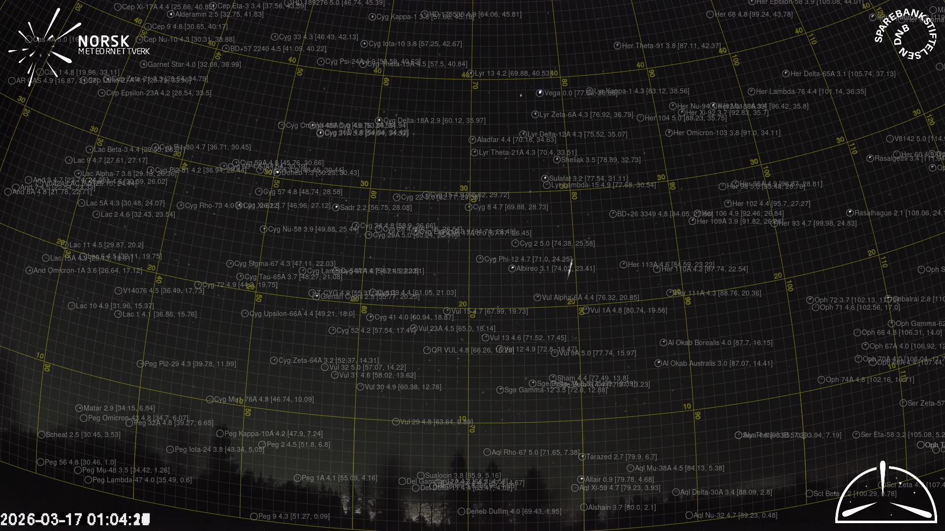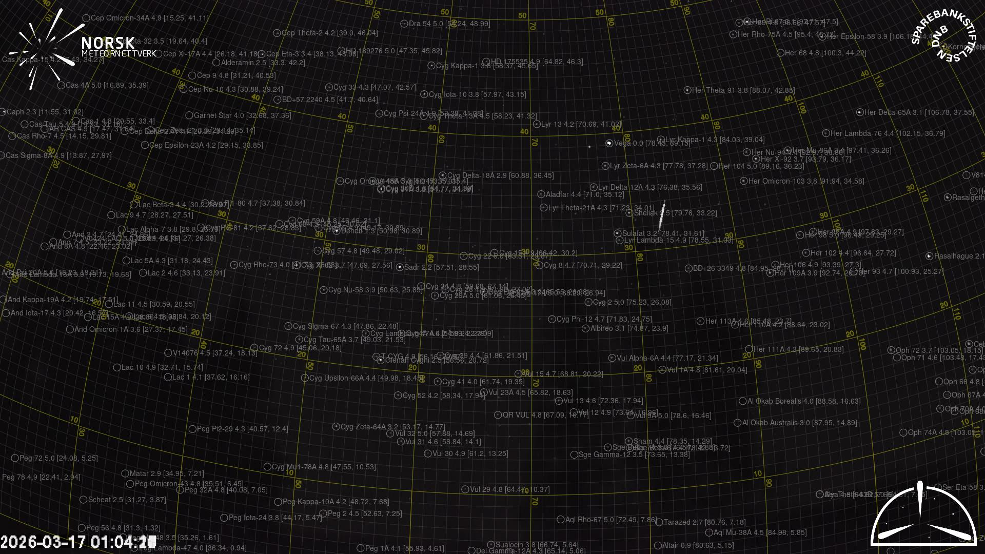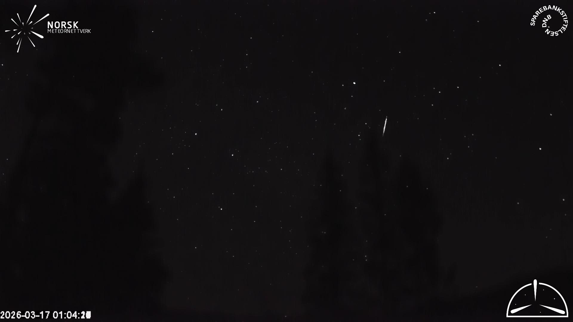 Meteor, poloha: Elverum 2026-03-17 01:04:23 UTC