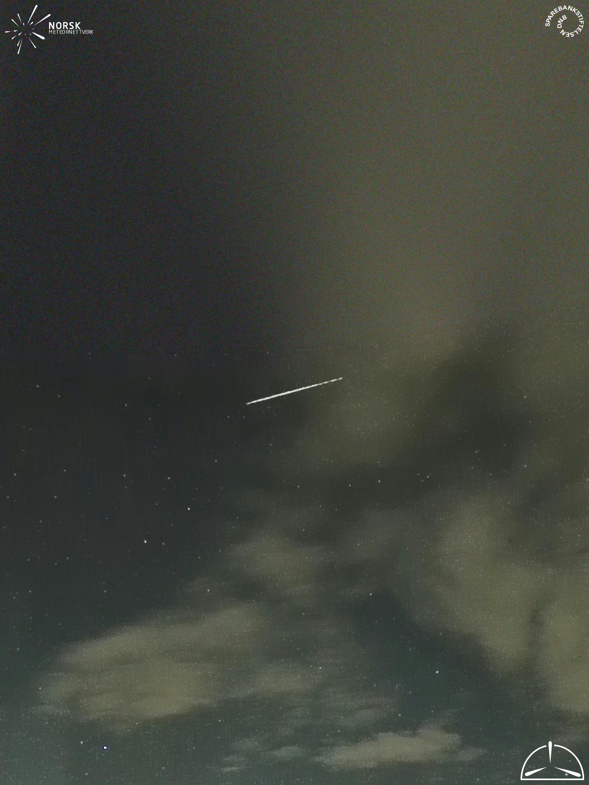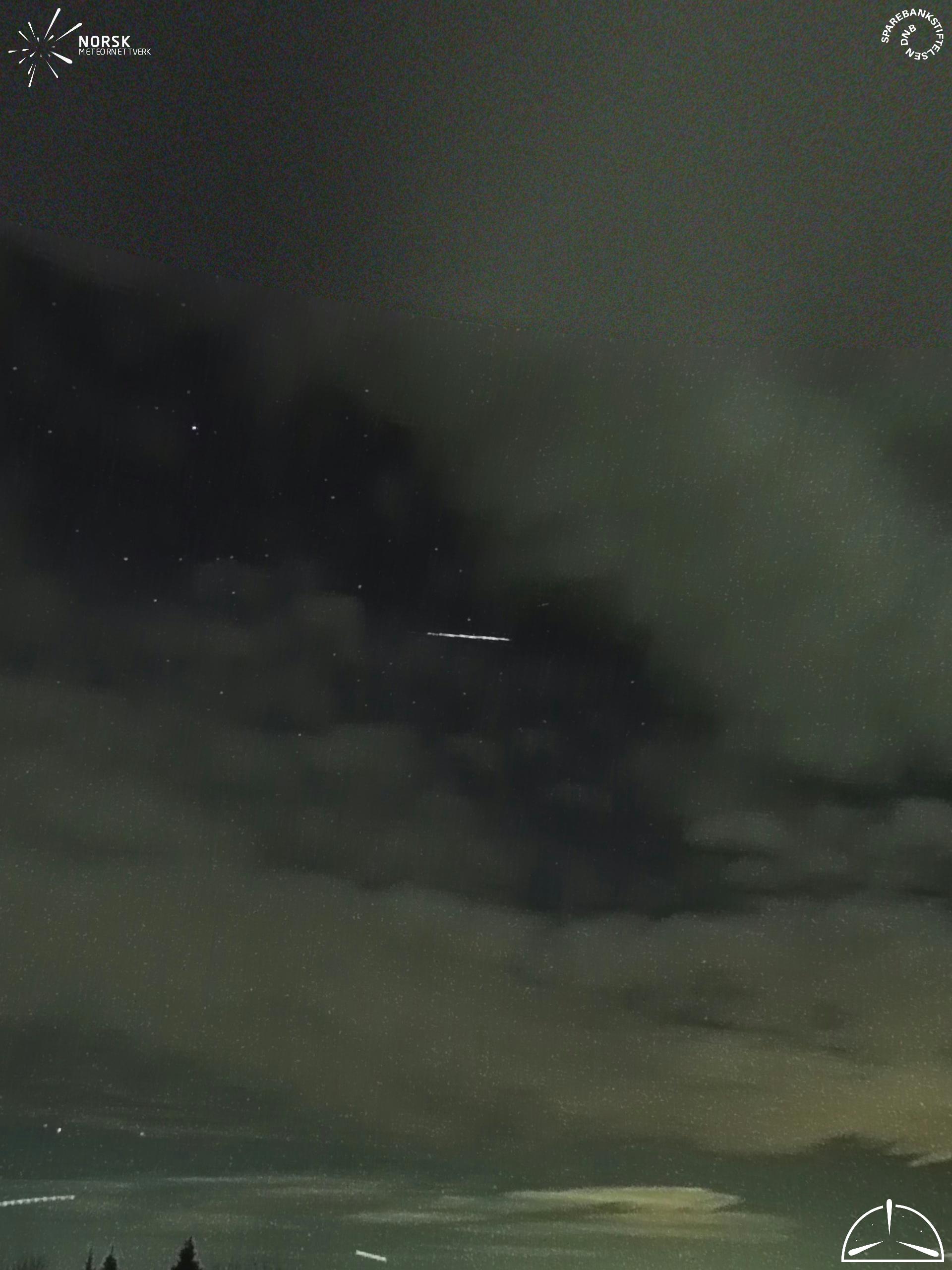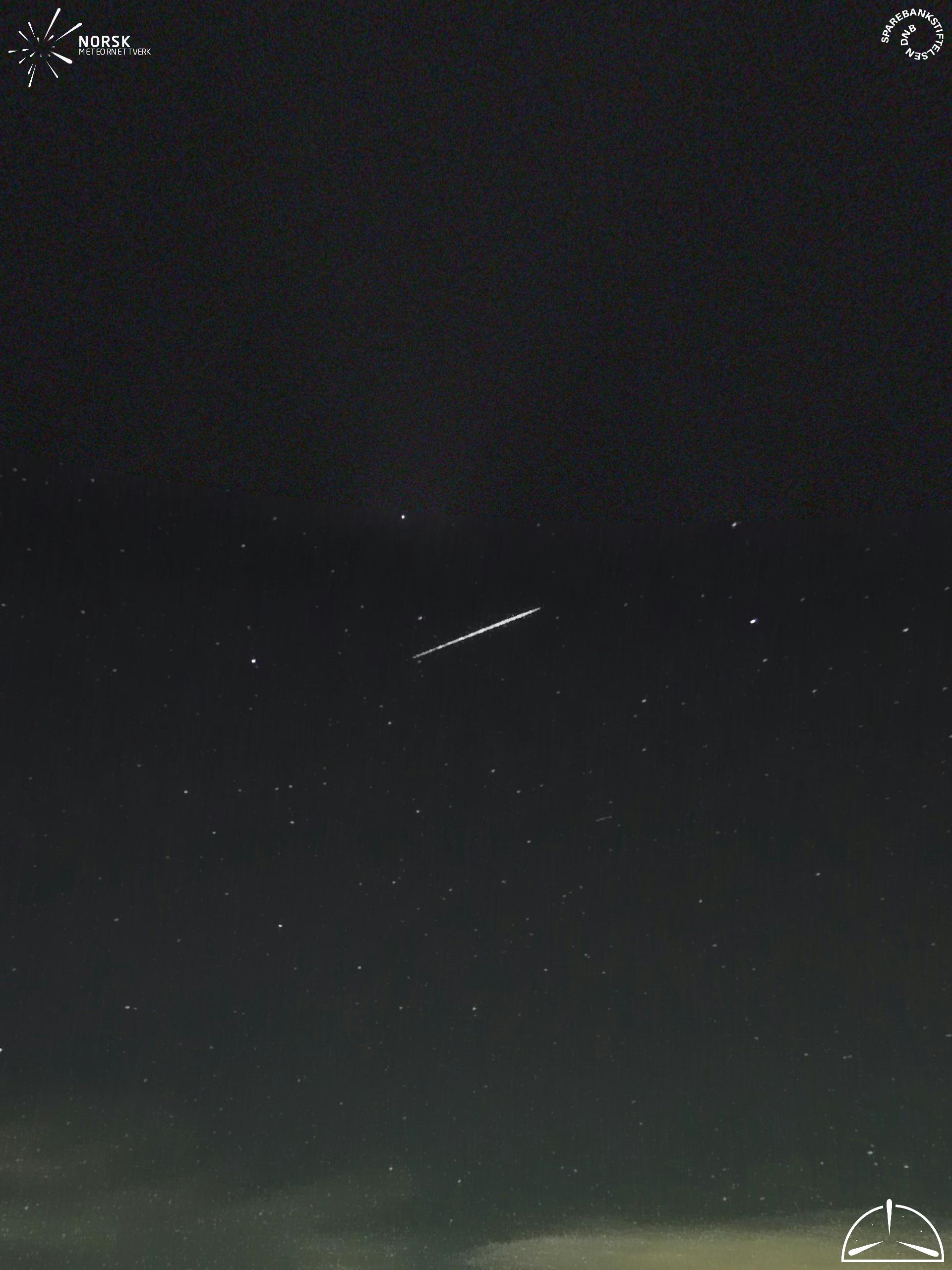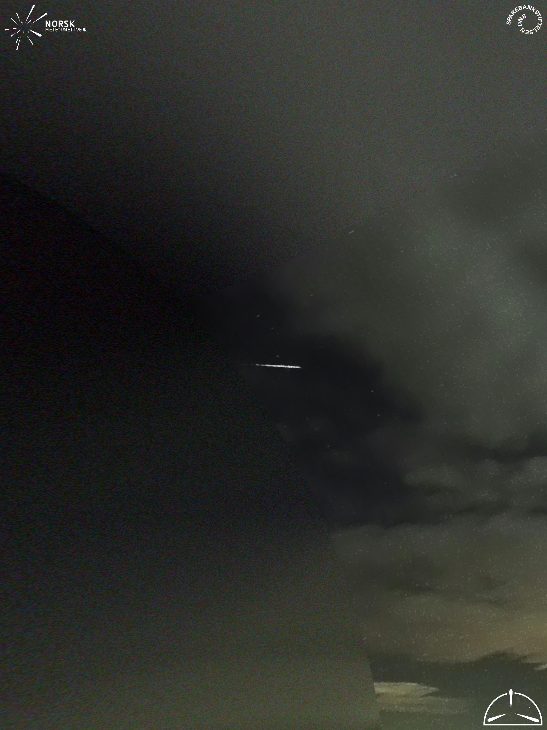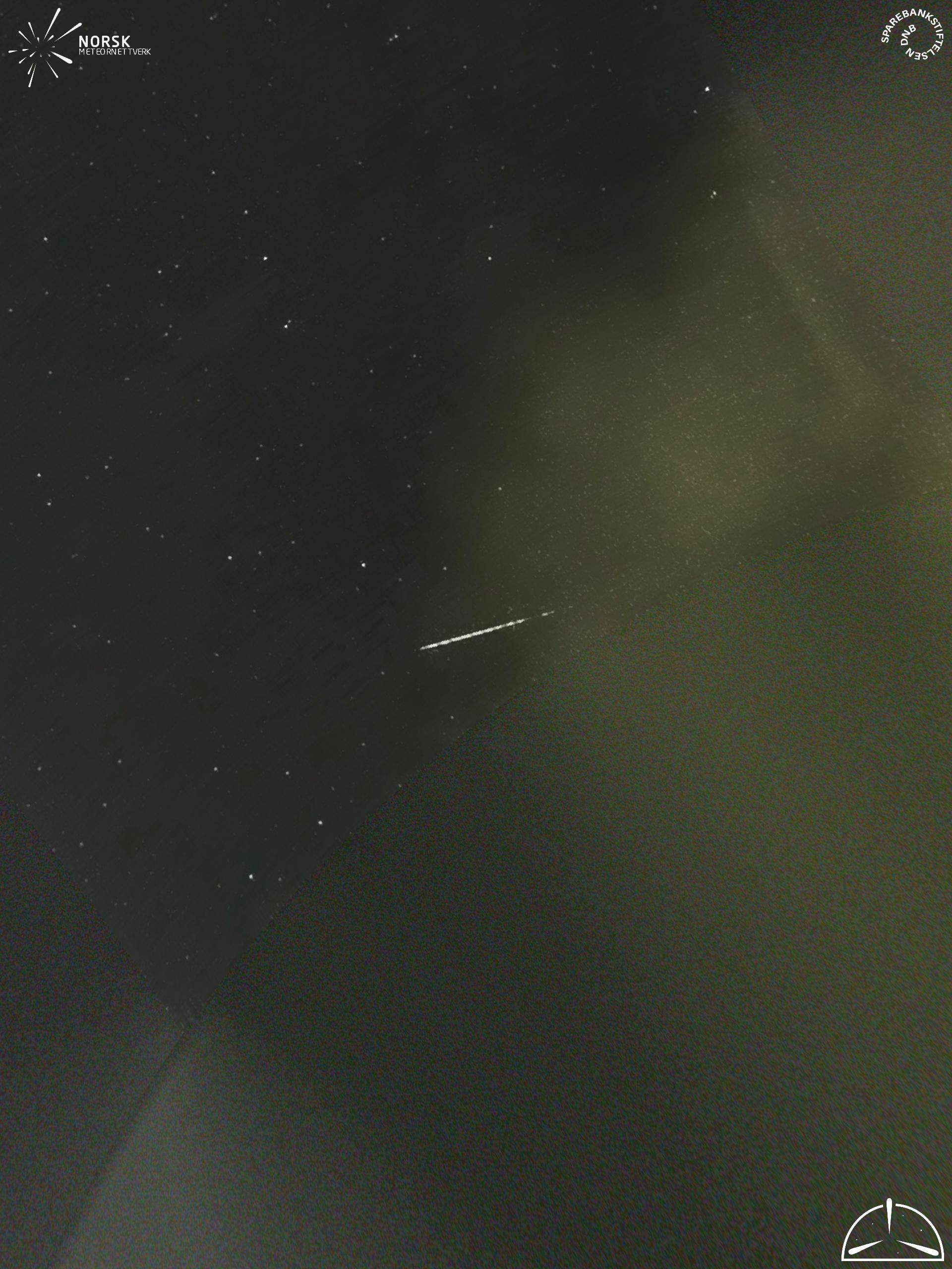 Mapa zobrazuje dráhy meteoru. Světlejší čáry ukazují směry od pozorovacích stanic při objevení se meteoru a tmavší čáry, kde byl naposledy viděn. Modrá šipka značí viditelnou dráhu meteoru.