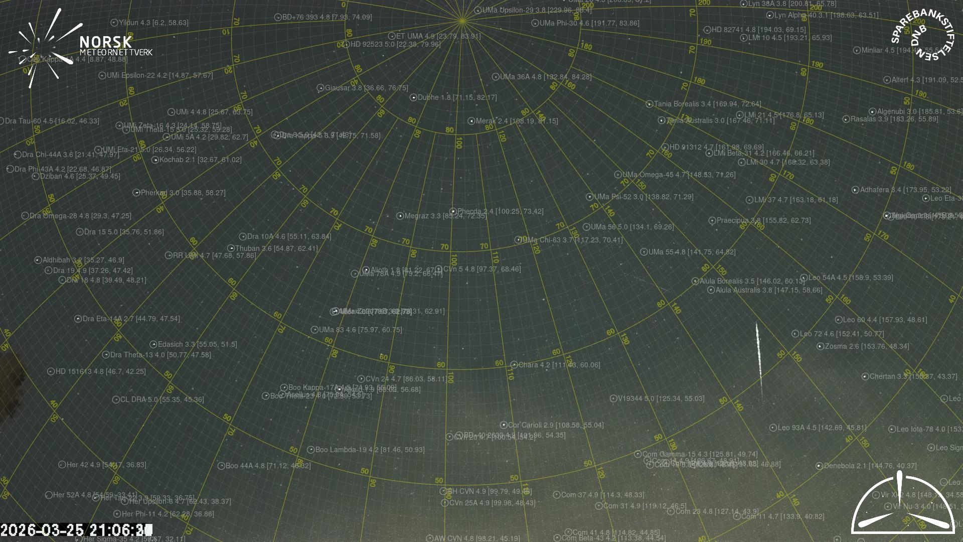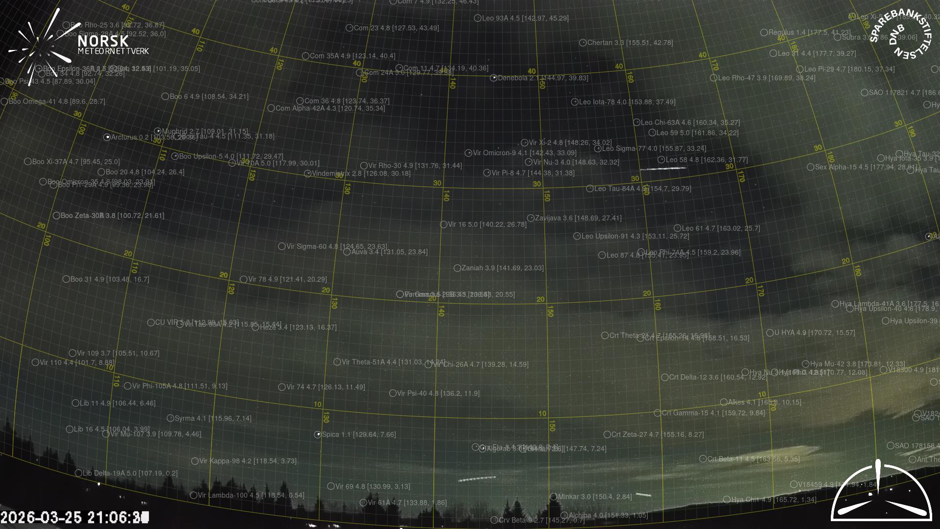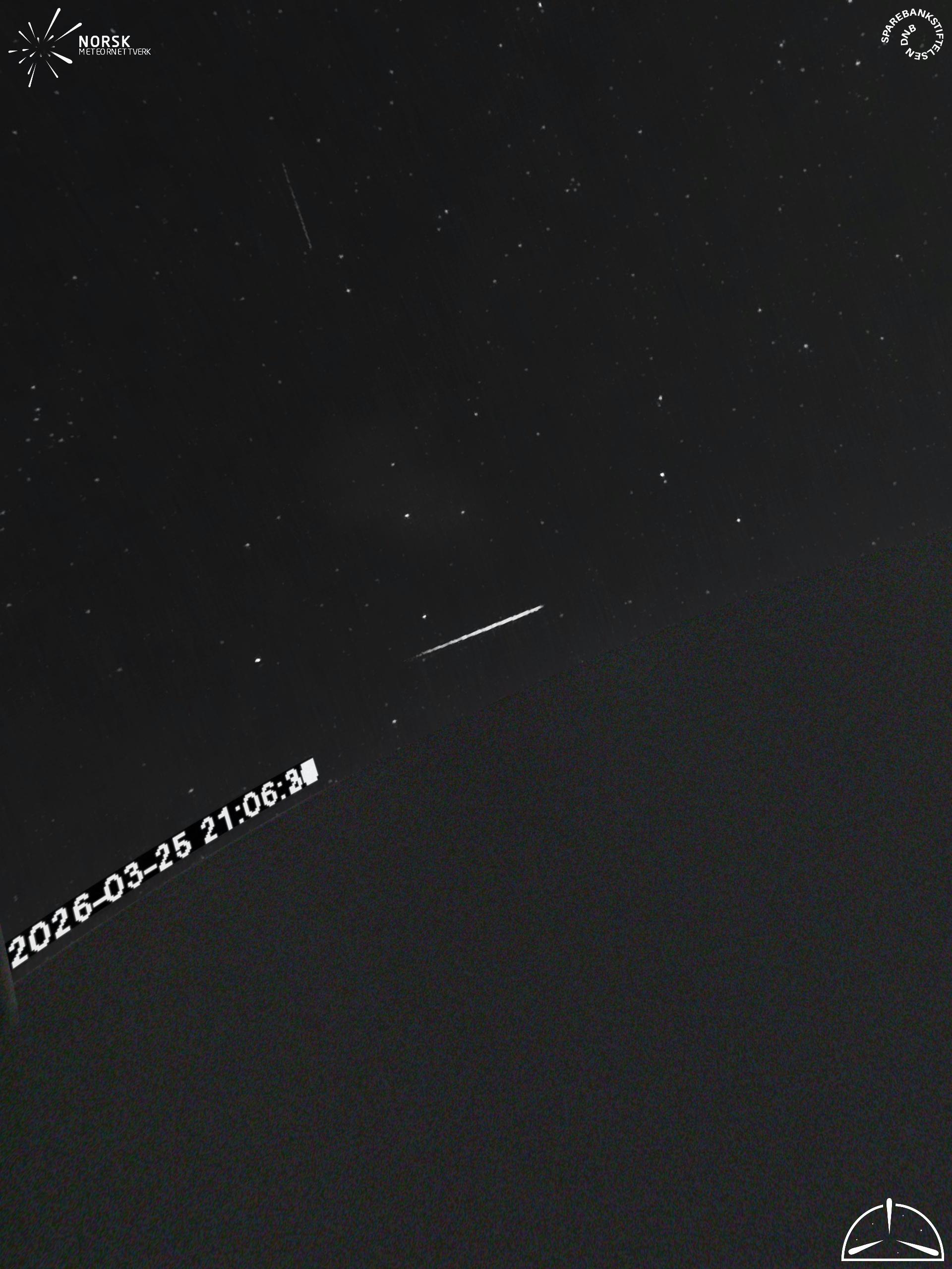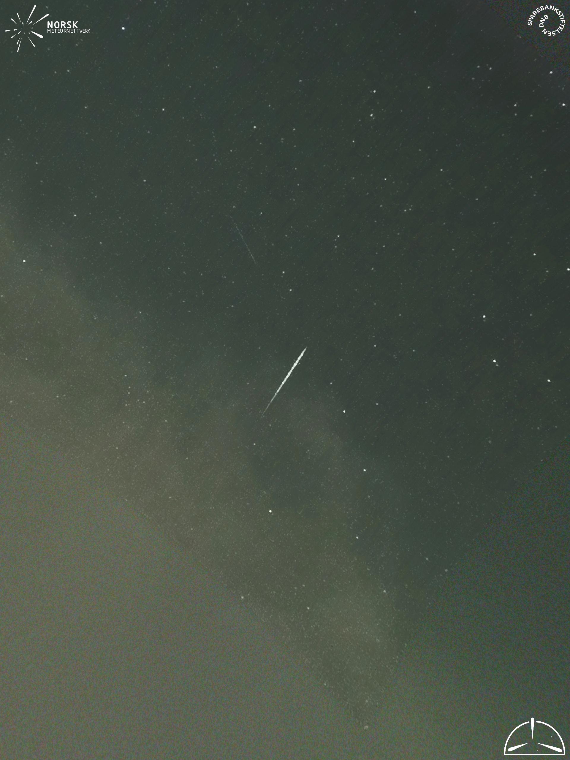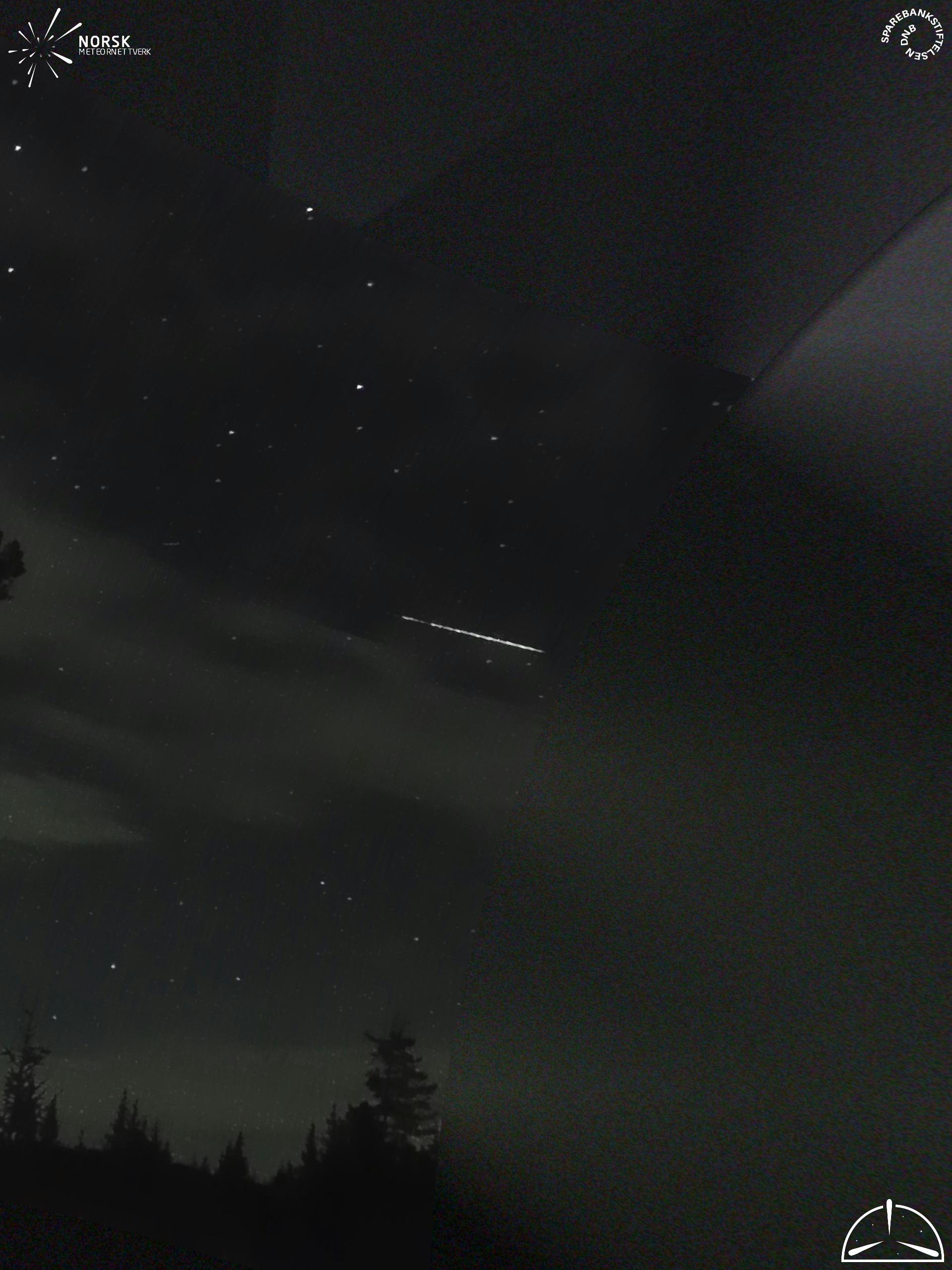 Mapa zobrazuje dráhy meteoru. Světlejší čáry ukazují směry od pozorovacích stanic při objevení se meteoru a tmavší čáry, kde byl naposledy viděn. Modrá šipka značí viditelnou dráhu meteoru.