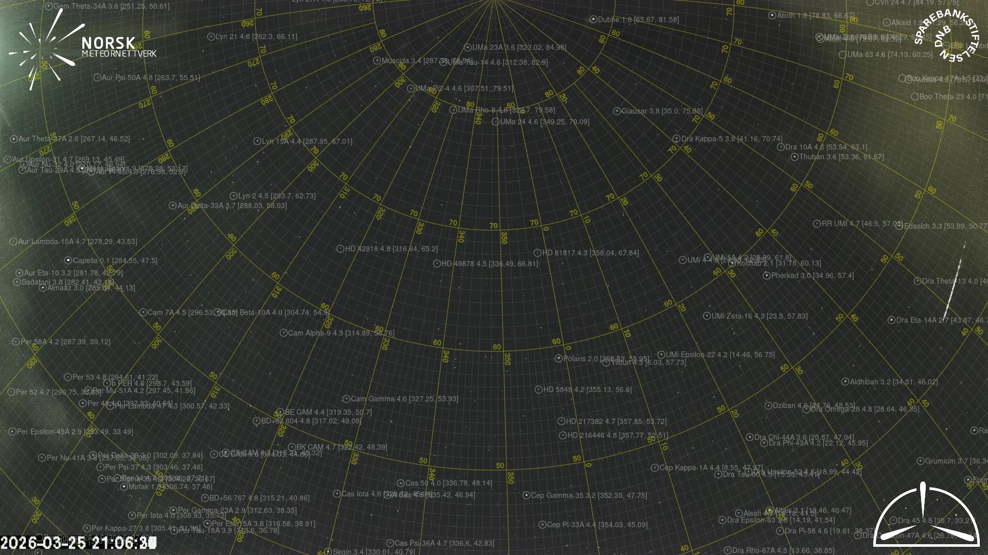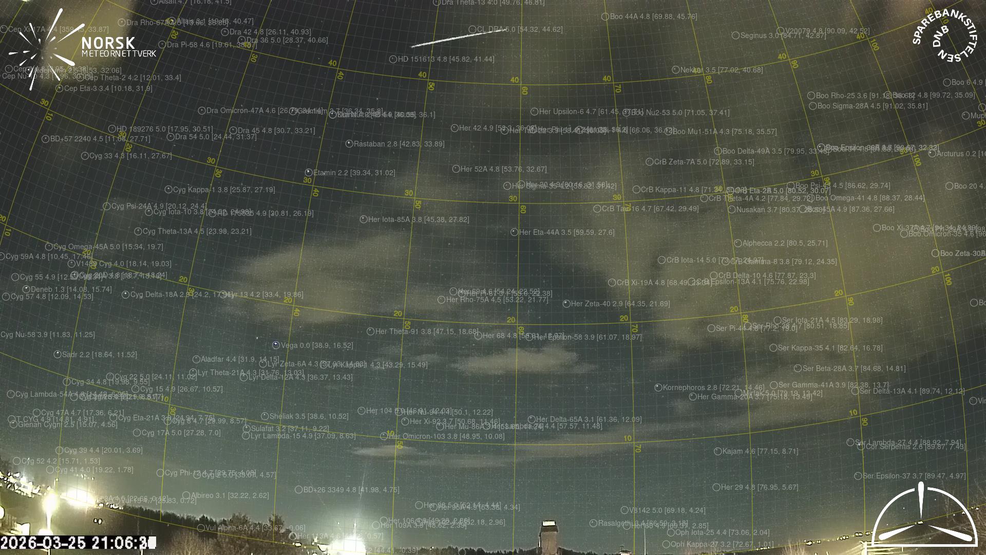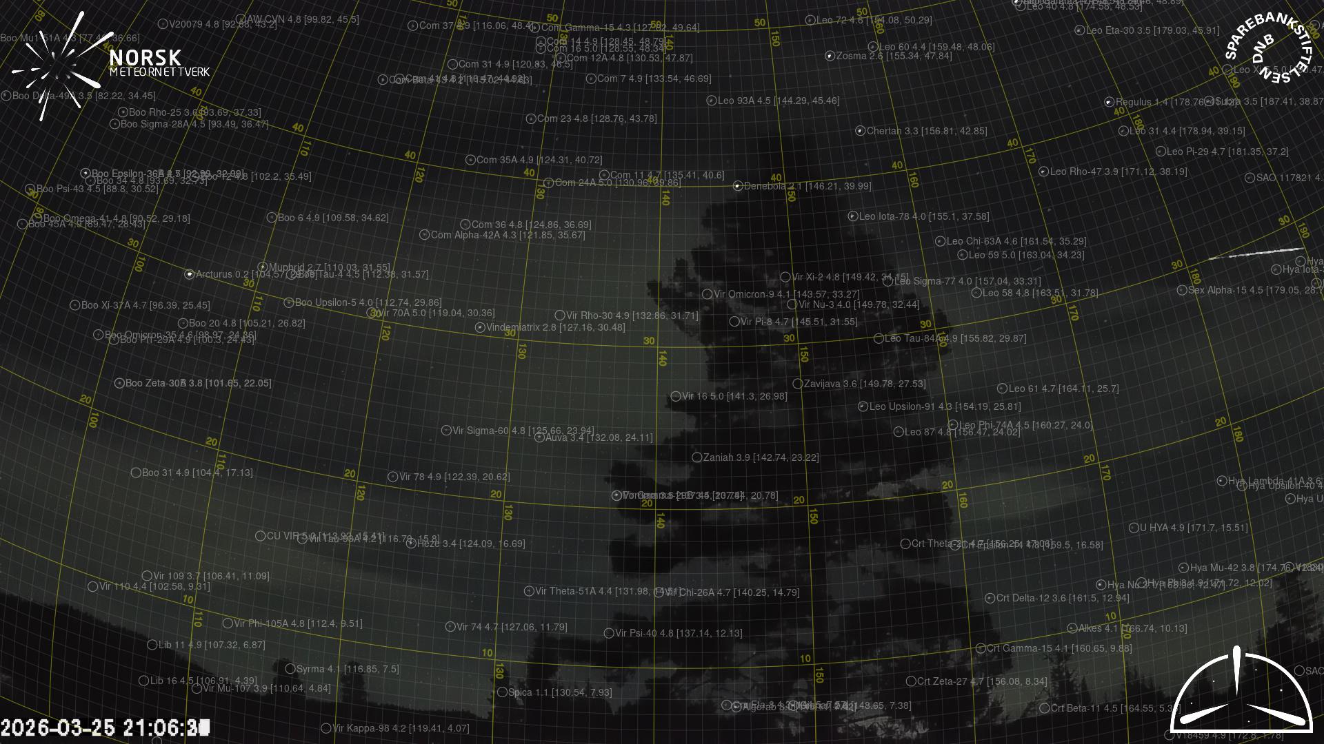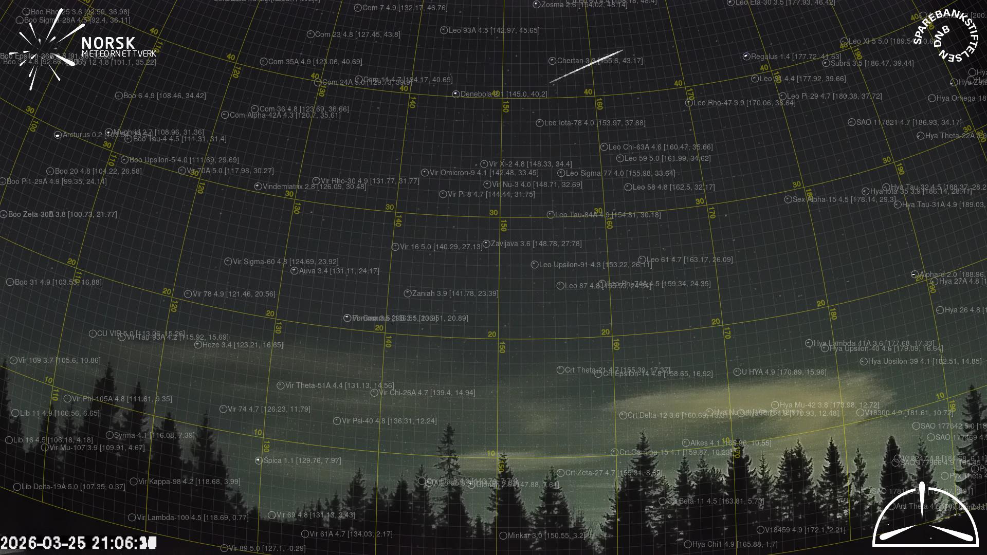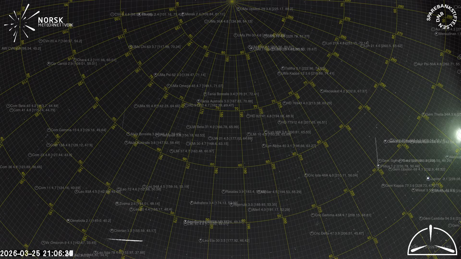 Mapa zobrazuje dráhy meteoru. Světlejší čáry ukazují směry od pozorovacích stanic při objevení se meteoru a tmavší čáry, kde byl naposledy viděn. Modrá šipka značí viditelnou dráhu meteoru.