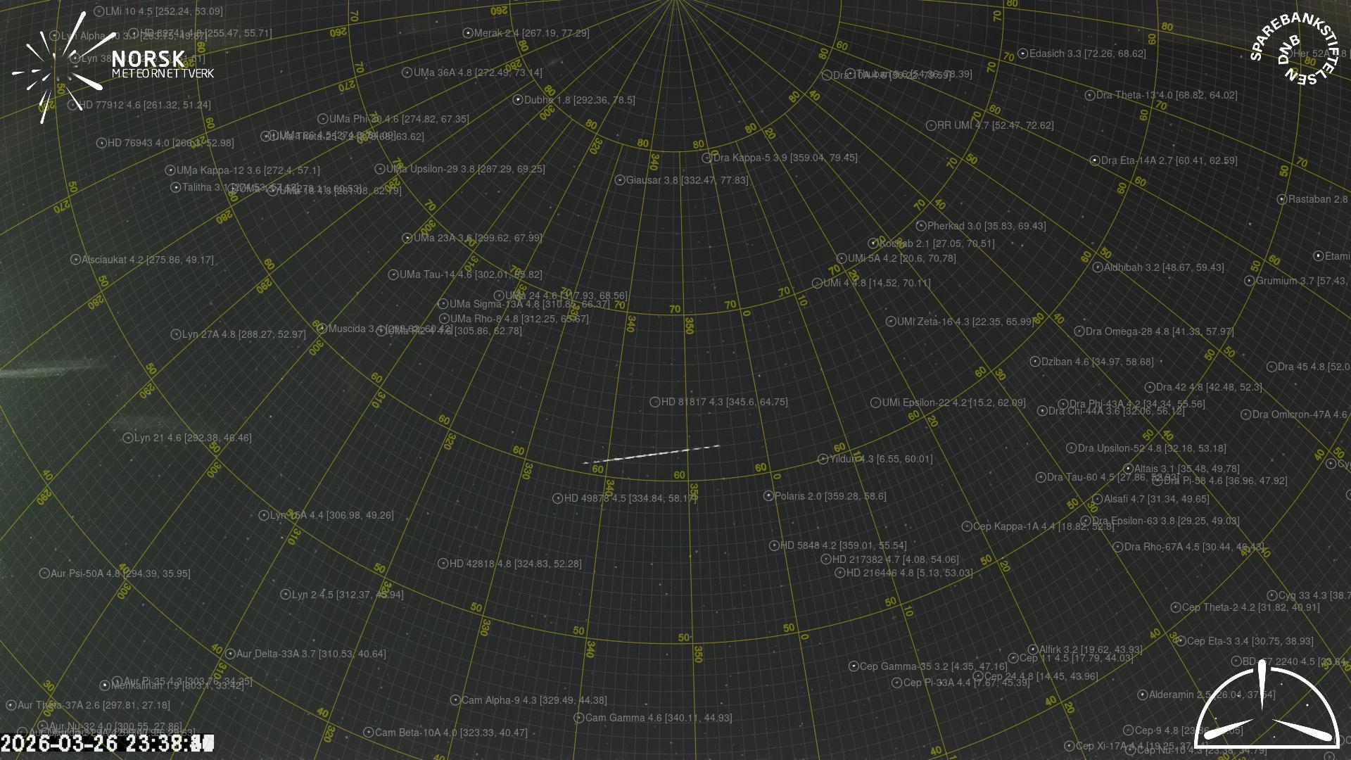 Meteor, poloha: Hvittingfoss 2026-03-26 23:38:43 UTC