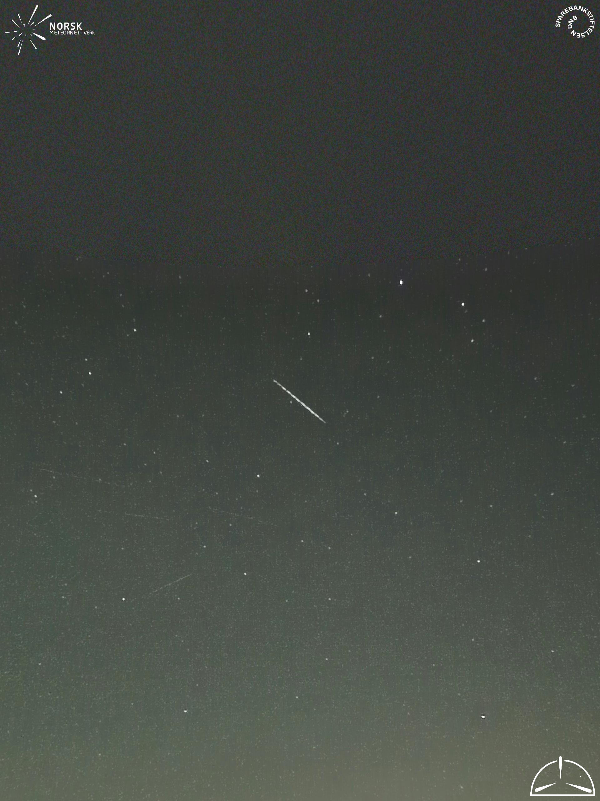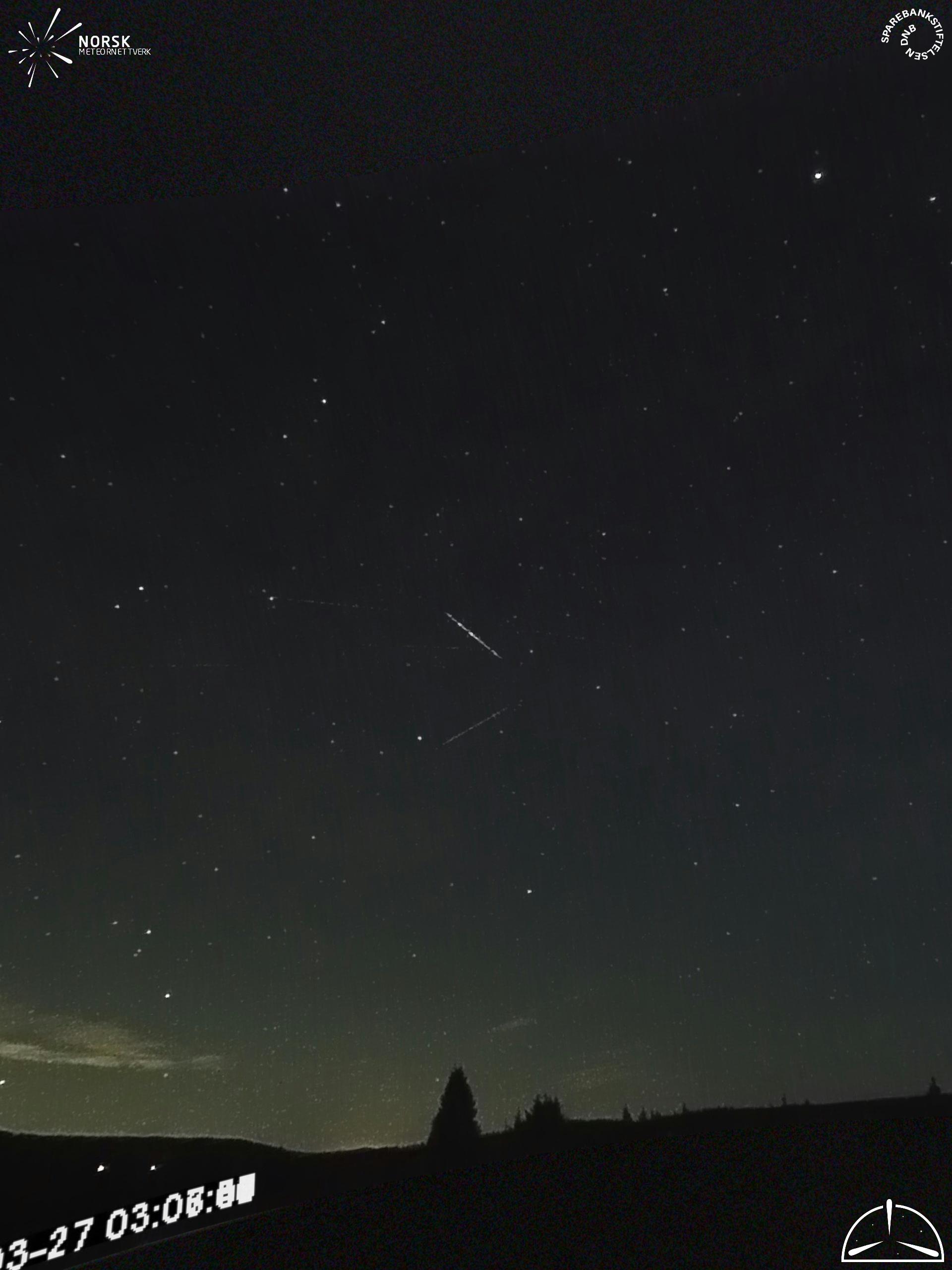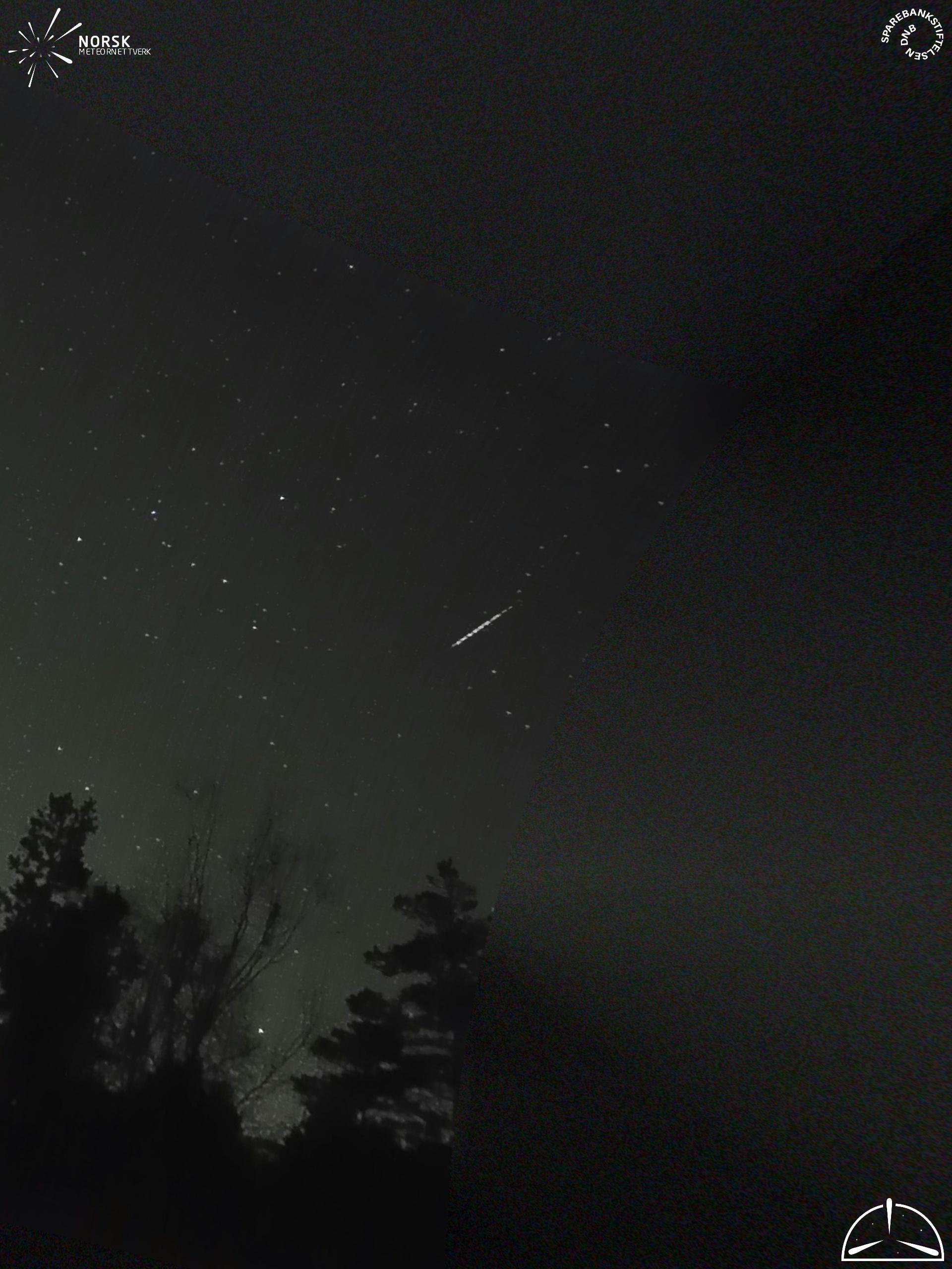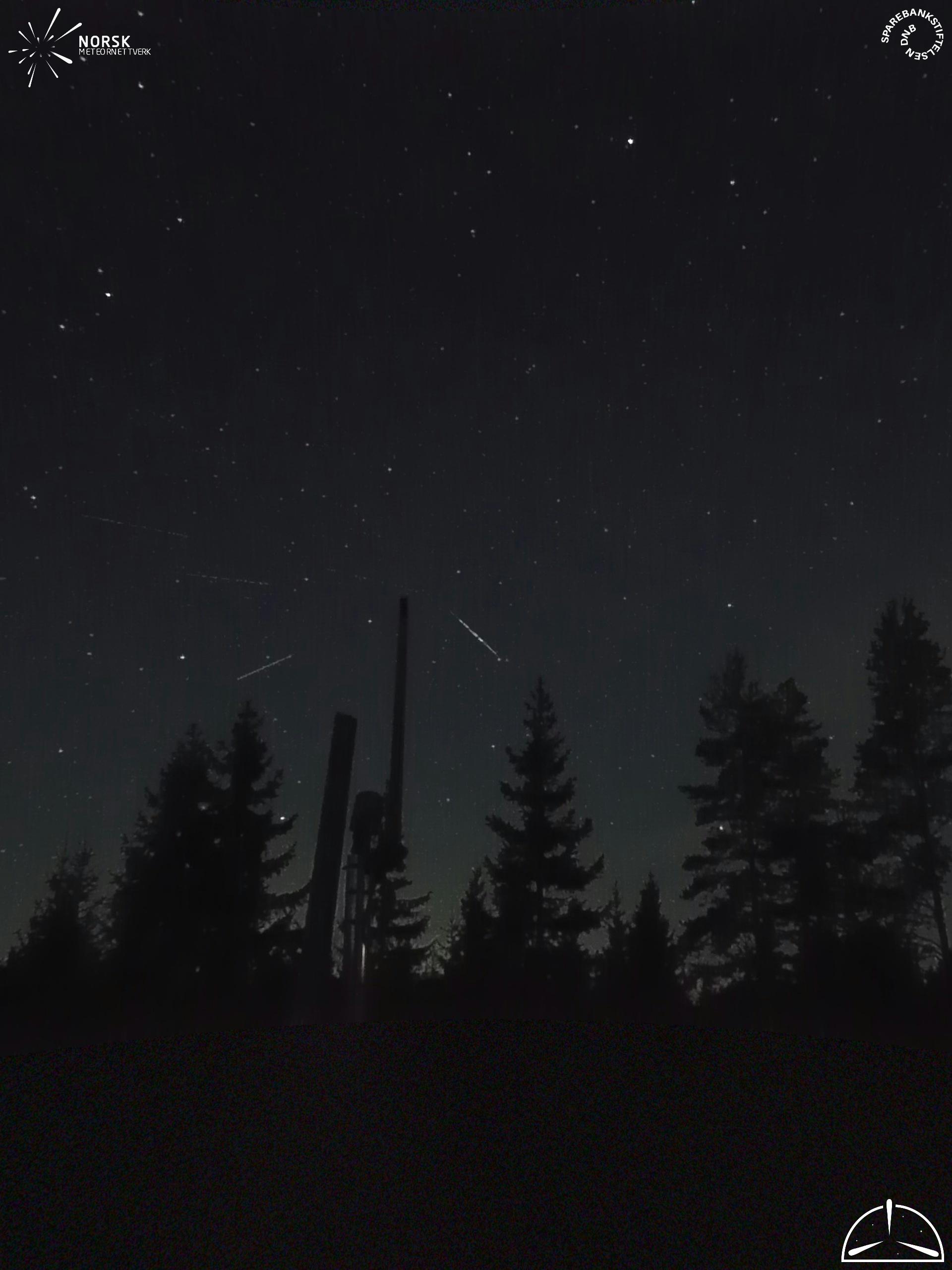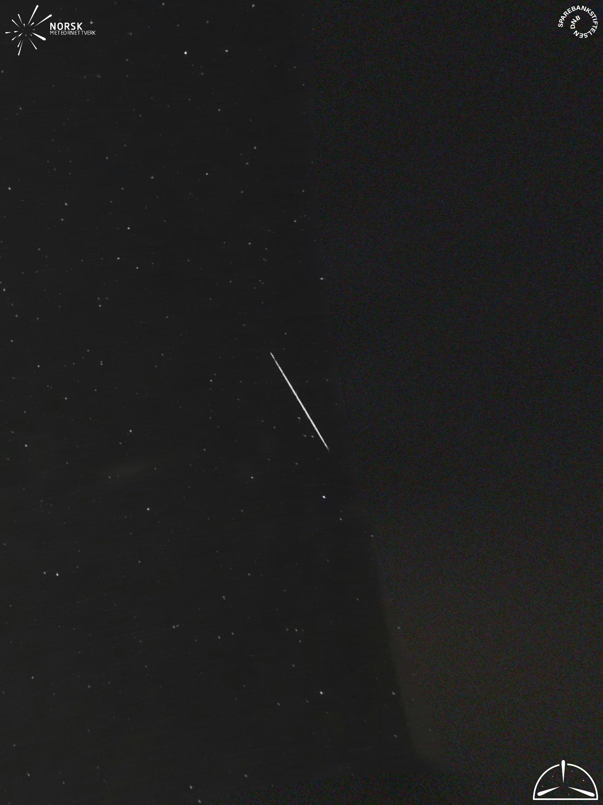 Mapa zobrazuje dráhy meteoru. Světlejší čáry ukazují směry od pozorovacích stanic při objevení se meteoru a tmavší čáry, kde byl naposledy viděn. Modrá šipka značí viditelnou dráhu meteoru.