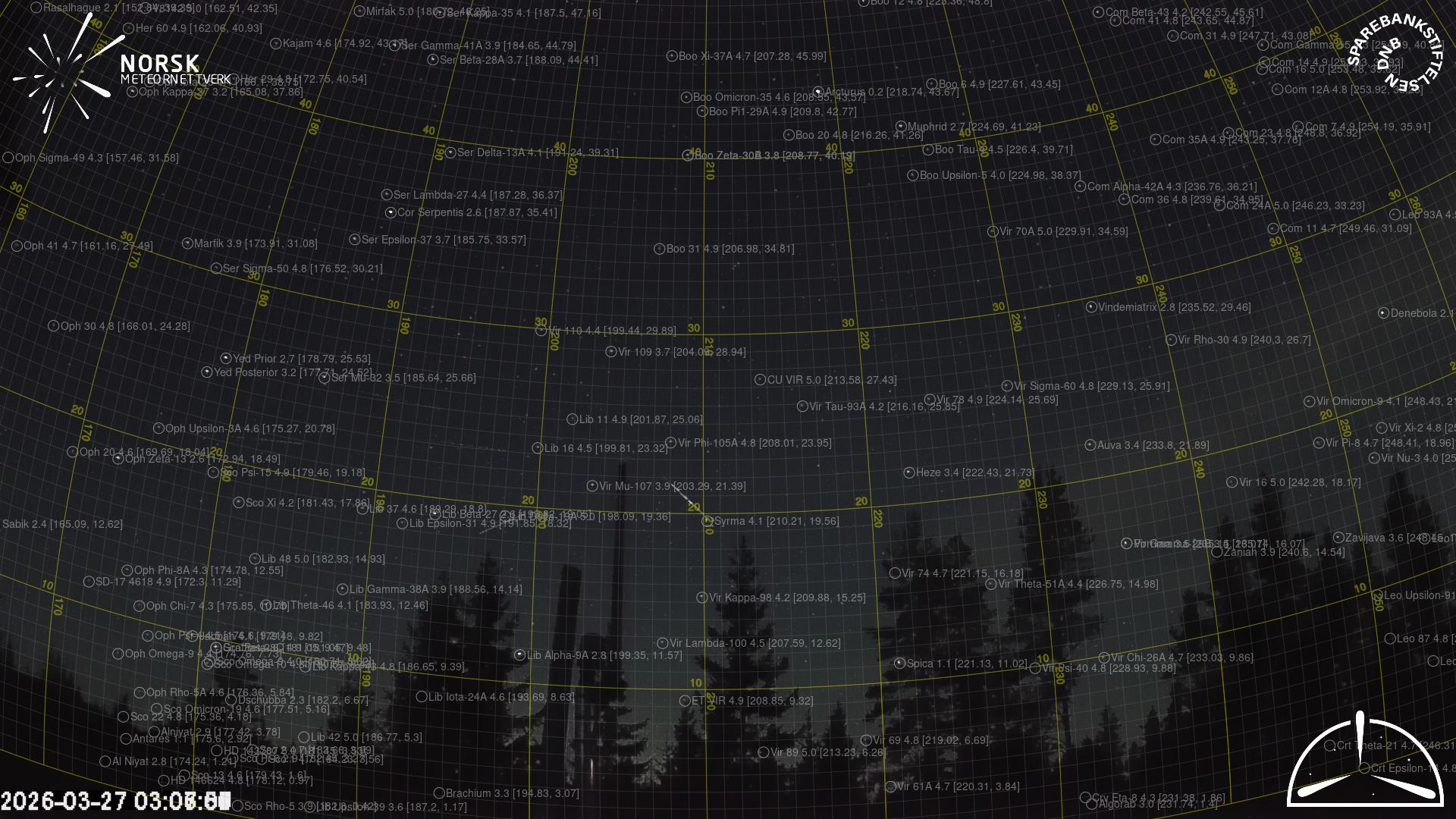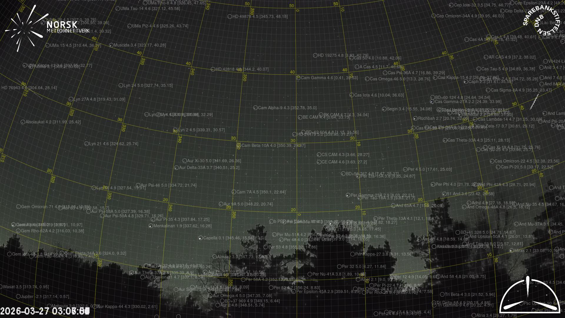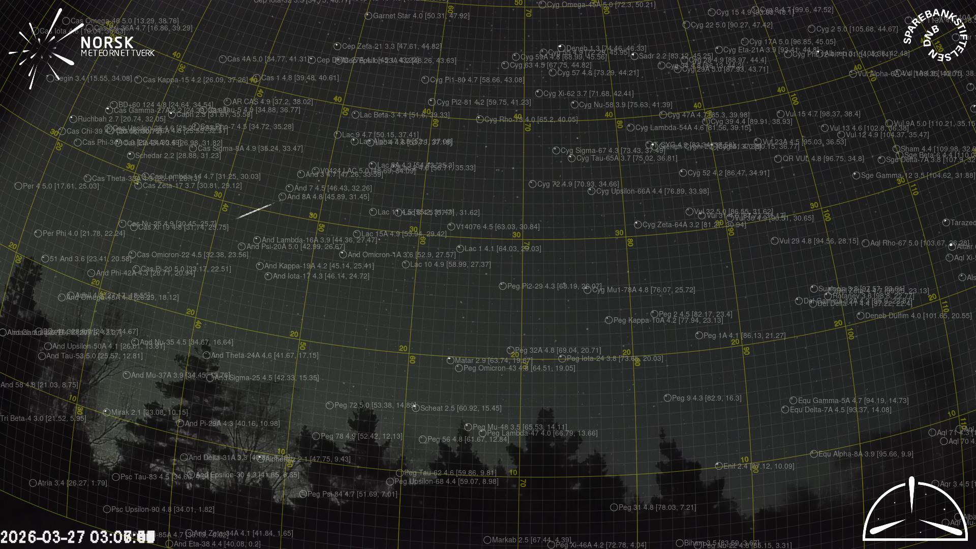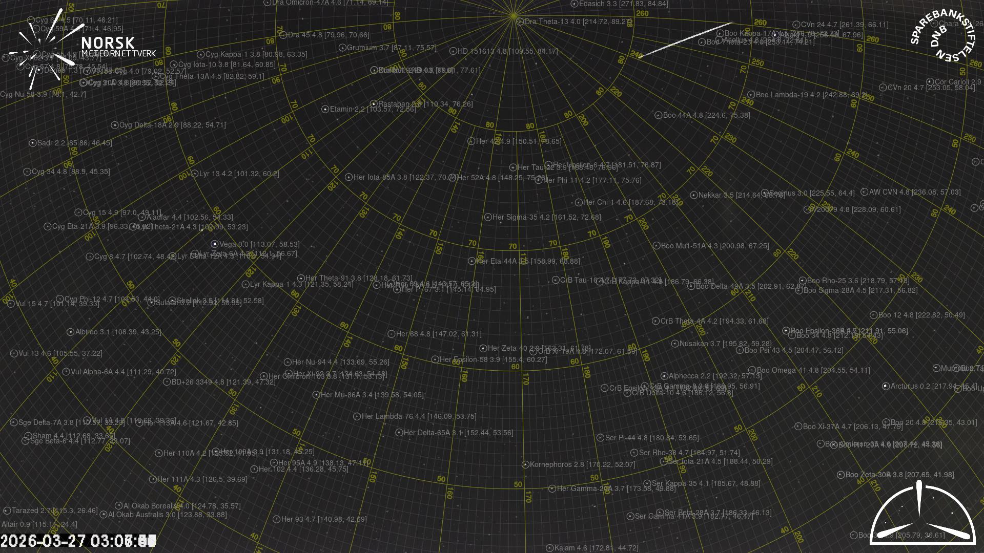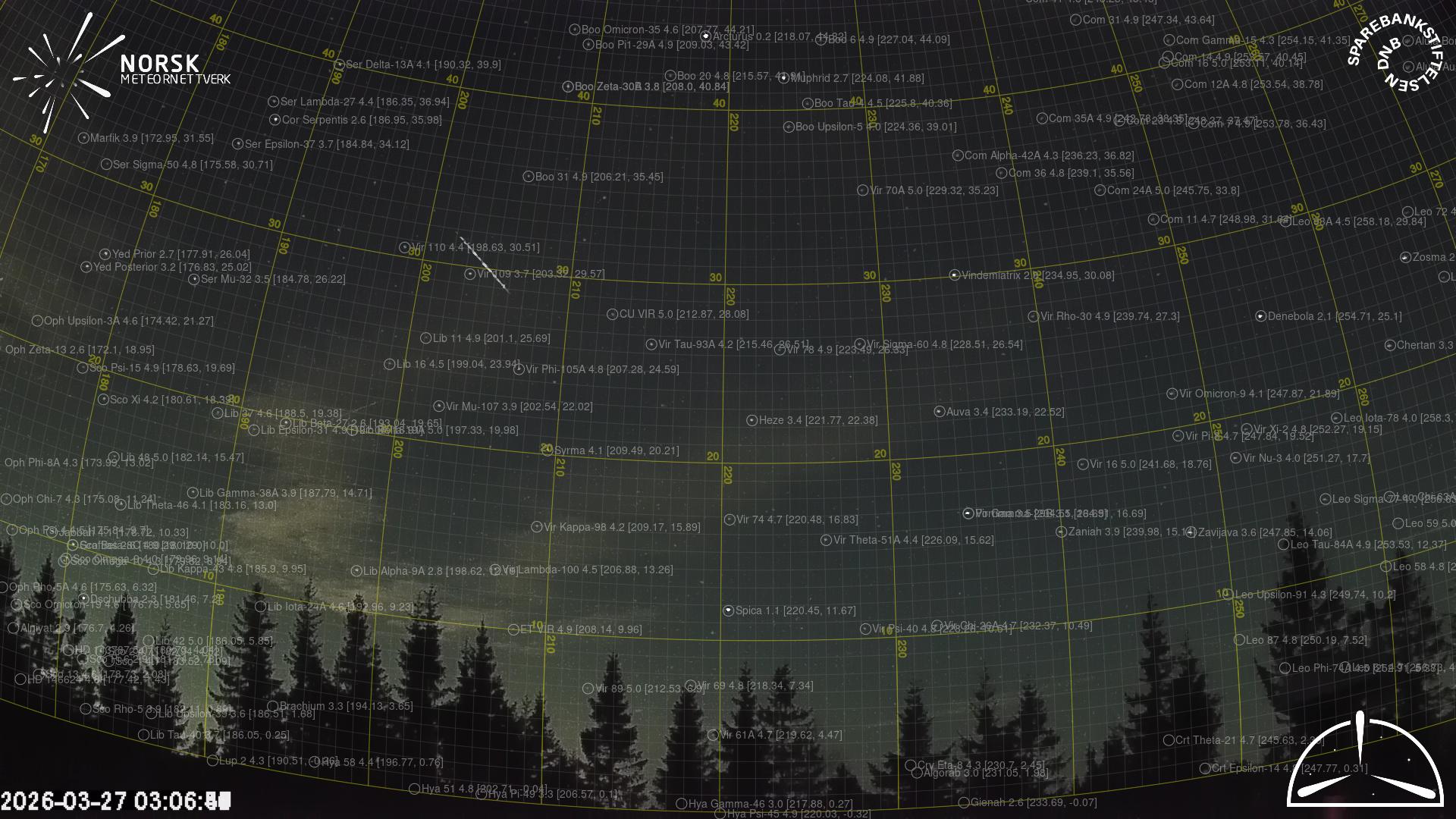Mapa zobrazuje dráhy meteoru. Světlejší čáry ukazují směry od pozorovacích stanic při objevení se meteoru a tmavší čáry, kde byl naposledy viděn. Modrá šipka značí viditelnou dráhu meteoru.