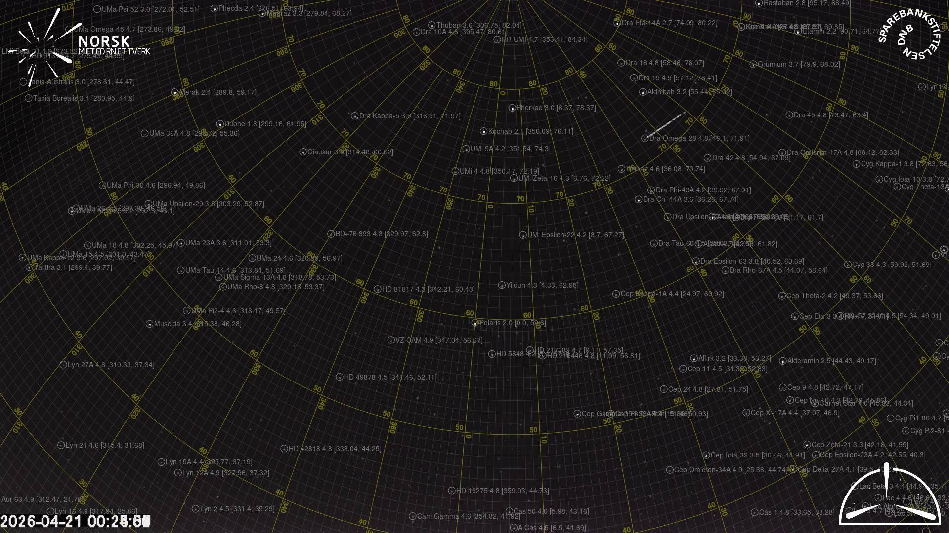 Meteor over Hurdal 2026-04-21 00:25:00 UTC