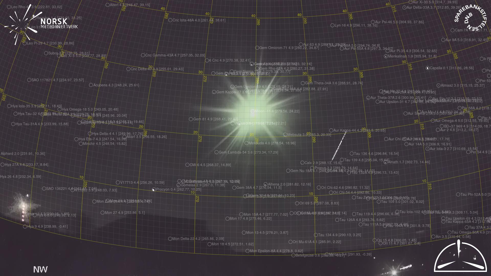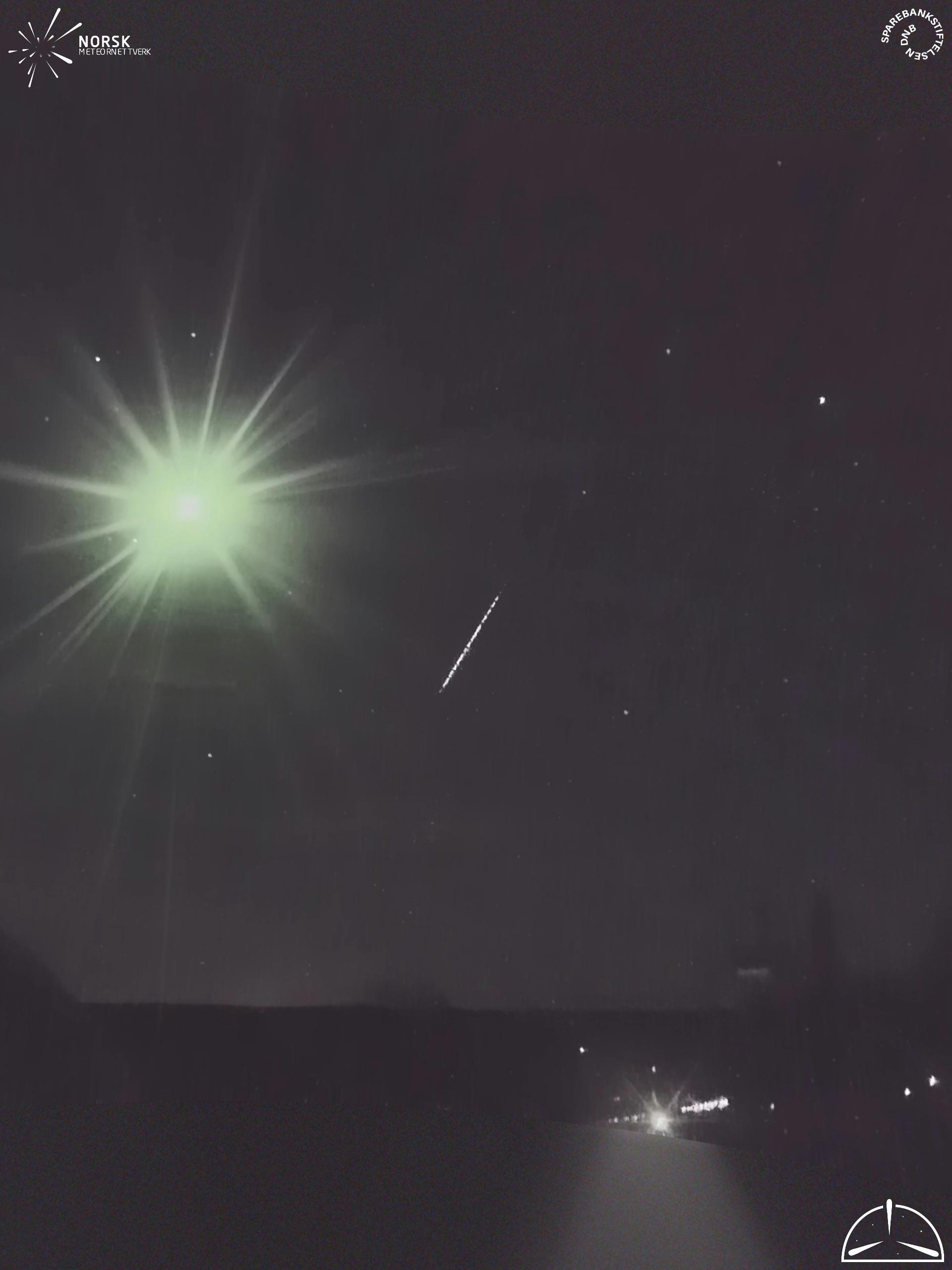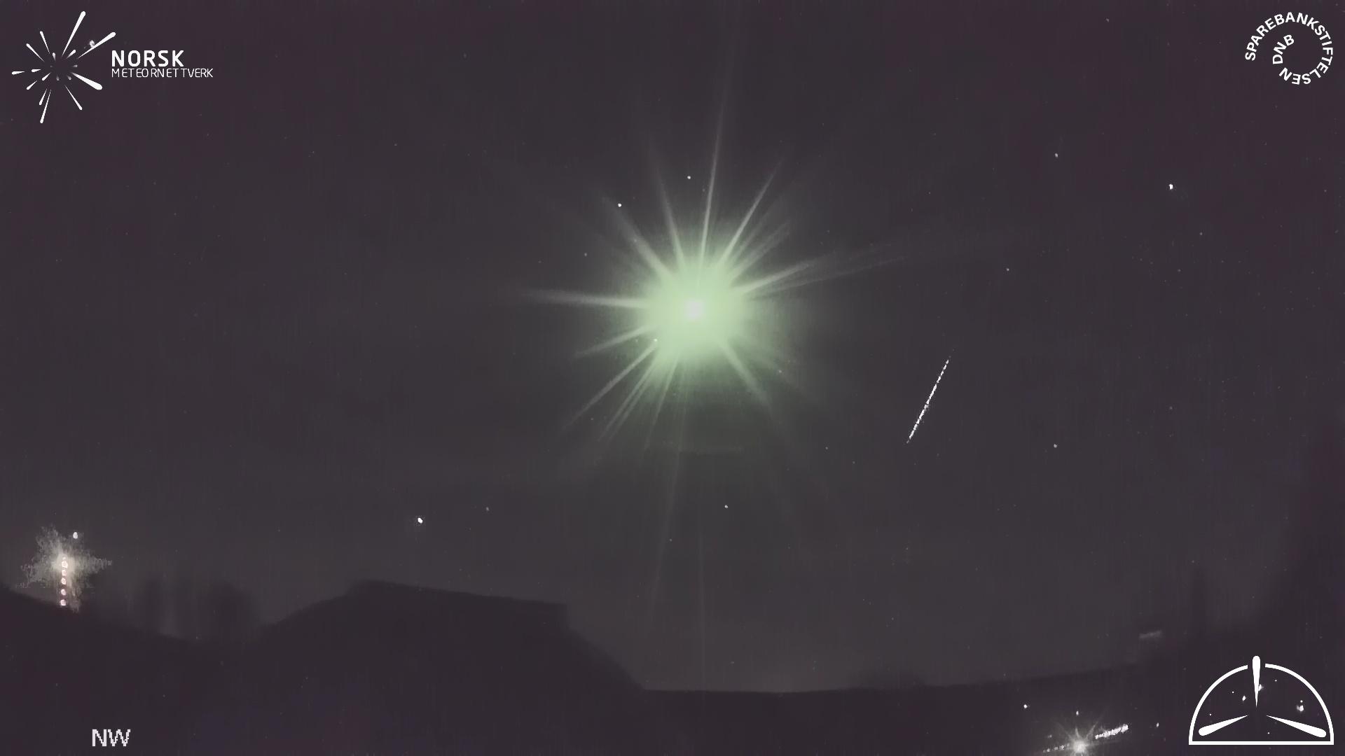 Mapa zobrazuje dráhy meteoru. SvÄ›tlejšà čáry ukazujĂ smÄ›ry od pozorovacĂch stanic pĹ™i objevenĂ se meteoru a tmavšà čáry, kde byl naposledy vidÄ›n. Modrá šipka znaÄŤĂ viditelnou dráhu meteoru.