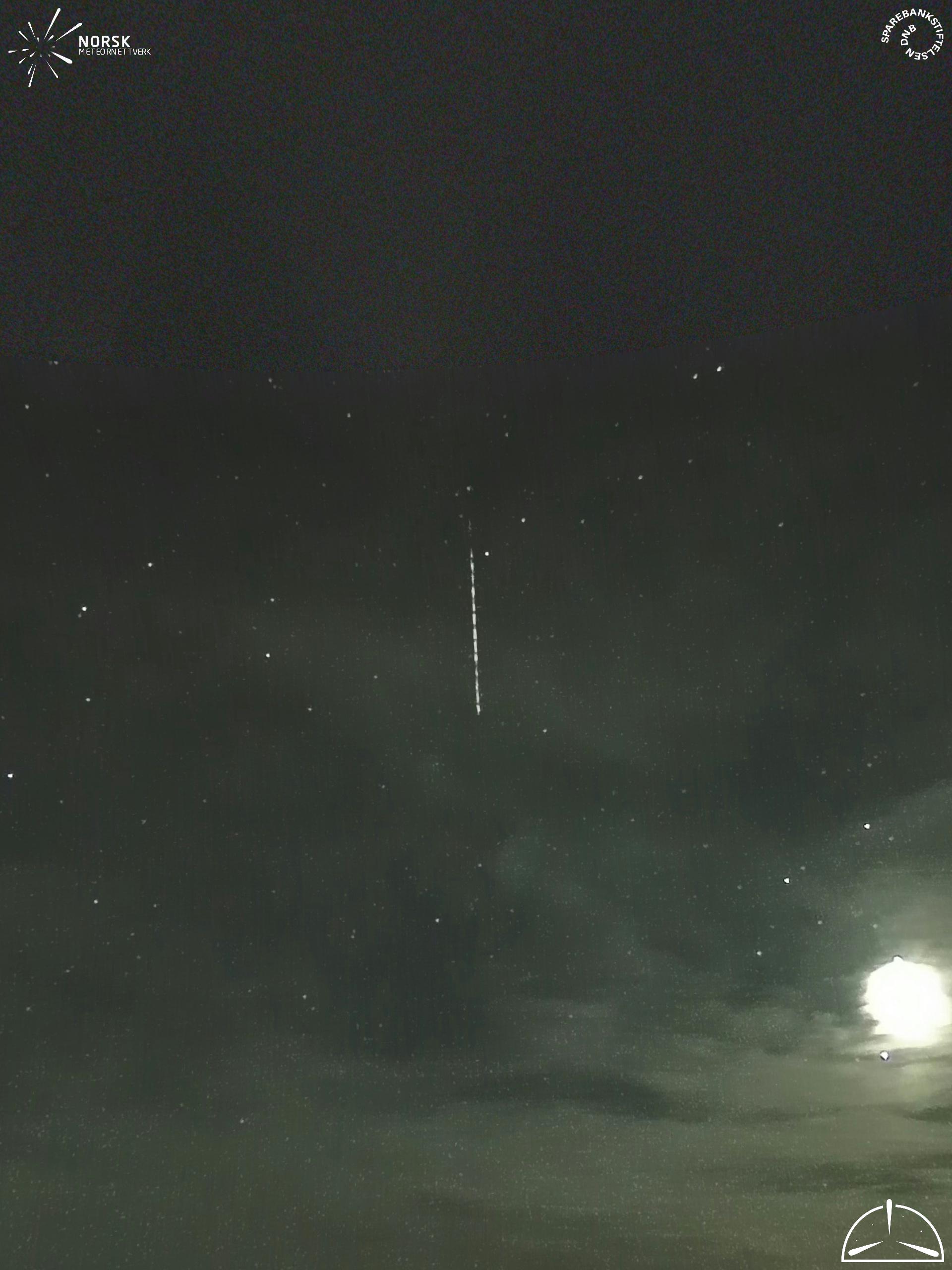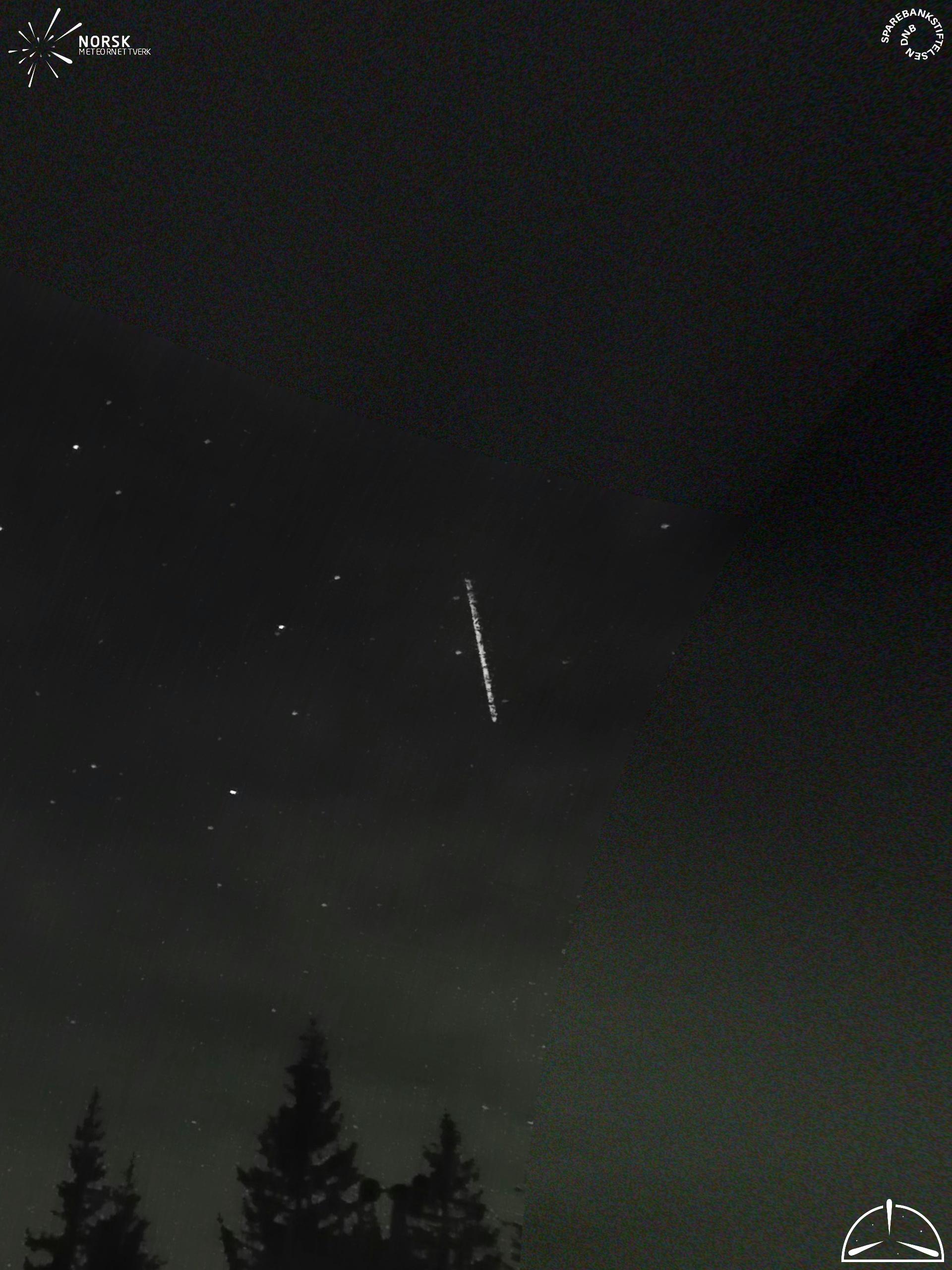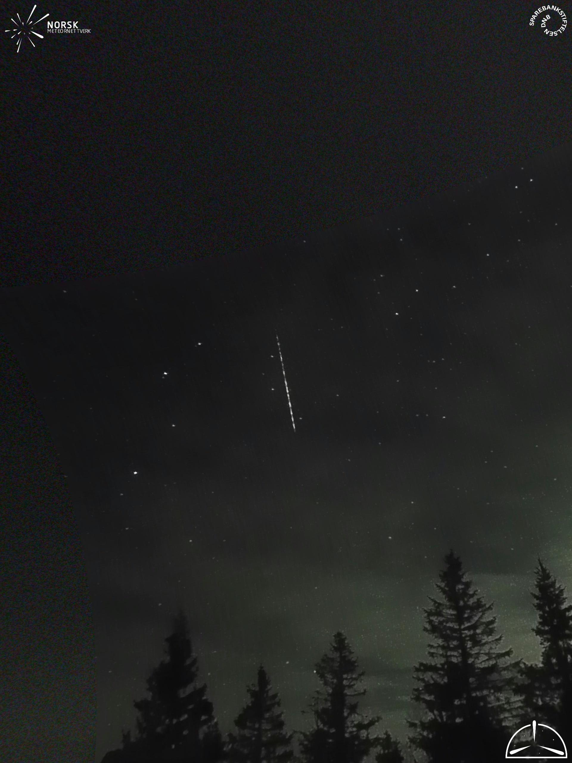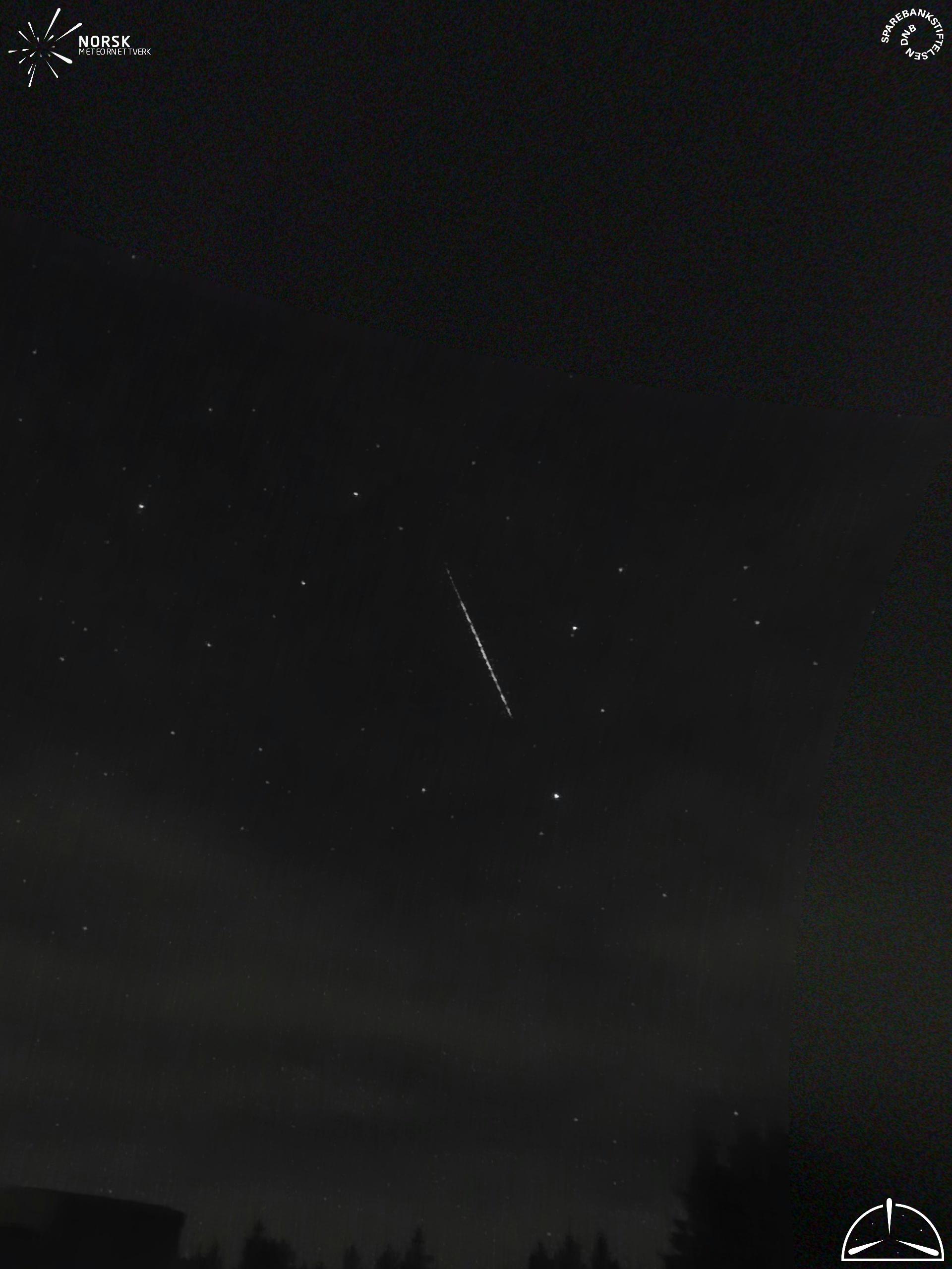 Kartet viser peilingene for meteoren. De lysere linjene viser retningene fra observasjonsstedene for meteorens tilsynekomst, og de mørkere linjene viser hvor den sist kunne sees. Den blå pila viser meteorens synlige ferd.