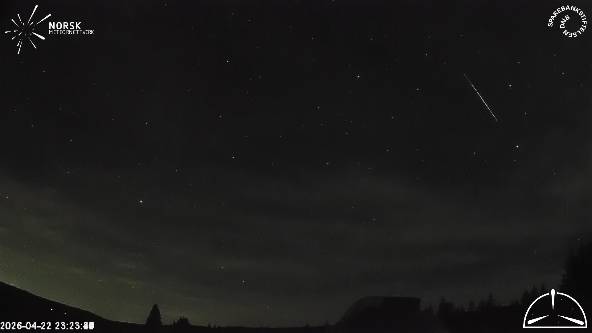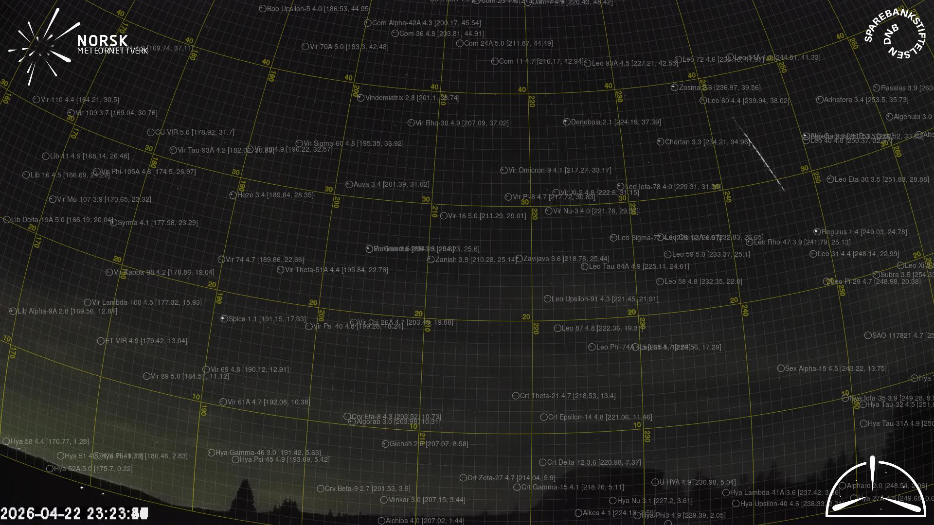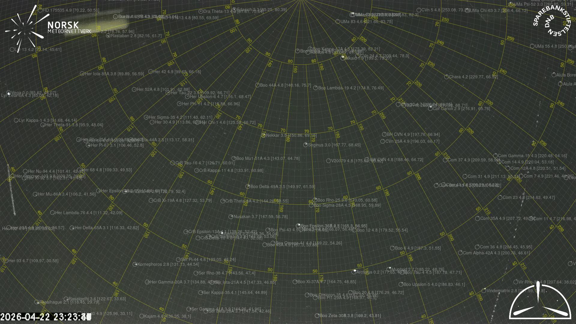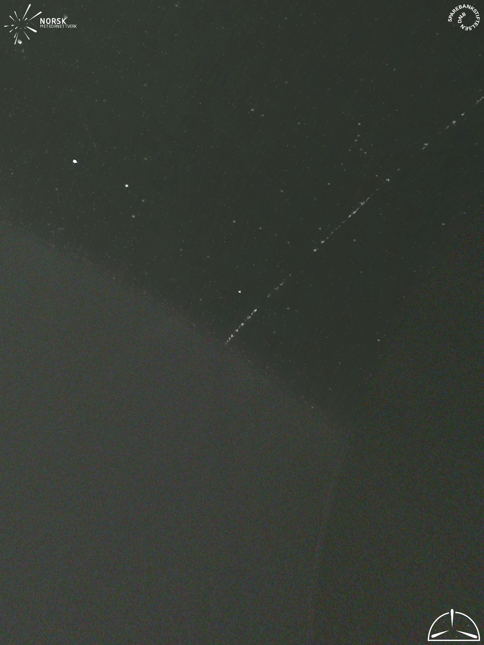 Kartet viser peilingene for meteoren. De lysere linjene viser retningene fra observasjonsstedene for meteorens tilsynekomst, og de mørkere linjene viser hvor den sist kunne sees. Den blå pila viser meteorens synlige ferd.