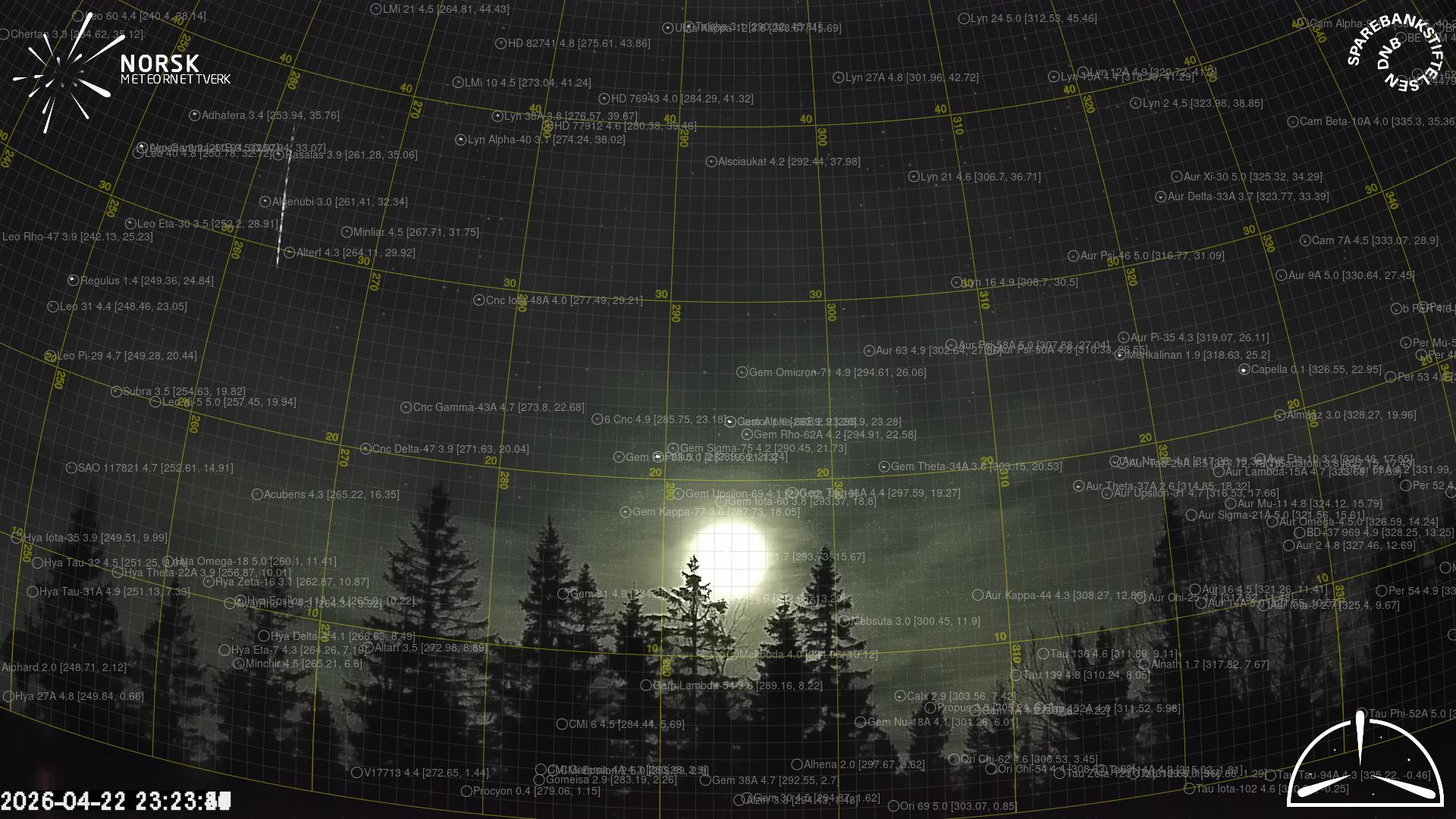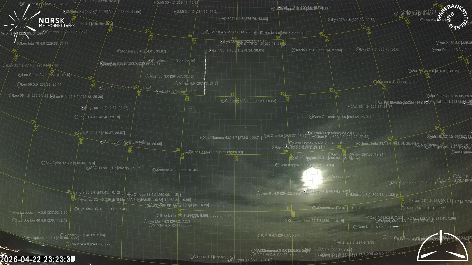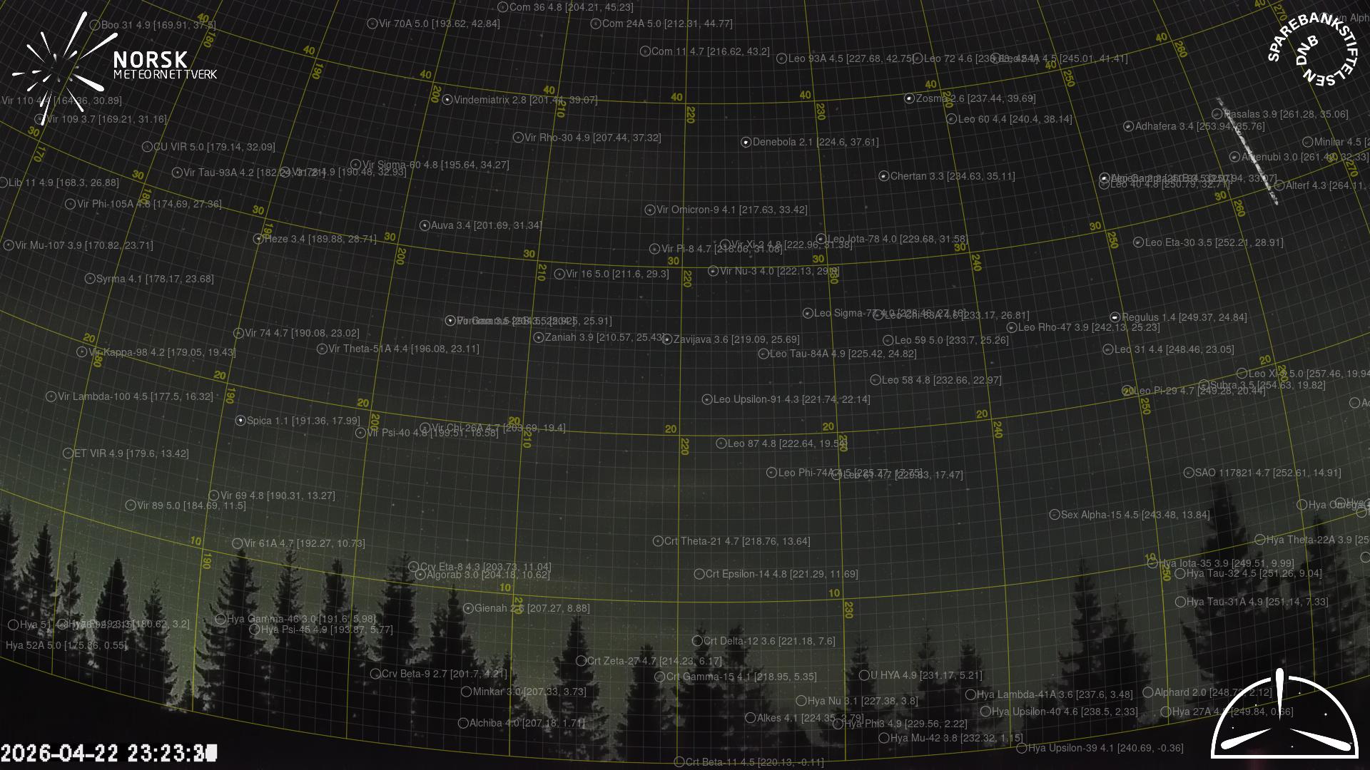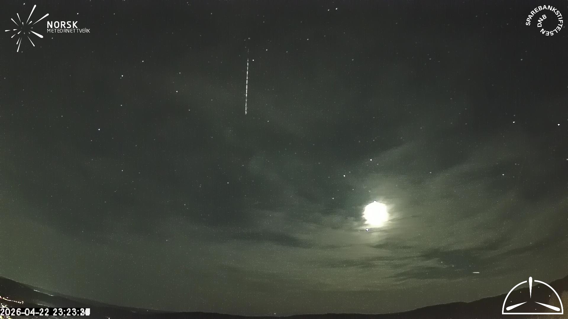 Kartet viser peilingene for meteoren. De lysere linjene viser retningene fra observasjonsstedene for meteorens tilsynekomst, og de mørkere linjene viser hvor den sist kunne sees. Den blå pila viser meteorens synlige ferd.