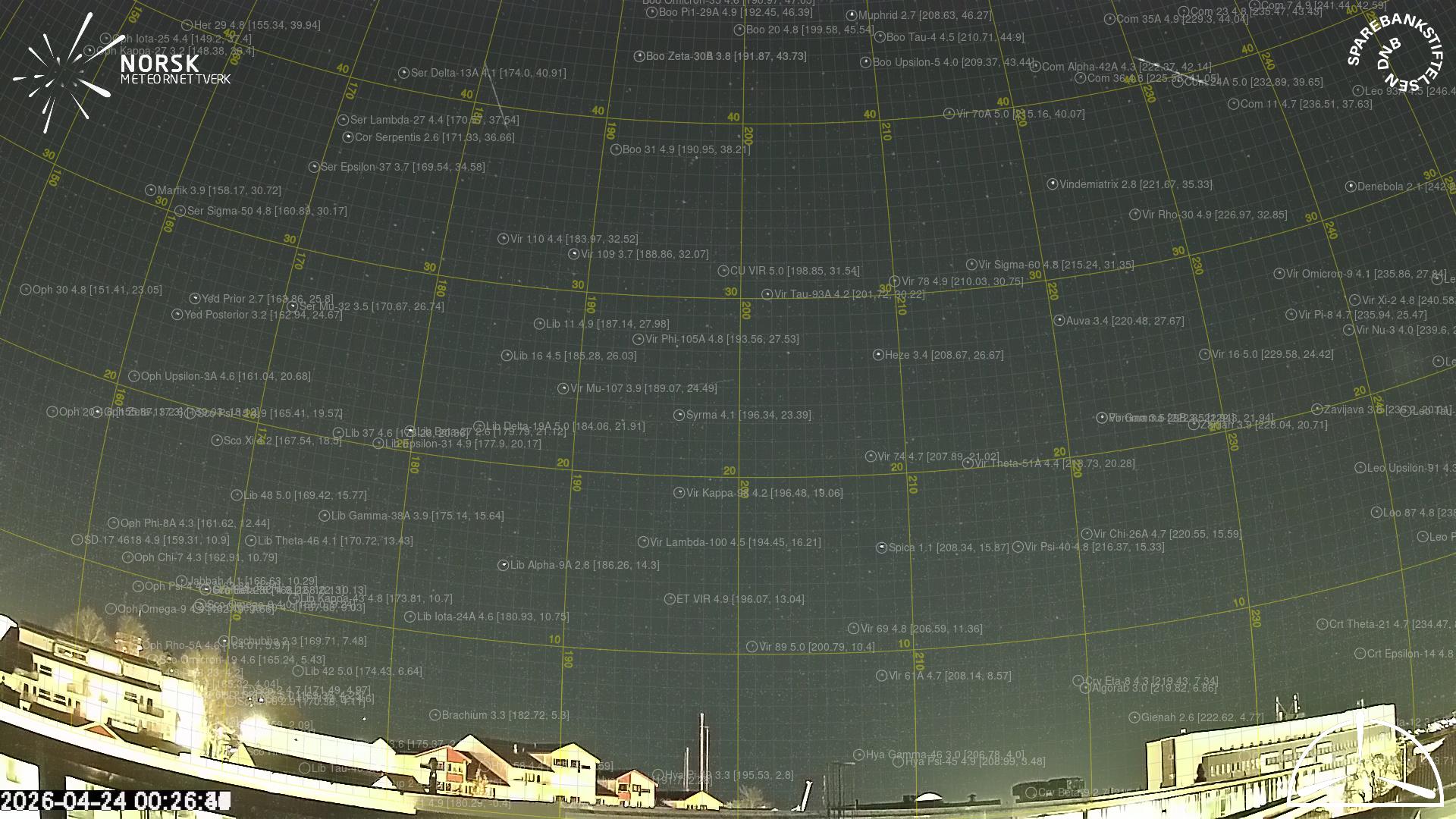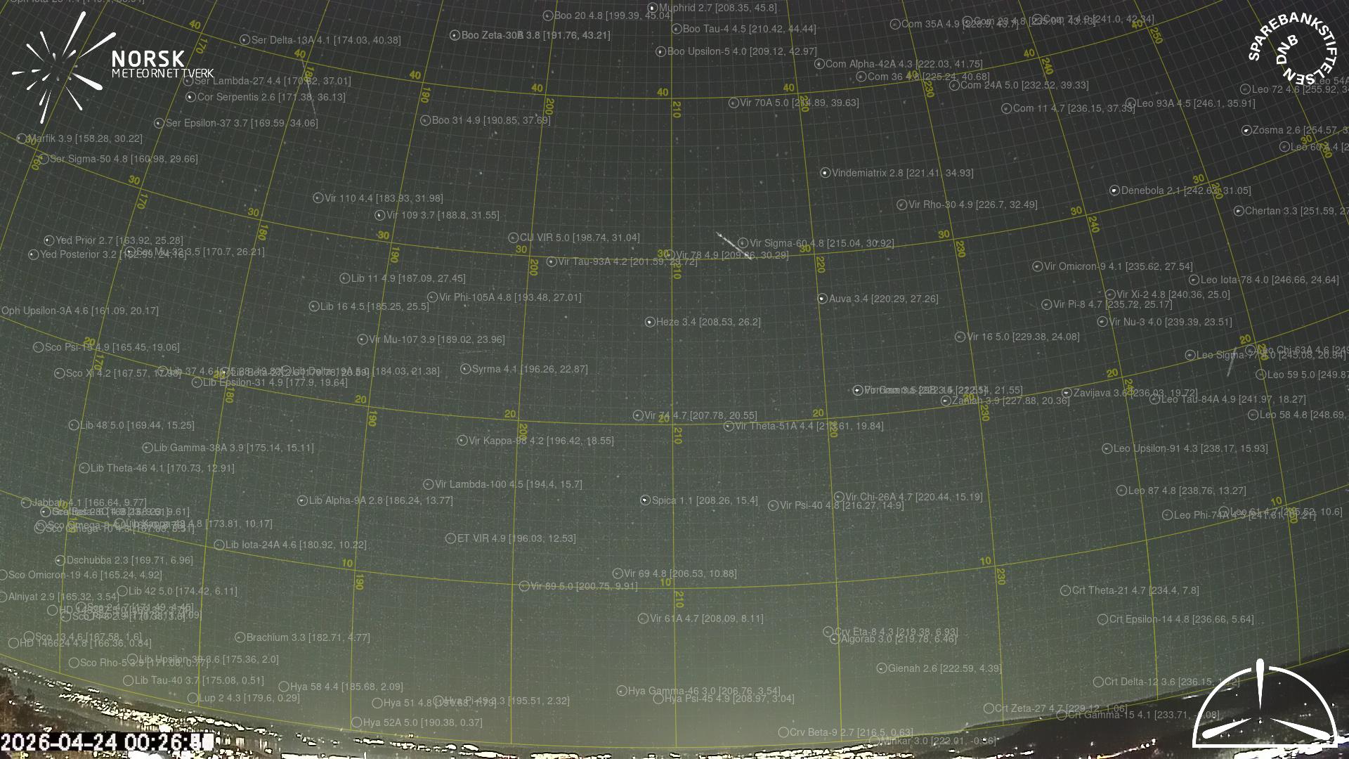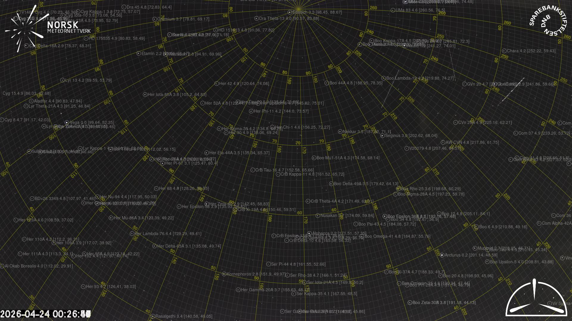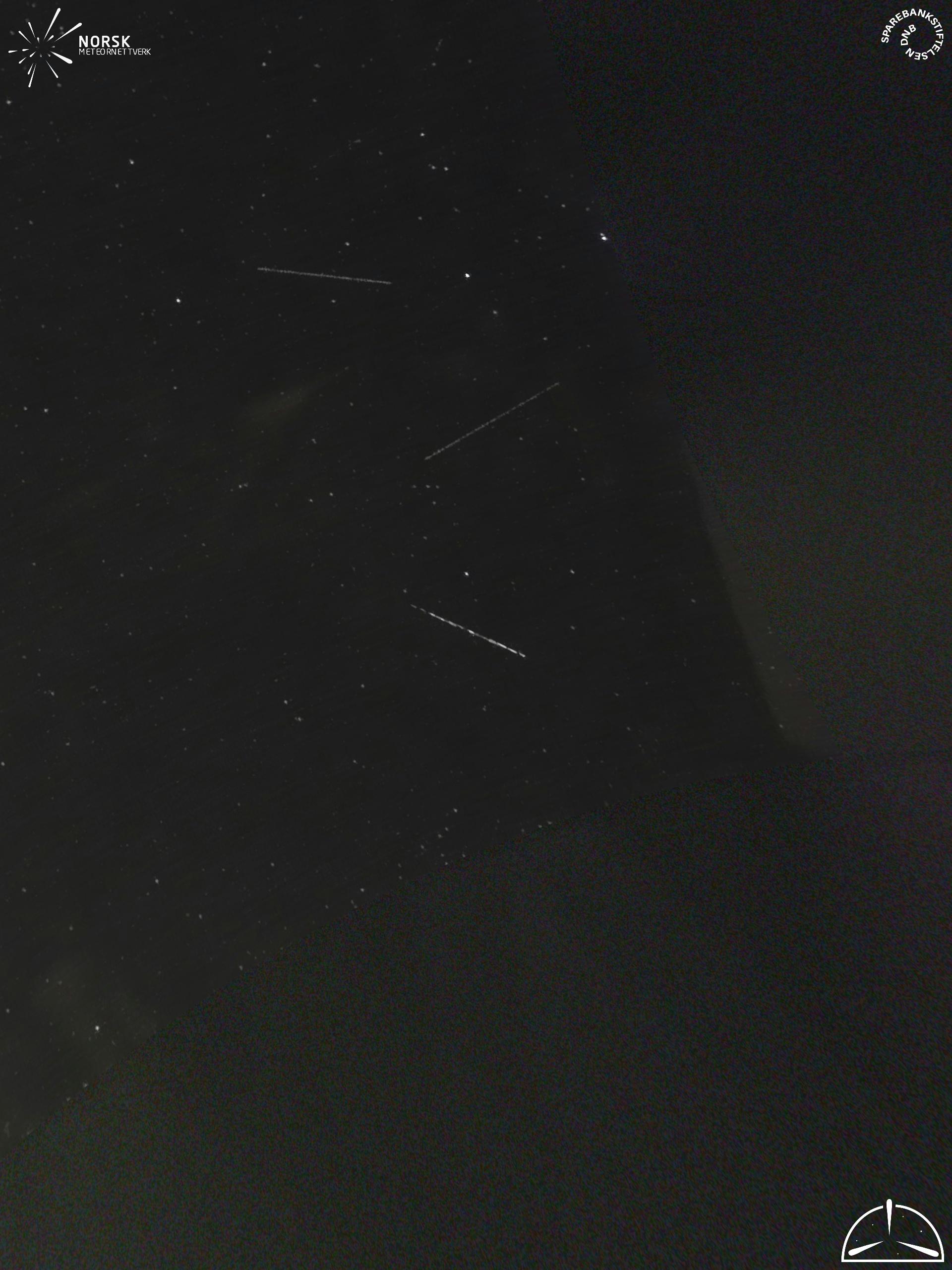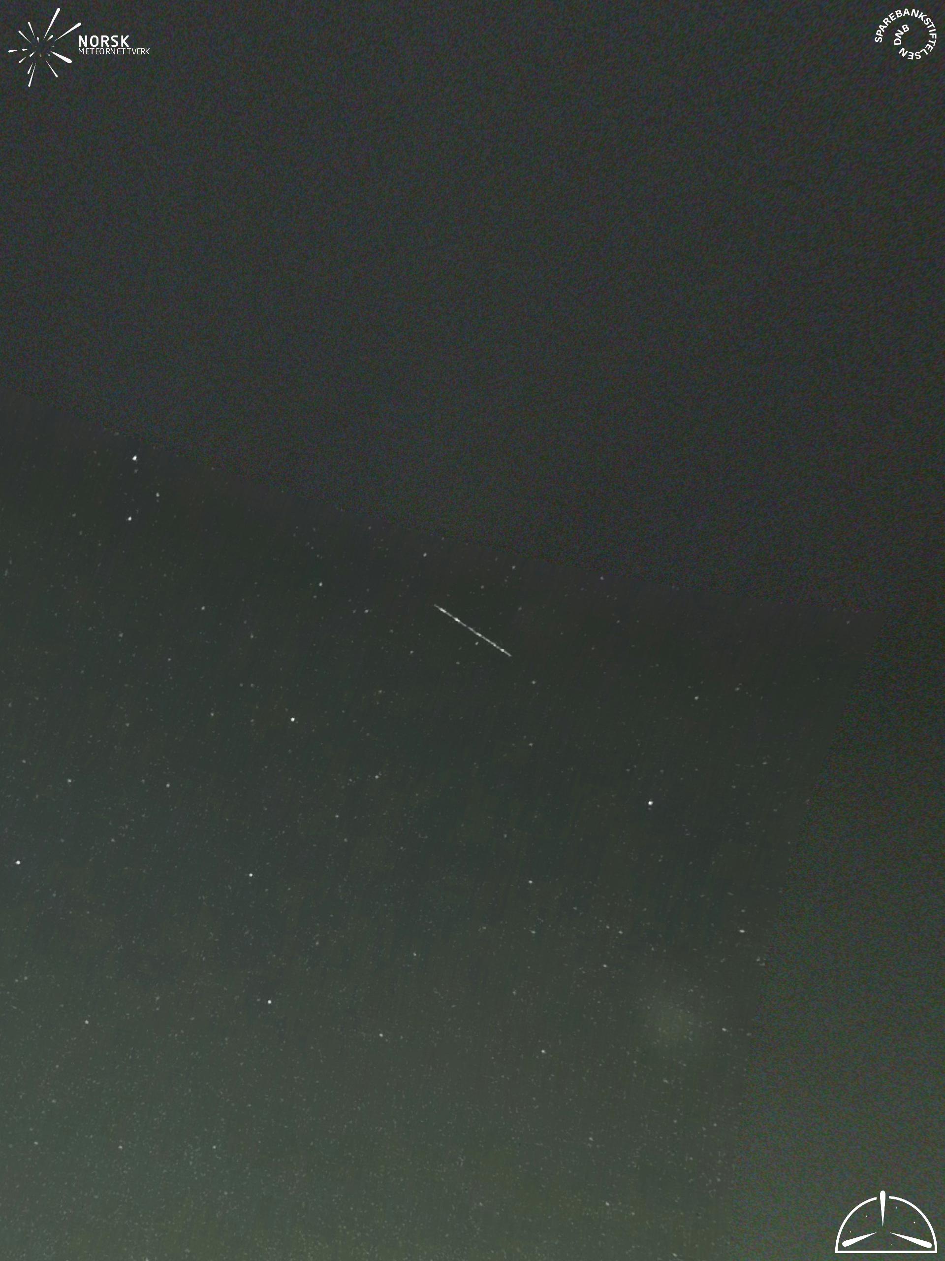 Kartet viser peilingene for meteoren. De lysere linjene viser retningene fra observasjonsstedene for meteorens tilsynekomst, og de mørkere linjene viser hvor den sist kunne sees. Den blå pila viser meteorens synlige ferd.