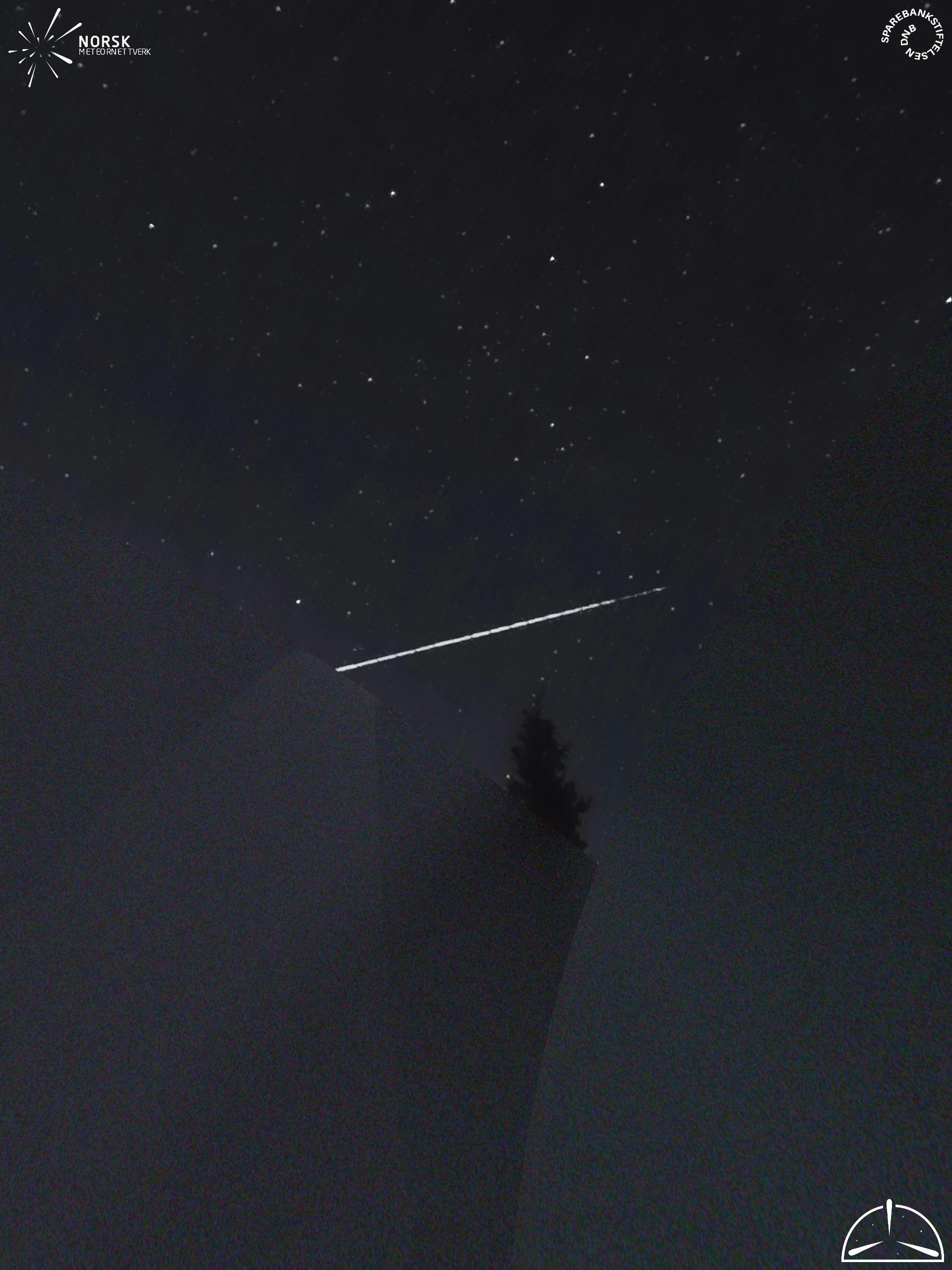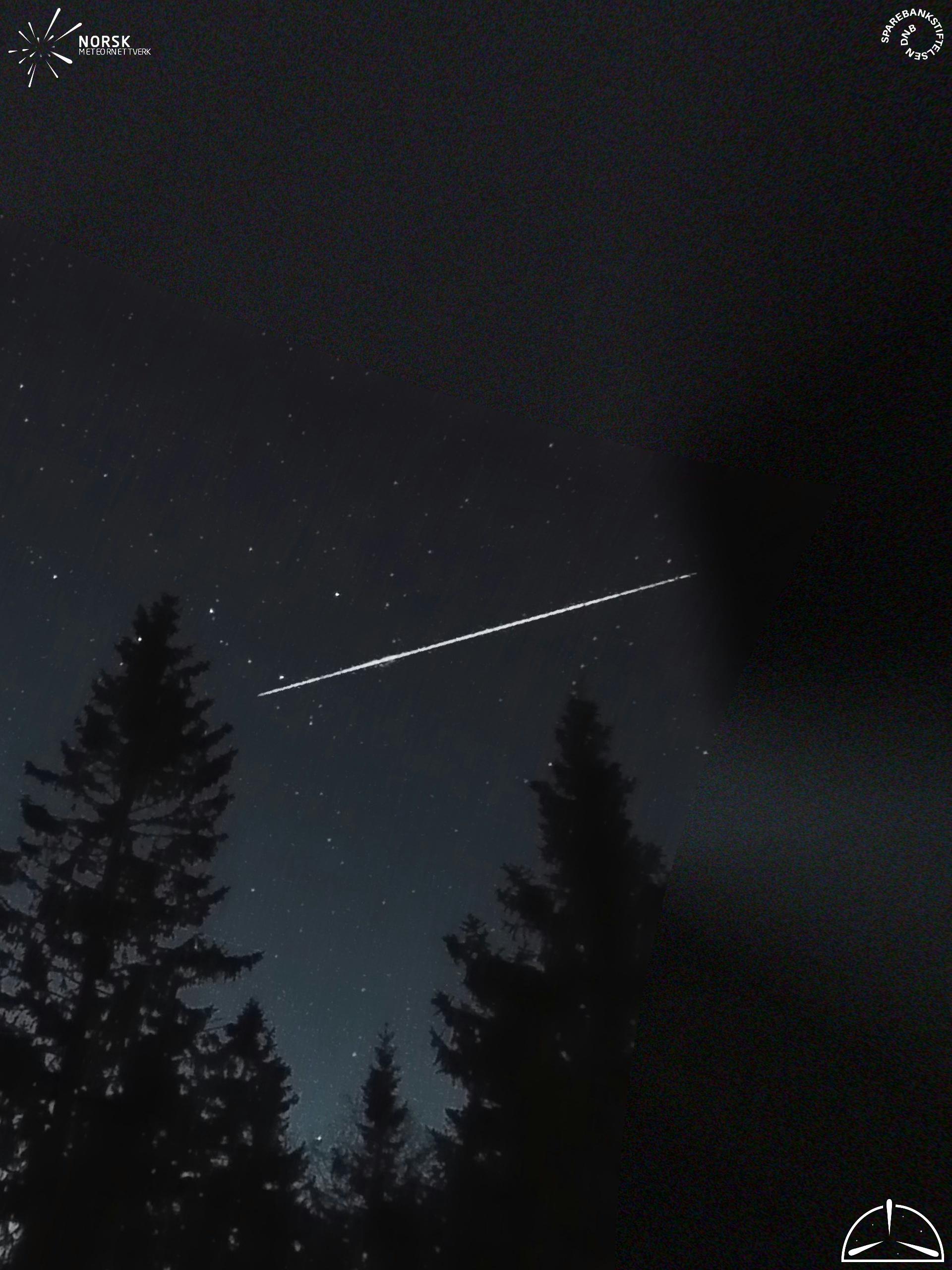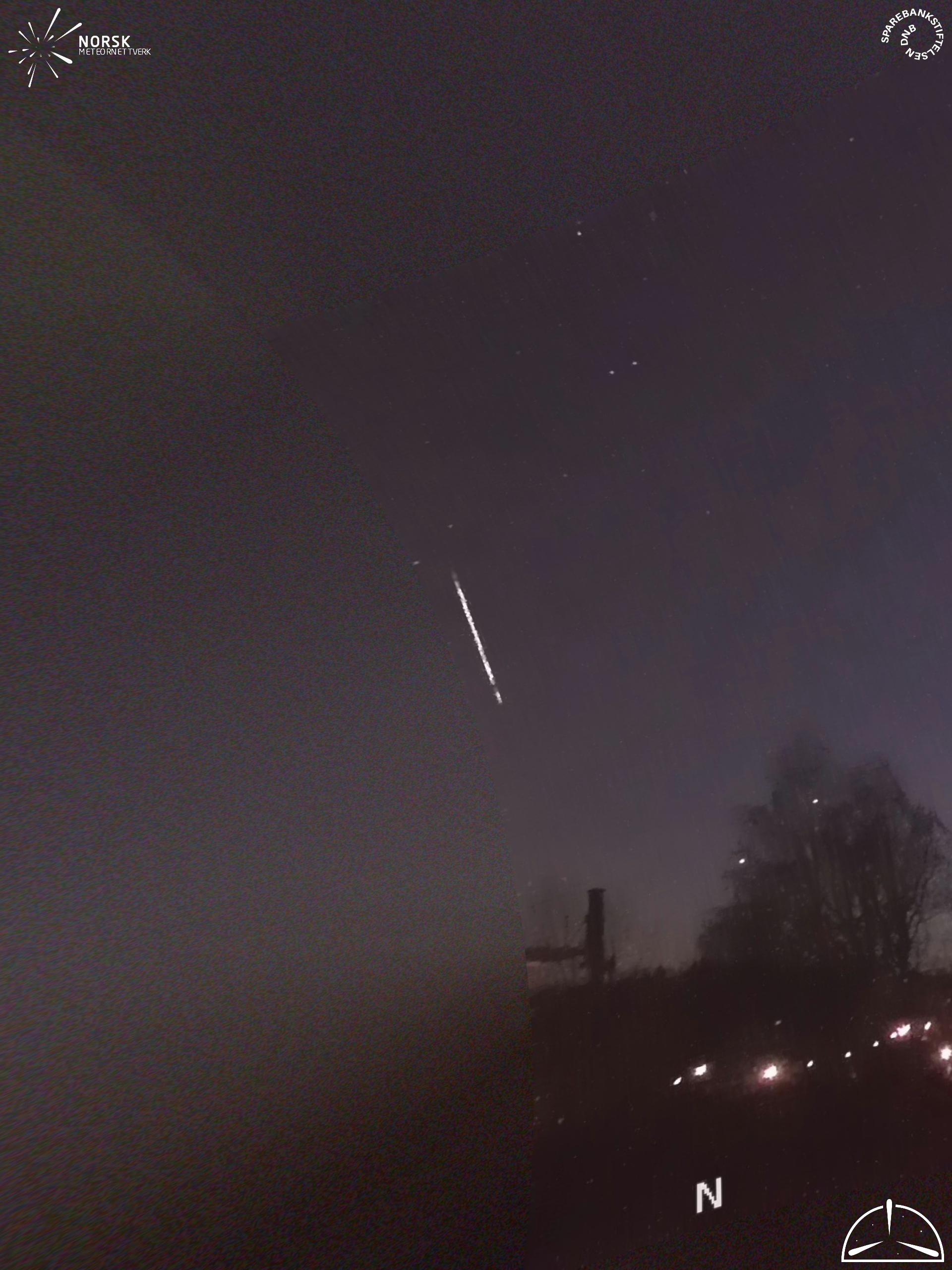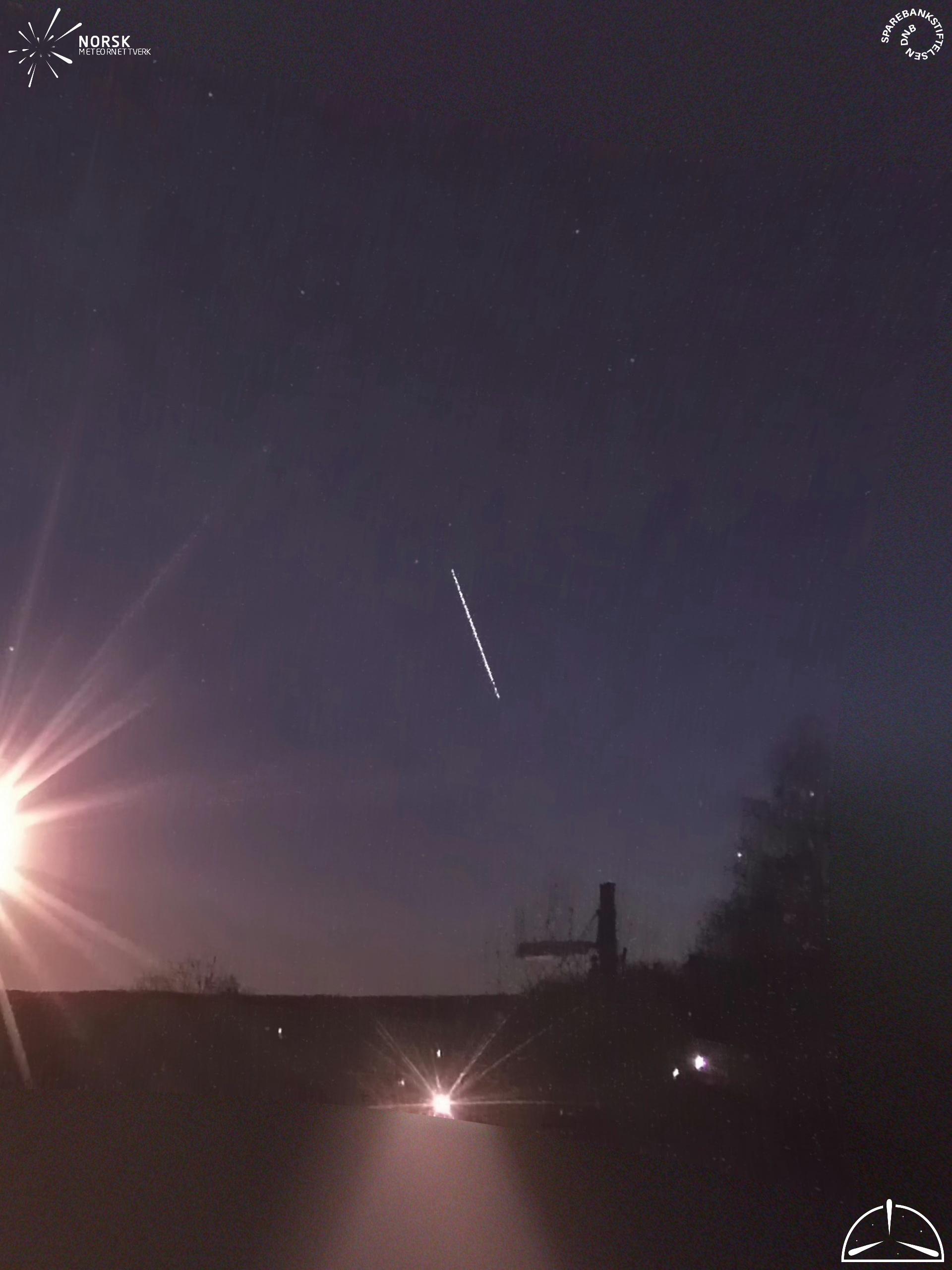Kartet viser peilingene for meteoren. De lysere linjene viser retningene fra observasjonsstedene for meteorens tilsynekomst, og de mørkere linjene viser hvor den sist kunne sees. Den blå pila viser meteorens synlige ferd.