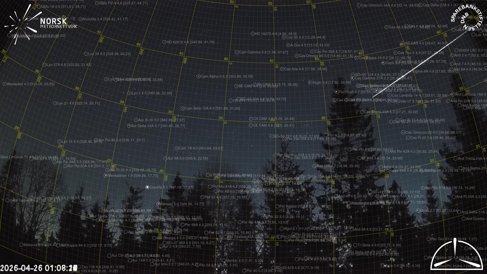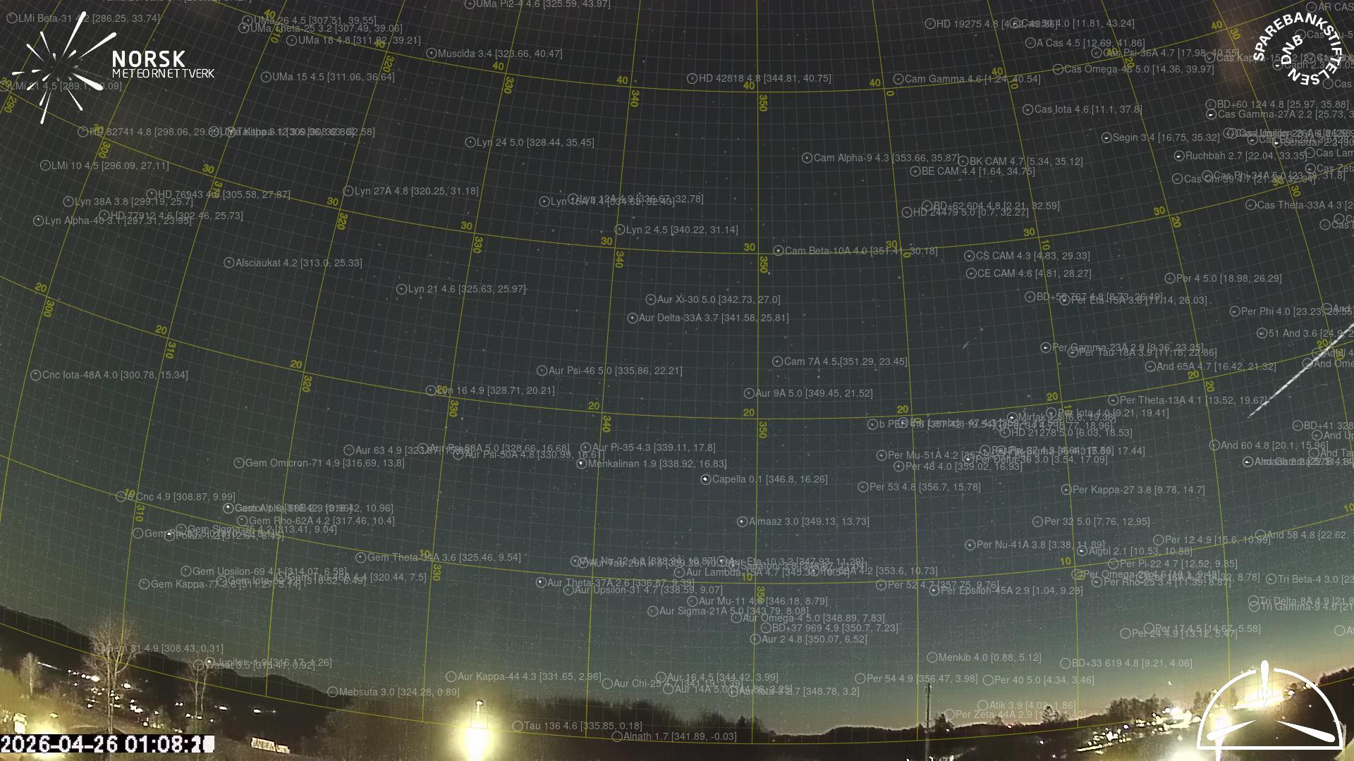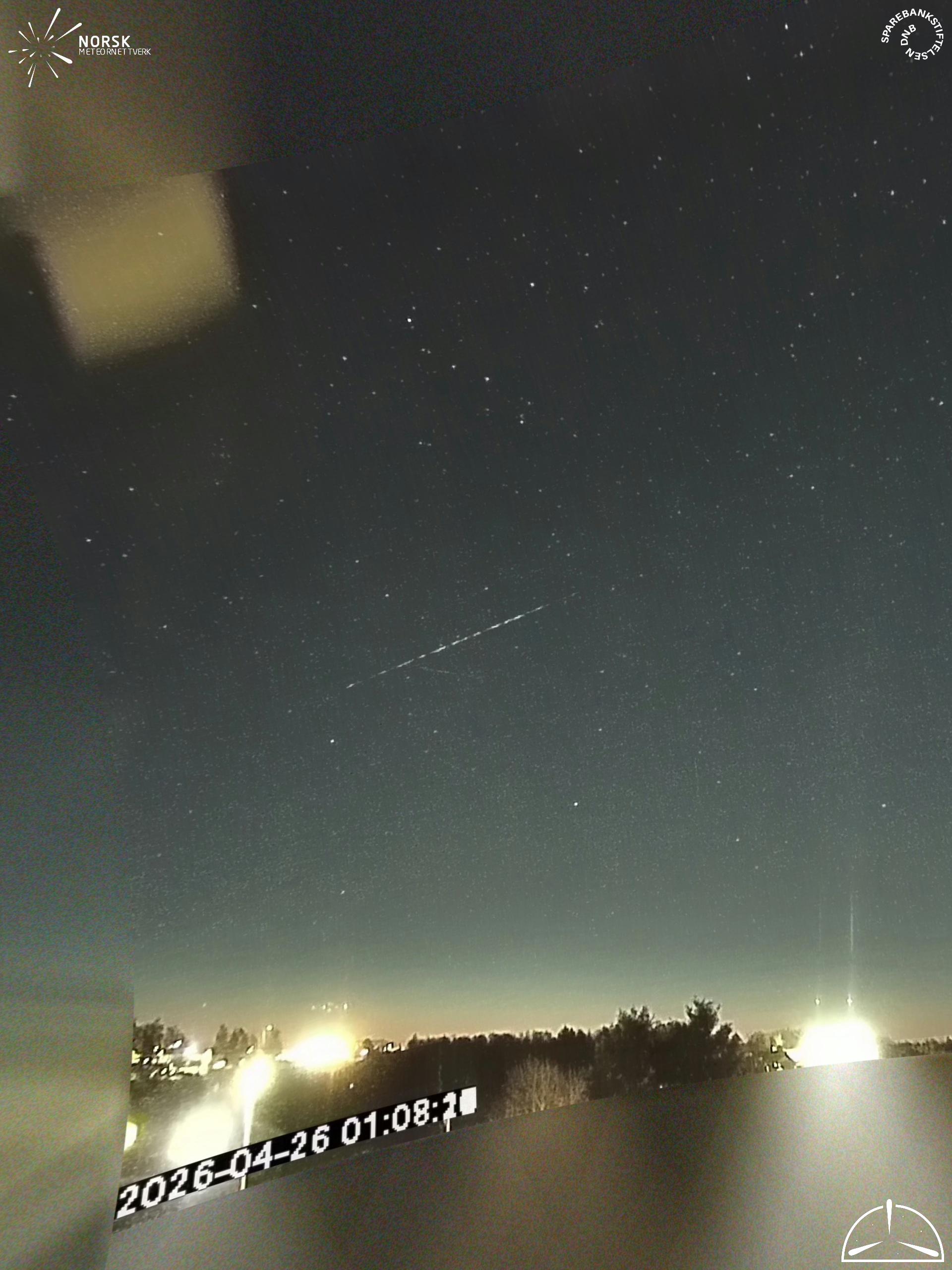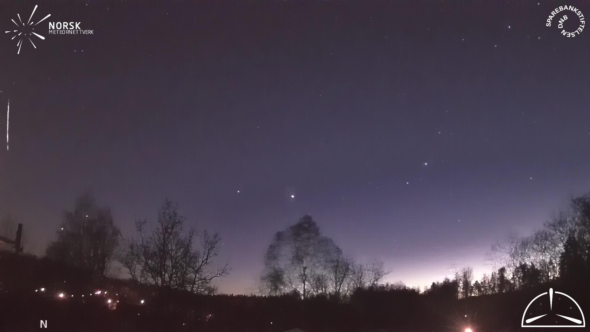 Kartet viser peilingene for meteoren. De lysere linjene viser retningene fra observasjonsstedene for meteorens tilsynekomst, og de mørkere linjene viser hvor den sist kunne sees. Den blå pila viser meteorens synlige ferd.