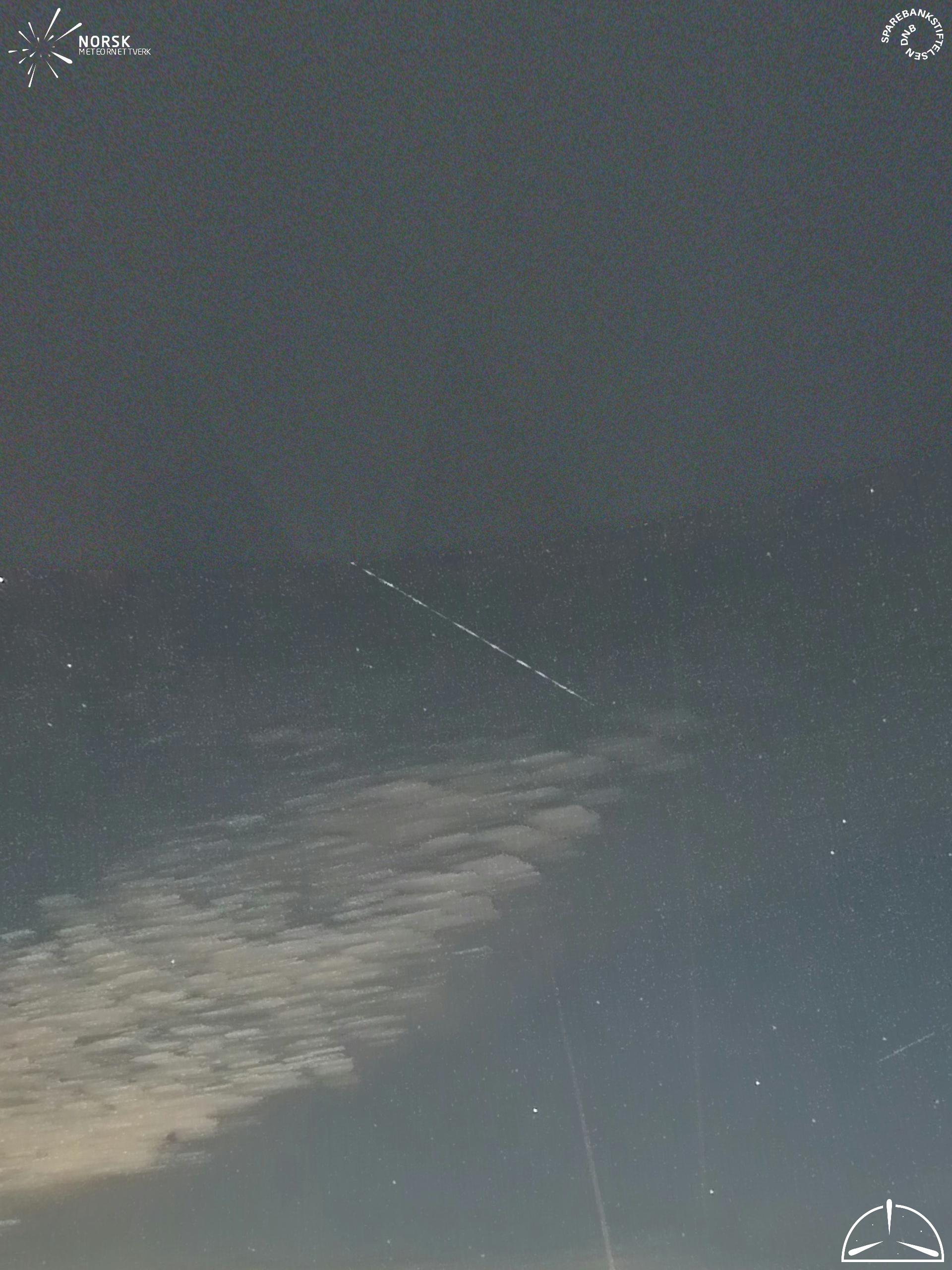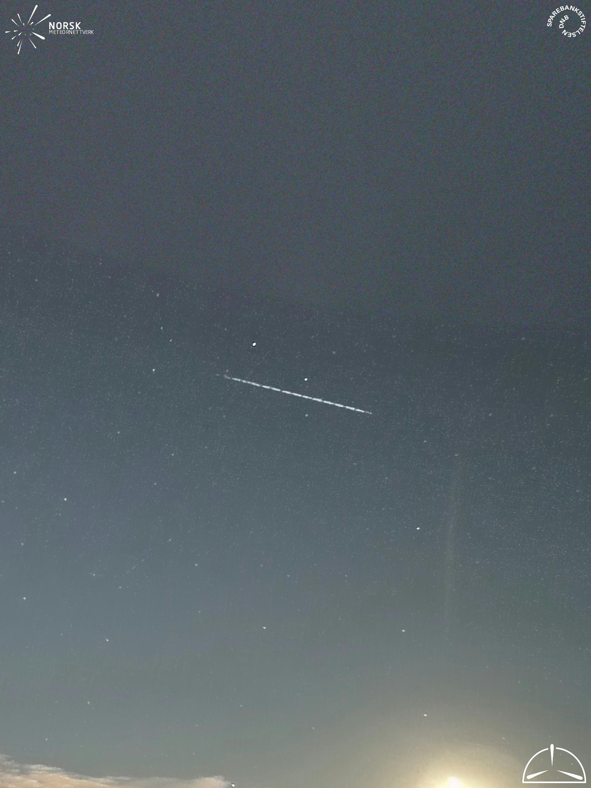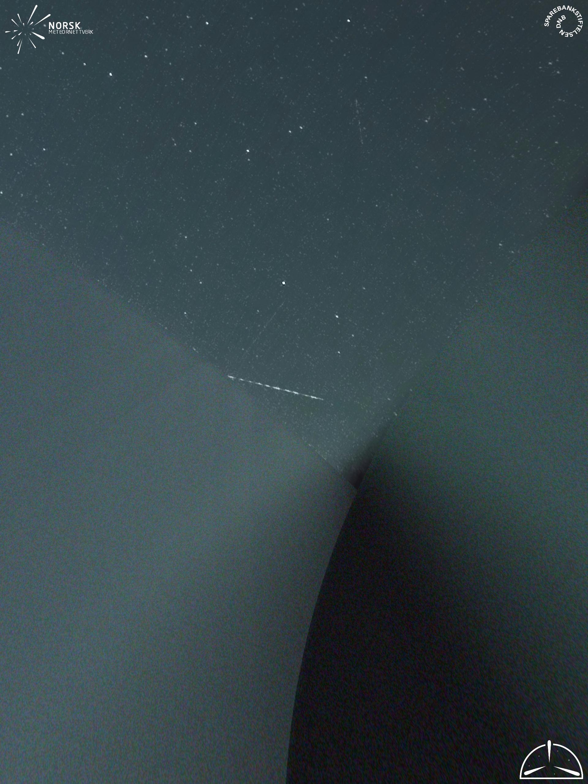 Mapa zobrazuje dráhy meteoru. Světlejší čáry ukazují směry od pozorovacích stanic při objevení se meteoru a tmavší čáry, kde byl naposledy viděn. Modrá šipka značí viditelnou dráhu meteoru.